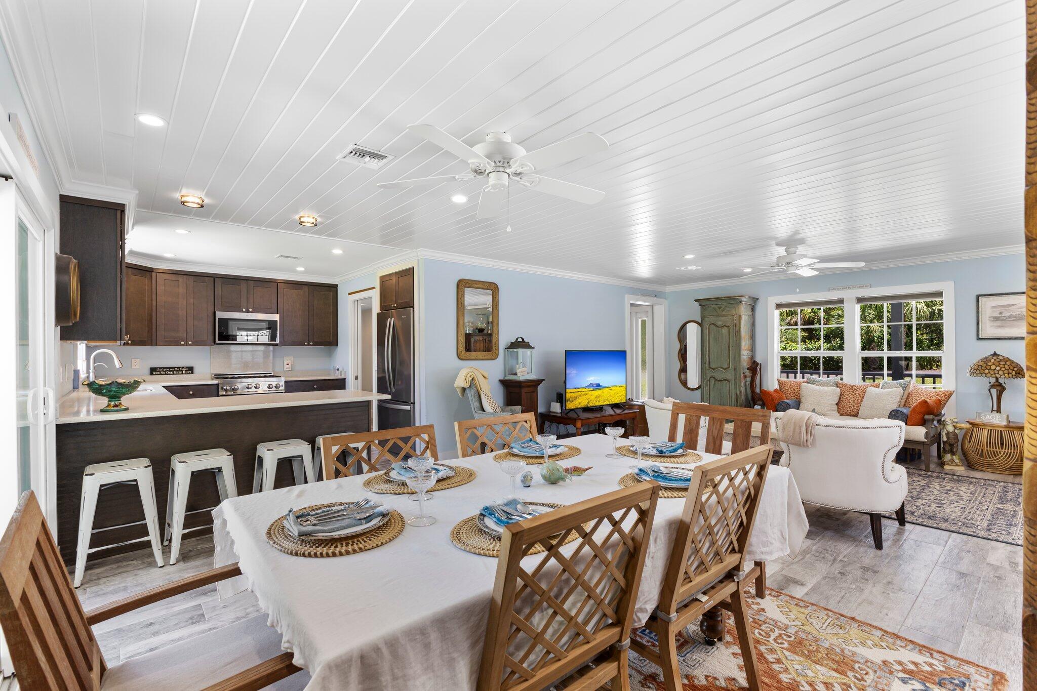 Welcome to your new tropical oasis. Nestled in an intimate 6-lot subdivision, East of A1A , this spacious 4-bedroom, 3-bathroom two-story home offers the perfect blend of comfort, style, and coastal charm. House completely renovated in 2018, master bedroom en suite upstairs, metal roof, enjoy sunsets on your expansive deck (16x11). Just a short drive to local shops, dining, theater and more. Short walk to the neighborhood's pristine beach.