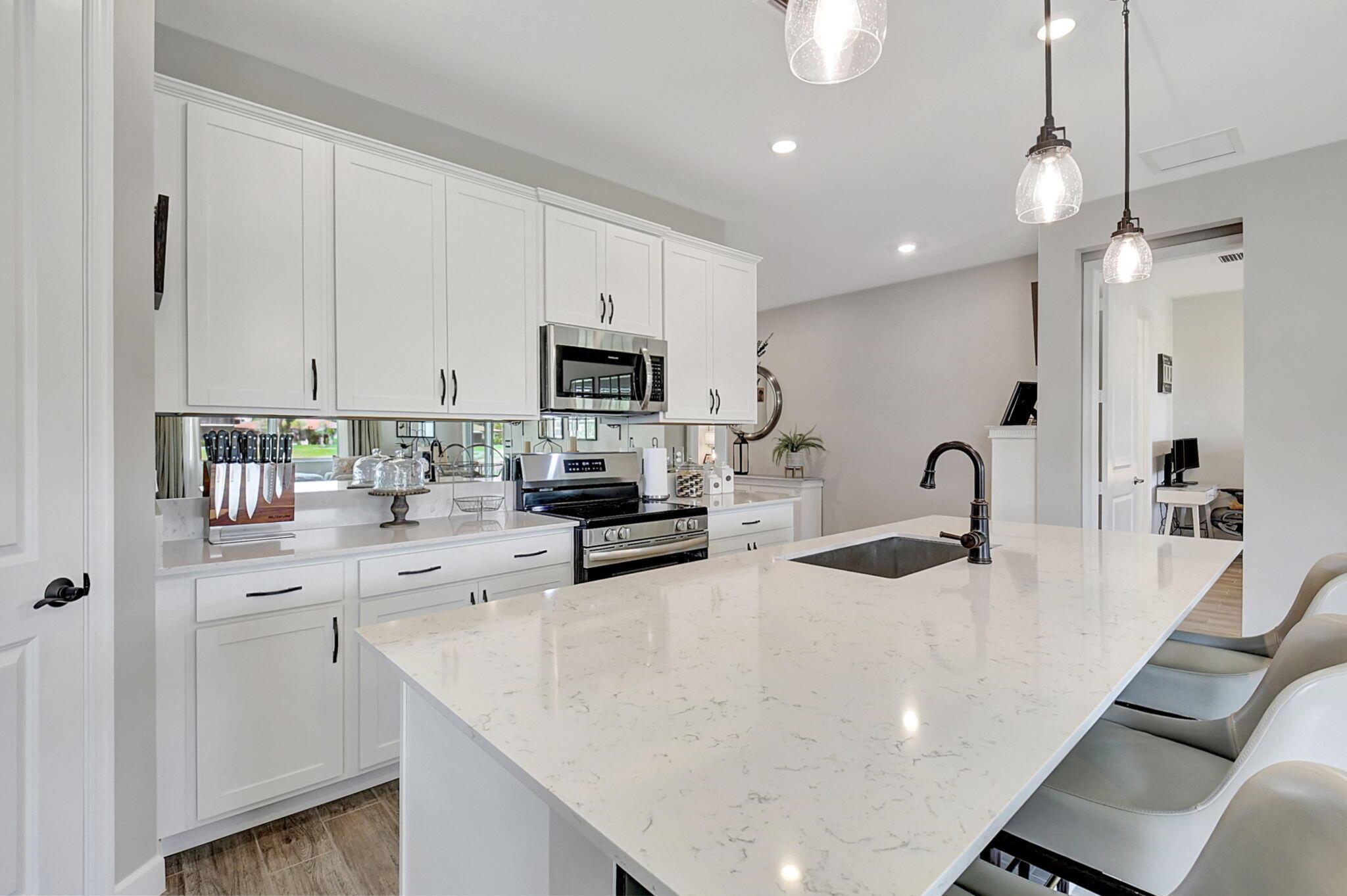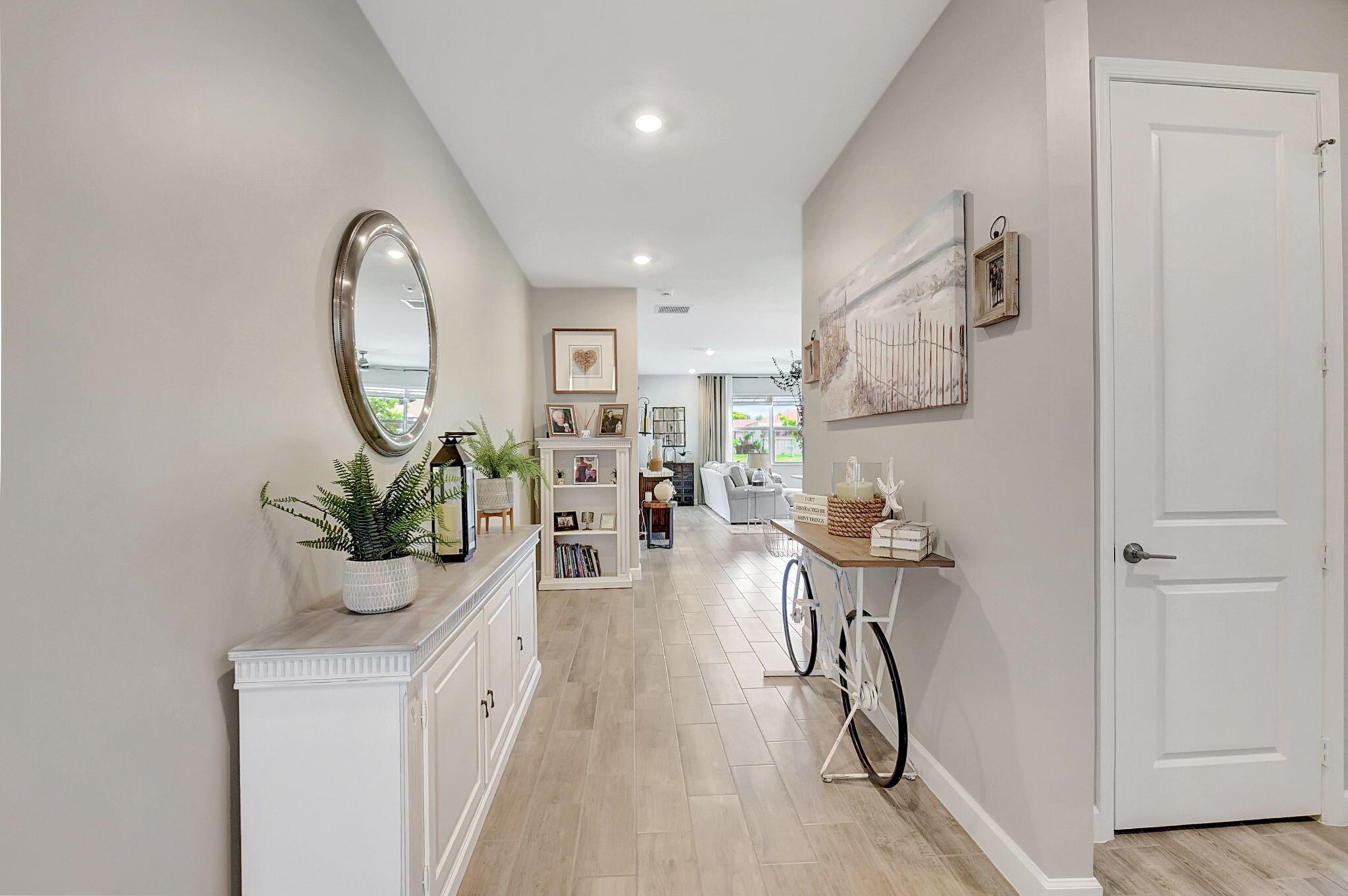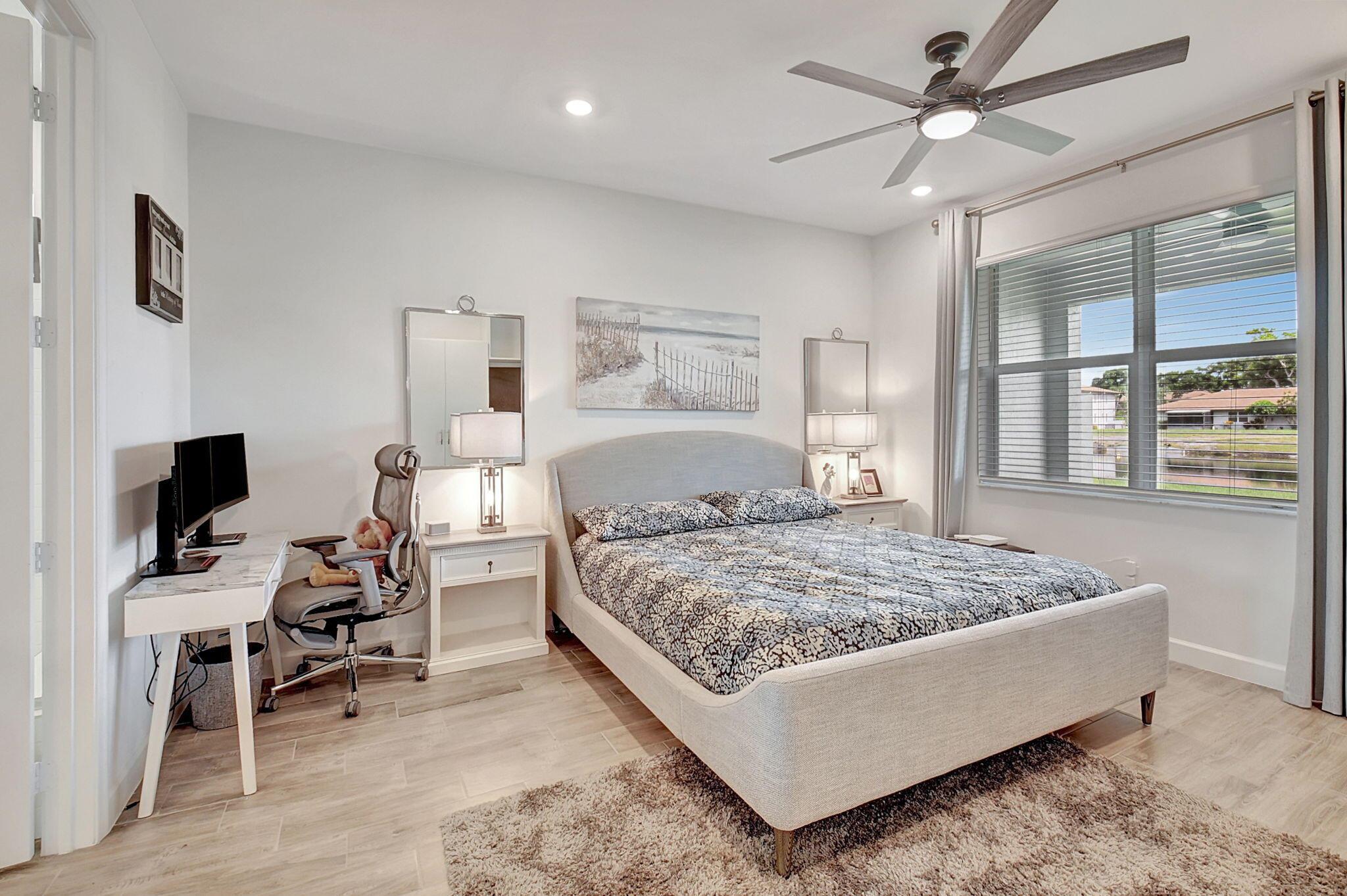 Fantastic opportunity to own this elegant NOW VACANT home with a lakefront view in active 55+ community with luxury amenities, just minutes to the beach, boutiques, and dining on the Ave, or charming Pineapple Grove. Lightly lived in seasonal home impeccably cared for is beautifully appointed with designer upgrades including porcelain tile, custom mirror backsplash, glass entry, a current palate; and practical ones like full impact windows that fill the home with light without excess solar gain. Enjoy the best of Florida living with 3 resort style pools, clubhouse, fitness facility, restaurant, tennis, and pickleball. Sidewalks and street lights offer a walkable community and this home's ideal location places you a short stroll to the amenities. See docs for more upgrades and features.