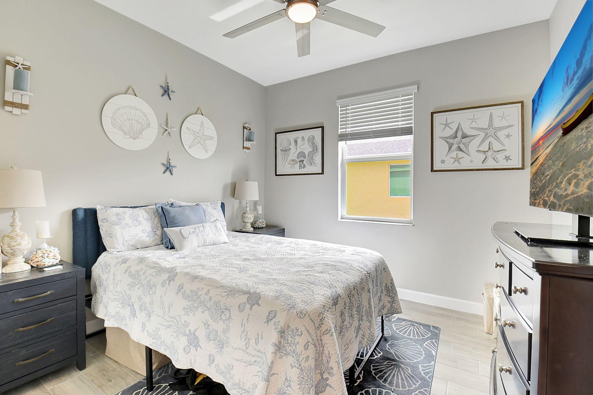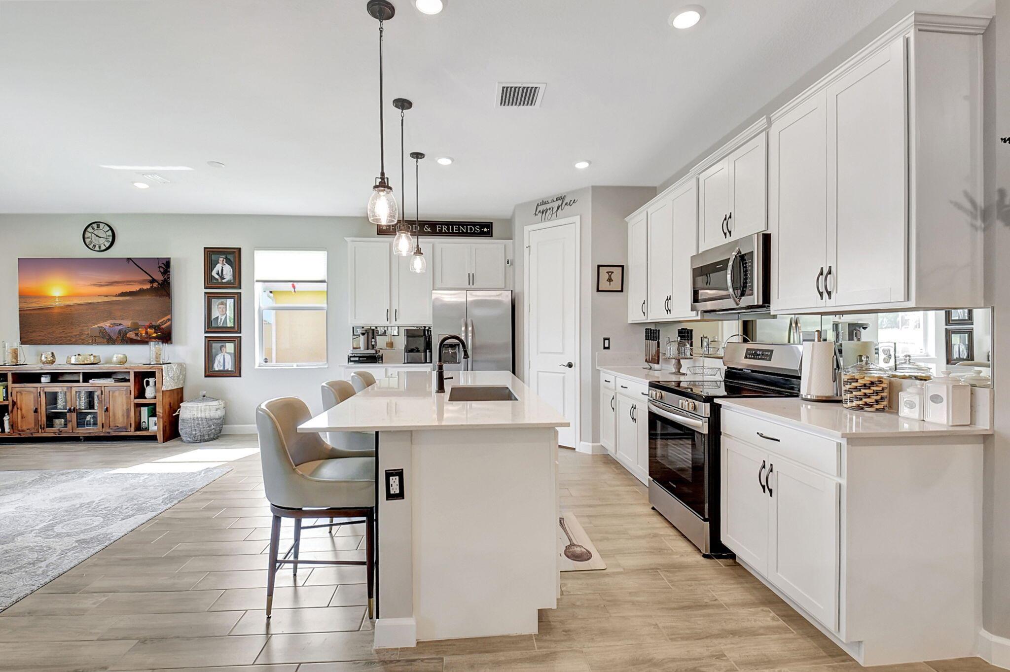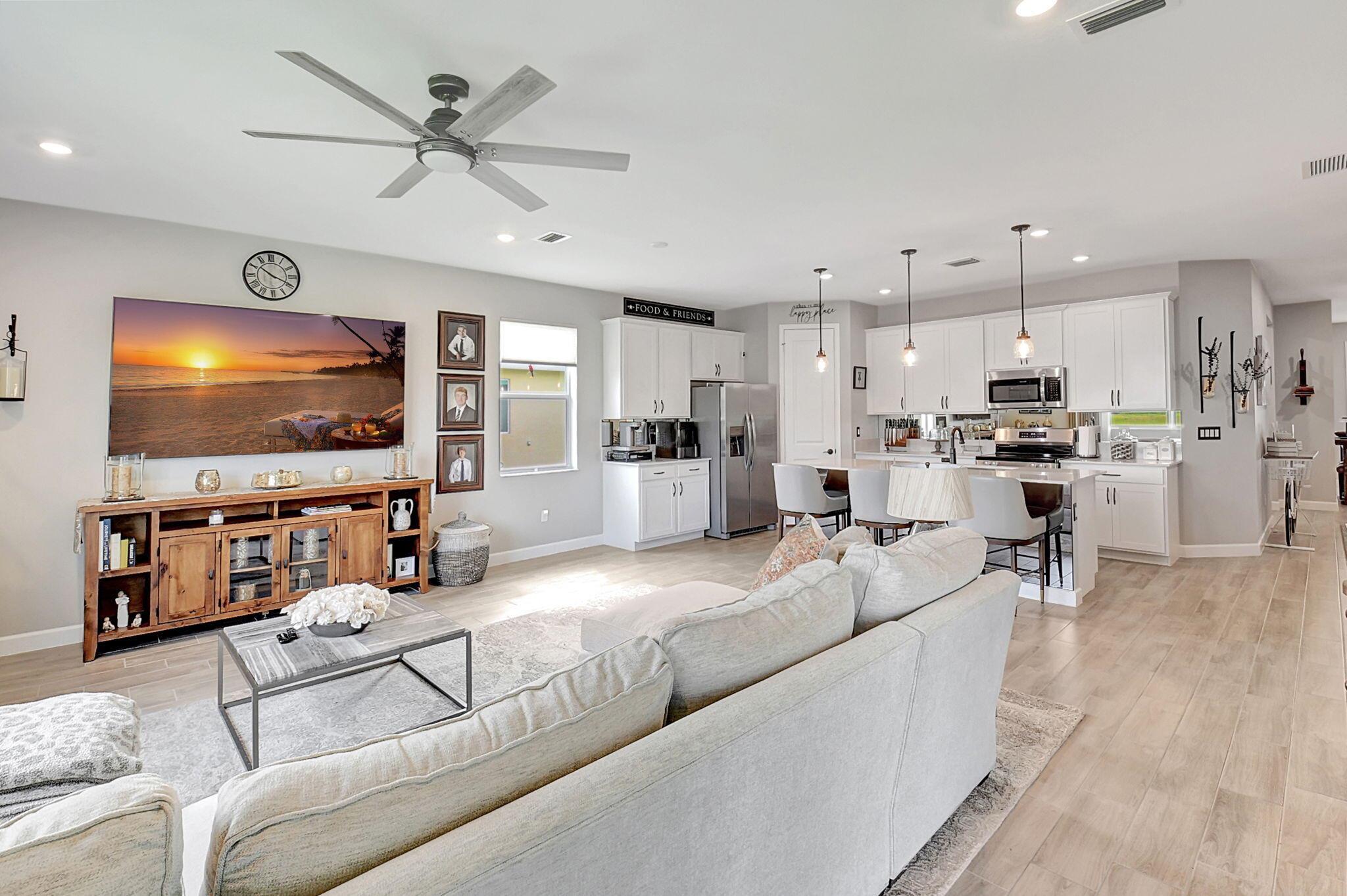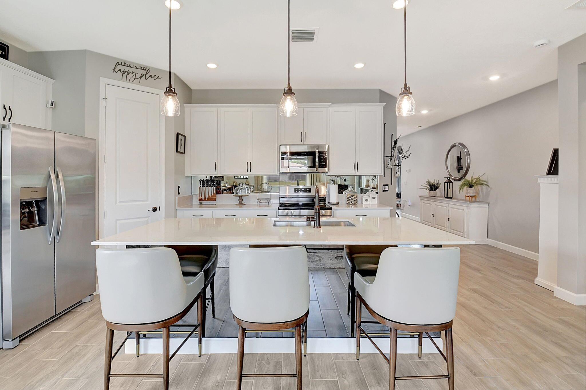 Fantastic opportunity to own this elegant NOW VACANT home with a lakefront view in active 55+ community with luxury amenities, just minutes to the beach, boutiques, and dining on the Ave, or charming Pineapple Grove. Lightly lived in seasonal home impeccably cared for is beautifully appointed with designer upgrades including porcelain tile, custom mirror backsplash, glass entry, a current palate; and practical ones like full impact windows that fill the home with light without excess solar gain. Enjoy the best of Florida living with 3 resort style pools, clubhouse, fitness facility, restaurant, tennis, and pickleball. Sidewalks and street lights offer a walkable community and this home's ideal location places you a short stroll to the amenities. See docs for more upgrades and features.