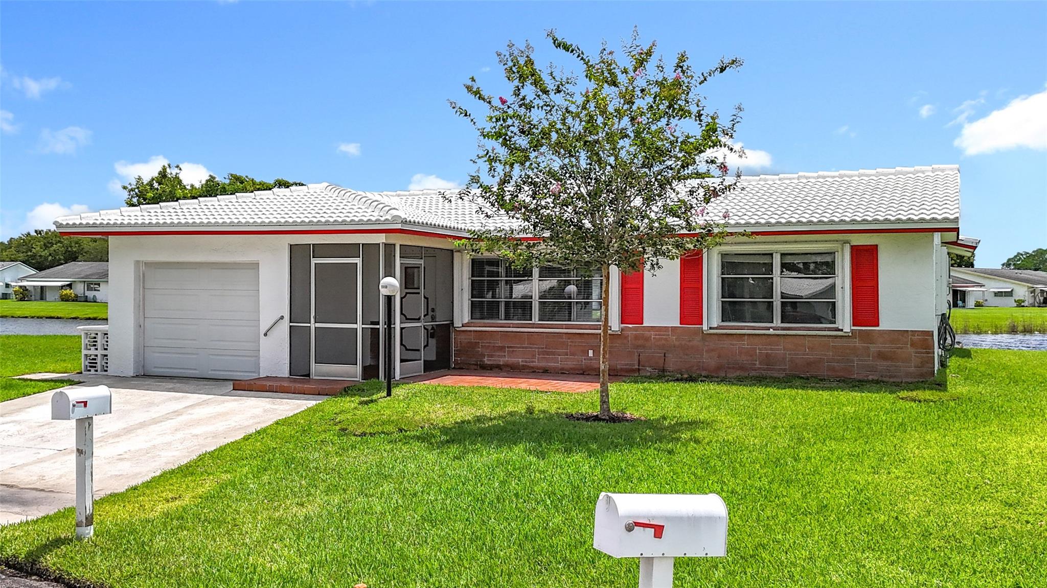 EXPANSIVE WATERFRONT PIE SHAPED  LOT WITH EXTENSIVE WATER VIEW ON PRIVATE, QUIET CUL-DE-SAC***ADMIRAL MODEL- 2 BEDROOM/2 BATH, 1 CAR GARAGE W/DOUBLE WIDE DRIVE***BRAND NEW ROOF 2025***TANKLESS WATER HEATER***NEWER A/C 2020***ACCORDIAN HURRICANE SHUTTERS***FRONT PORCH & PRIVATE SCREENED FRONT ENTRY***SCREENED REAR PATIO W/SERENE WATER VIEW***OPEN FLOOR PLAN***UPDATED KITCHEN  W/FOOD PANTRY & GRANITE COUNTER TOPS***UPDATED 2 FULL BATHS***FULL WASHER/DRYER & SLOP SINK***LOTS OF EXTRA CLOSET/CABINETS & STORAGE SPACE******PROPERTY WON’T LAST LONG**55+ COMMUNITY, 20% DOWN, 720 CREDIT SCORE**ASSOC. FEE INCL: FIBER OPTIC HD TV & INTERNET, COURTESY BUS, LAWN SERV, ROOFS, EXTERIOR PAINTING, CLUBHOUSE, 2 POOLS, TENNIS, POOL TABLES, PING PONG, CARD ROOMS, SHOWS, FITNESS CENTER & MUCH MUCH MORE...
