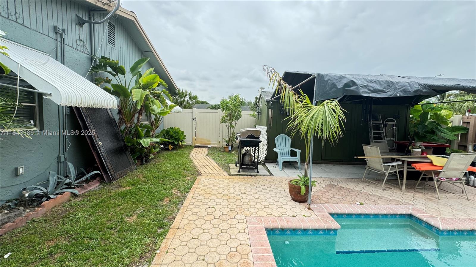 Discover this duplex featuring 3 bedrooms and 2 bathrooms with a spacious private pool and a generous backyard perfect for enjoying with your family and friends. Space for parking vehicles in front, this community has no HOA. Spacious backyard with two mango tree and one avocado tree.