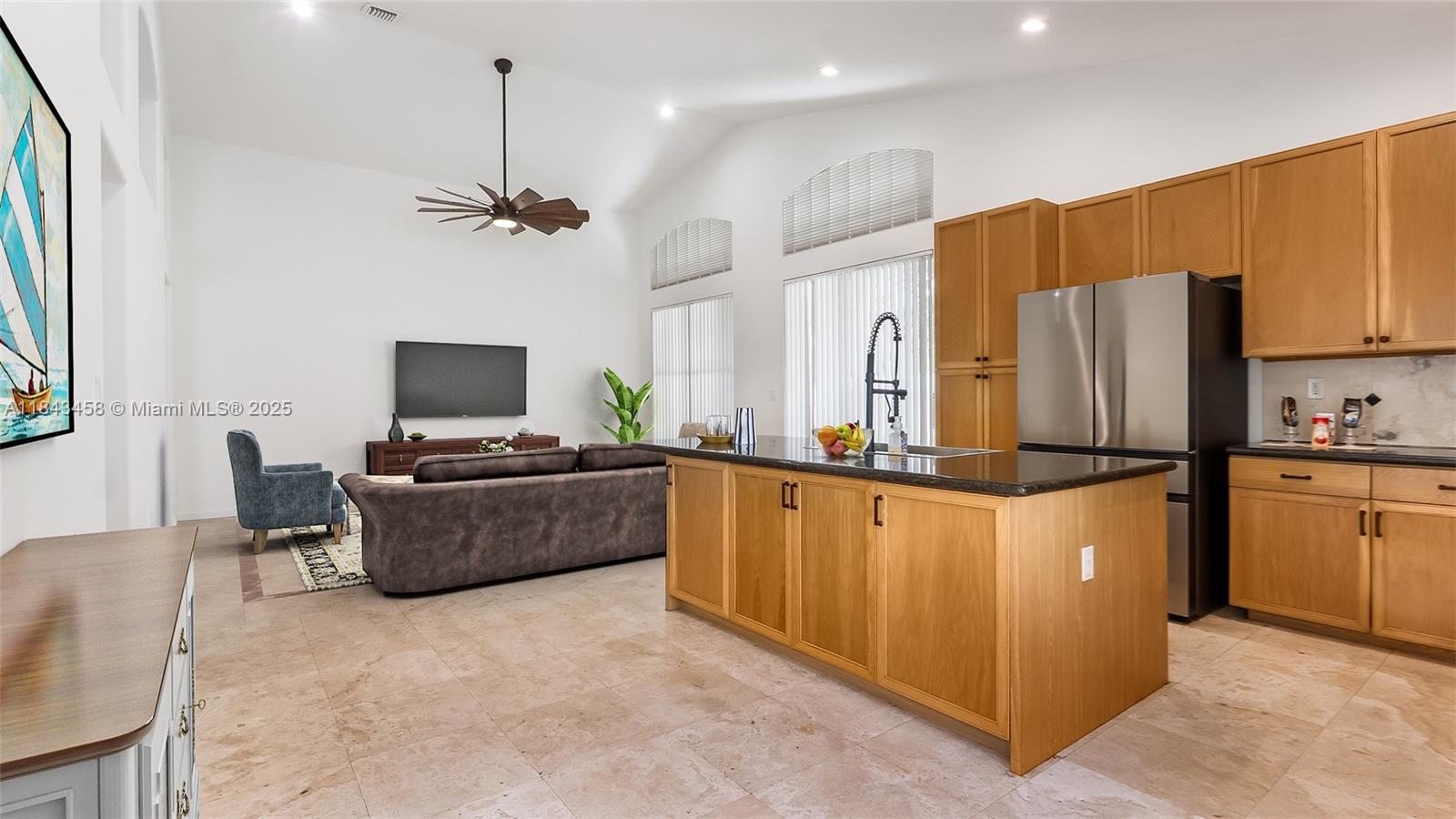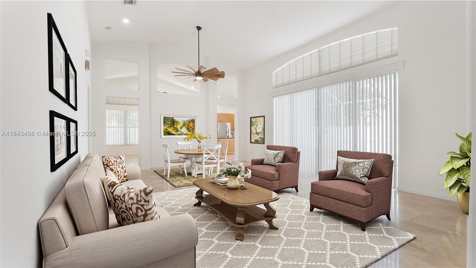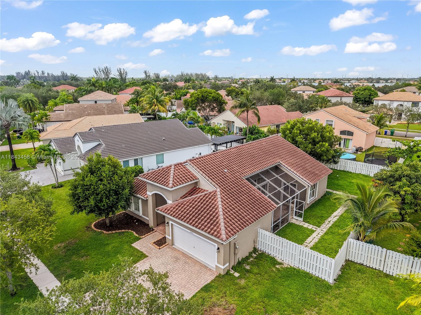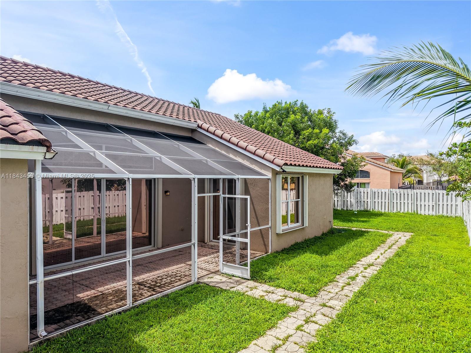 Spacious home in beautiful gated community of Sunset Lakes. This elegant home features marble floors in main living areas, soaring high ceilings & a bright, open layout perfect for entertaining. Granite countertops, stainless steel appliances, plenty of cabinet space & a cozy breakfast area. Spacious ensuite w/Roman tub, custom wood vanities w/quartz countertops & spacious walk-in closet. Jack & Jill bathroom. The east-facing screened patio is ideal for outdoor dining & relaxing. Large backyard offering room for a custom pool or expansive garden. Excellent for entertaining! Conveniently located near schools, shopping, parks, & medical facilities. HOA includes ADT alarm monitoring & basic cable. Resort-style community pool, tennis courts and more. Move in quickly! No HOA approval required!