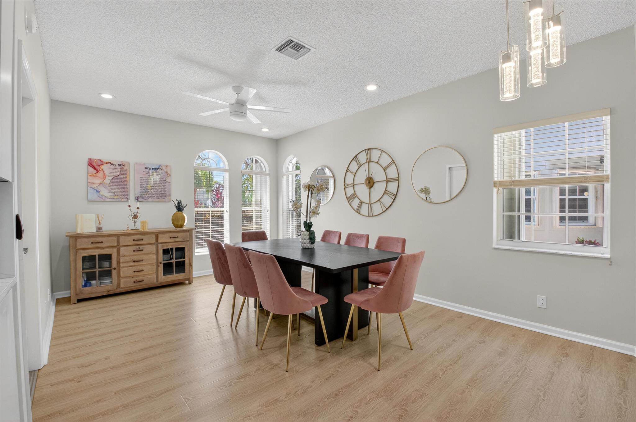 Nestled within the gated community of Mizner Pointe you will find this exceptional end unit townhome featuring 4 bedrms 2 1/2 baths, formal living & dining areas, gourmet kitchen, family room. Second floor: 3 guest bedrms, guest bathrm & spacious primary bedrm with lavish master bath, double sinks, water closet, separate shower & soaking tub , walk in outfitted closet. Appointments include: accordion shutters, granite counters & ss appliances no carpeting, deluxe vinyl flooring, roof replaced 2 yrs ago, no detail overlooked. Enjoy the evening breezes on your patio overlooking the garden greenery beyond,Mizner Pointe boasts pool, clubhouse, play area, fitness center, tennis, billiards, community room. Close to shopping, & major roadways. SHOWINGS BEGIN SAT. JULY 26 - 10 -NOON.