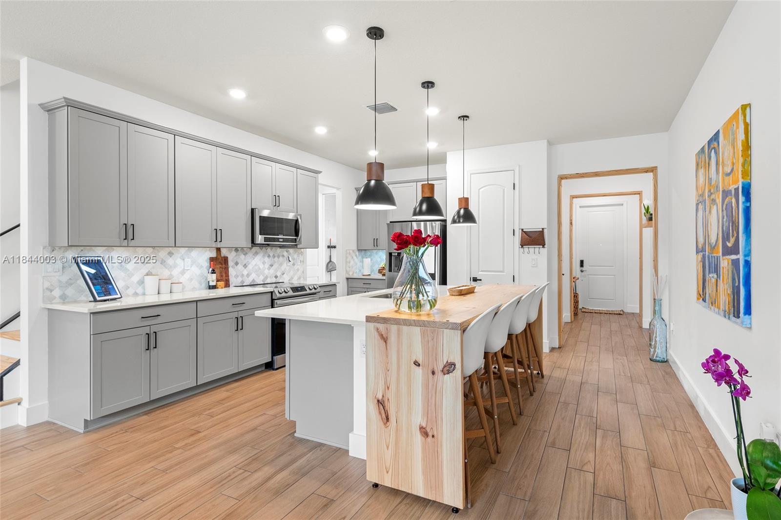 Step into luxury and sophistication with this beautiful townhome in the sought-after Oak Tree community. This home is designed with top-tier enhancements, including a $40K upgrade package featuring porcelain and laminate flooring, high-end appliances, custom cabinetry, and a beautifully designed backyard. The interior showcases smooth walls, pinewood accent walls, upgraded bathrooms, tall doors, and staircase lighting. Additionally, the owners added a built-in office space for ultimate convenience. Located in a highly desirable community, this exceptional property offers all the high-end amenities you desire. DON'T MISS THIS OPPORTUNITY TO OWN A BEAUTIFUL HOME!