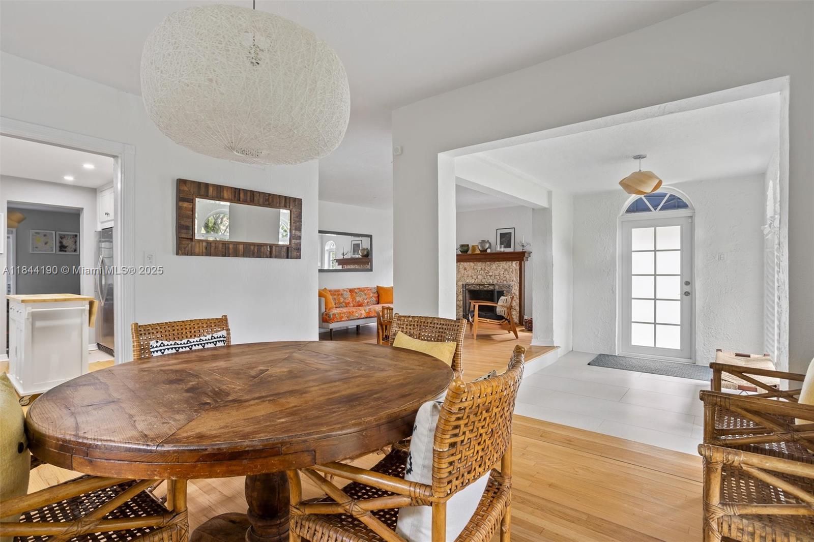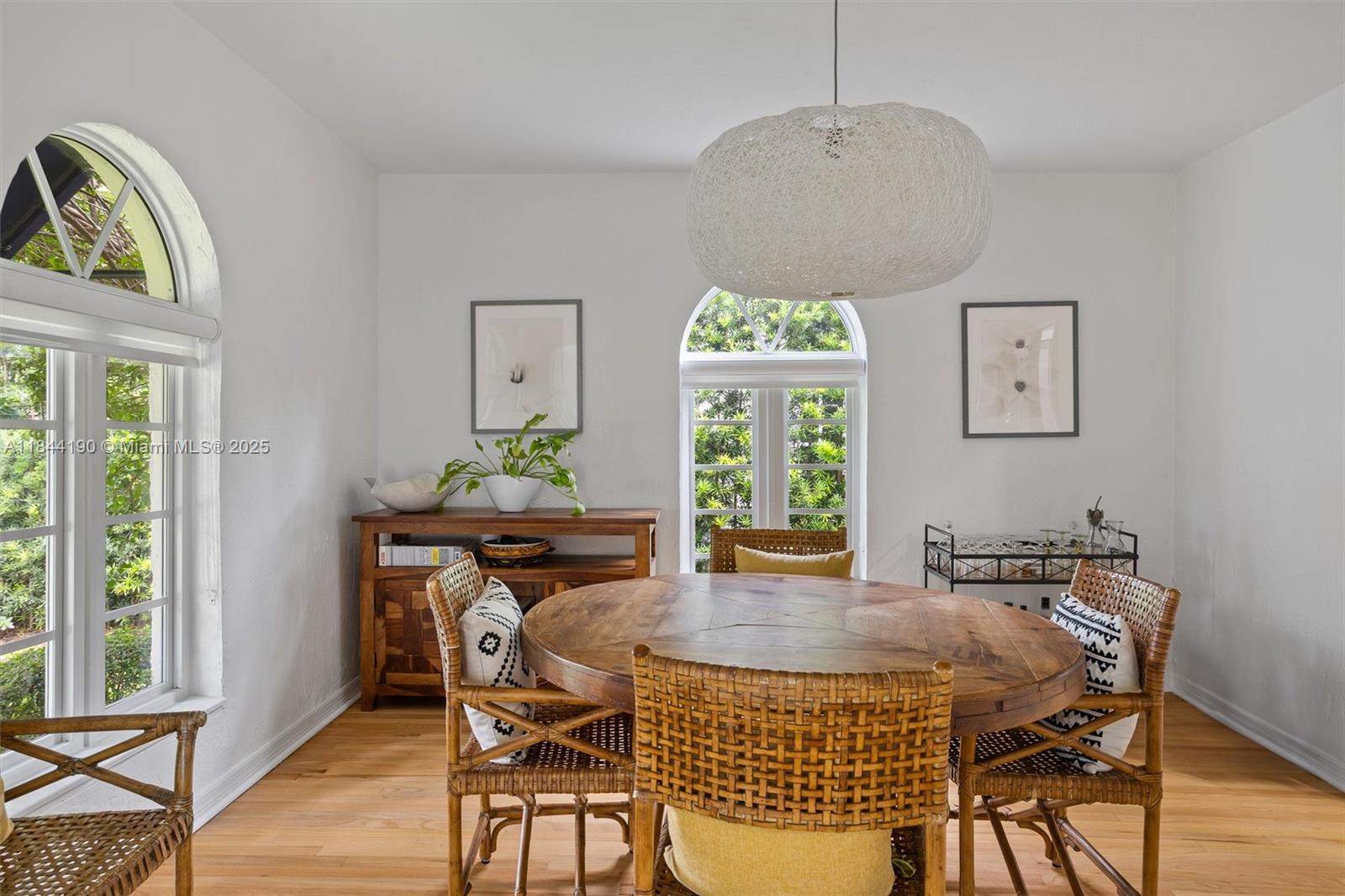 This charming Old Spanish home in Coral Gables was built in 1926 and features original wood floors, arched walls, and a fireplace that highlight its historic character. Modern updates include new bathrooms, custom closets, a comfortable family room, and upgraded impact windows and doors installed in 2024—blending classic style with today’s comforts. The backyard offers a brick patio, a spacious covered bar, and a tranquil pool surrounded by lush landscaping. The lot is larger than most at 50 by 150 feet, providing extra space and privacy. Conveniently located near Coral Gables’ Restaurant Row and Miracle Mile, with easy access to some of the city’s best dining, shopping, and entertainment.