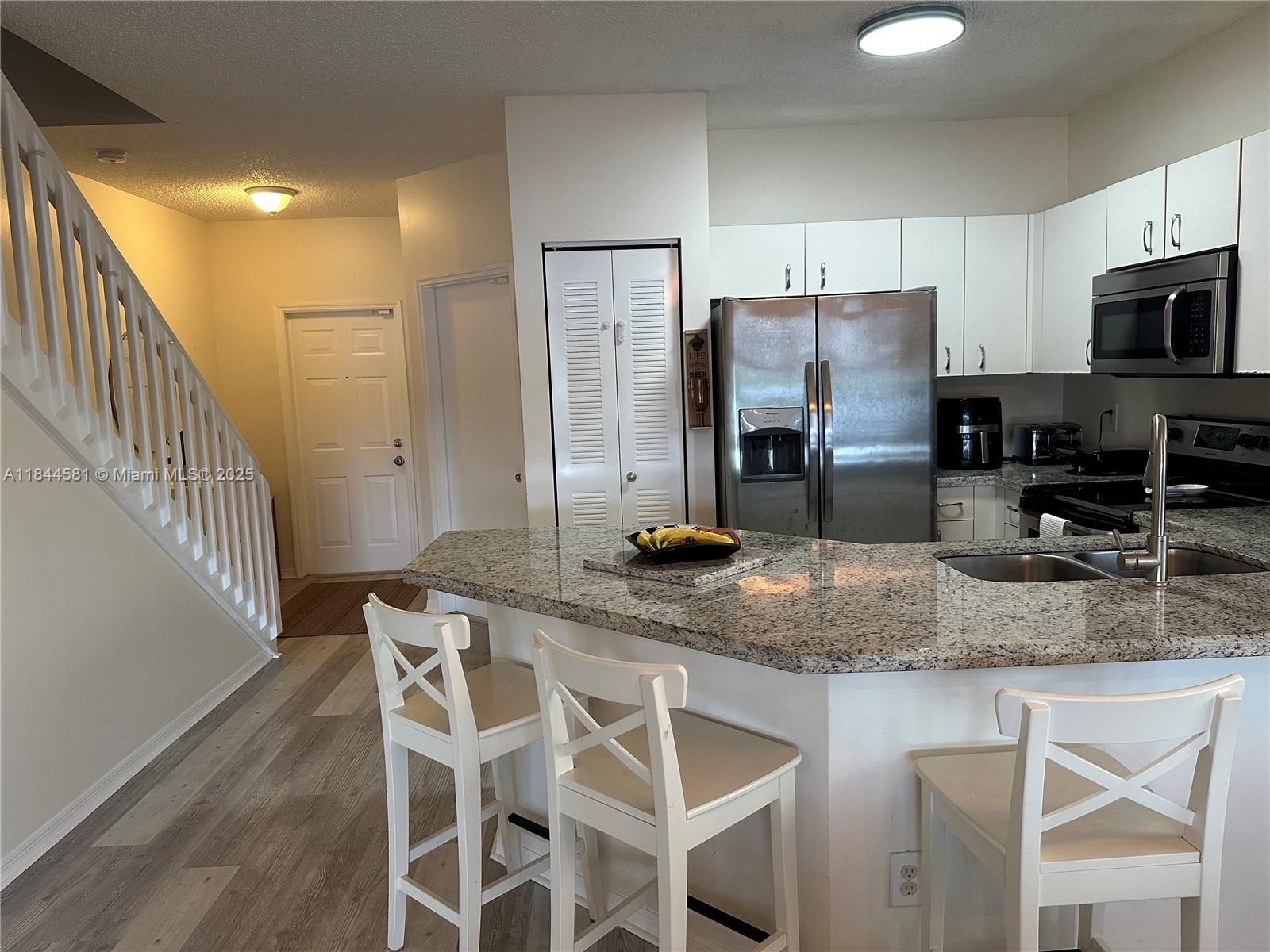MOTIVATED SELLER!! Gorgeous CORNER Townhouse, 3 Bedrooms and 2.5 Baths. Share a "Jack & Jill" bathroom with dual sinks. Backyard with peaceful lake views, one single covered garage with Automatic Door Opener. 1st floor and 2nd floor with laminate floors. Kitchen granite countertop, stainless steel appliances. Partial Accordion Shutters. Pelican Pointe is a gated community that is conveniently located near shopping Mall, restaurants, Supermarket, parks.