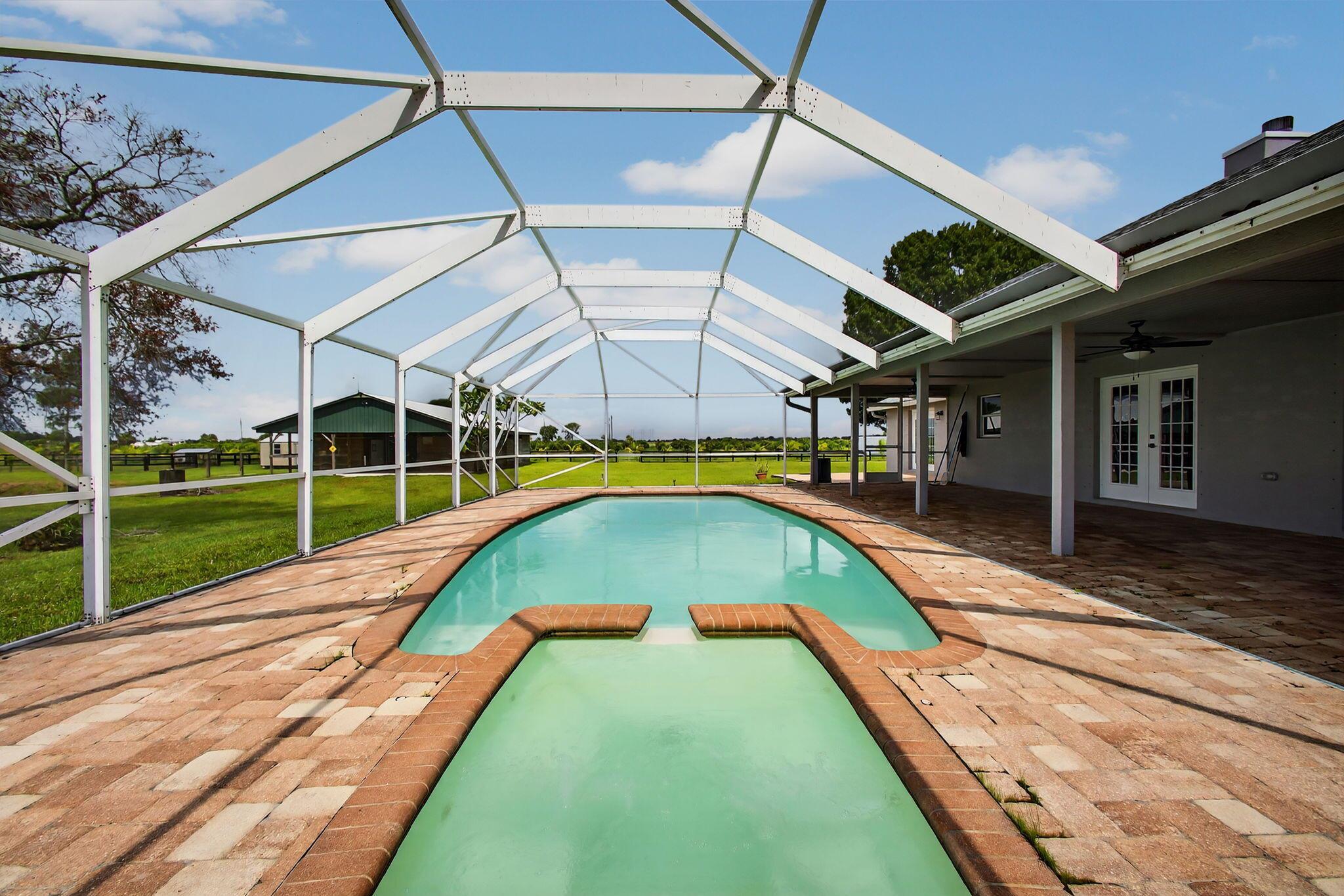 Immaculately kept original owner 3/3/2 on 6.35 acres with inground pool/spa and center aisle barn with feed and tack rooms, equipment shed/future office, pony stalls, and large, detached, secondary barn/carport. Fully fenced with automatic gate and plenty of room for riding ring, guest house or additional barn. This unique custom design floor plan, features three bedrooms and three full bathrooms, a large great room, a master suite with a sitting area, central vacuum, fireplace and huge front and rear covered screen porches. Very private and secluded area but still only a short drive to local schools, parks and shopping. Call today for your personal tour!