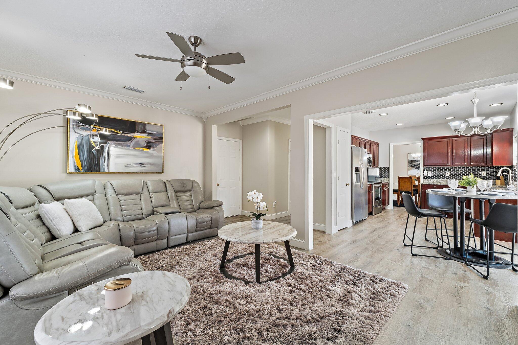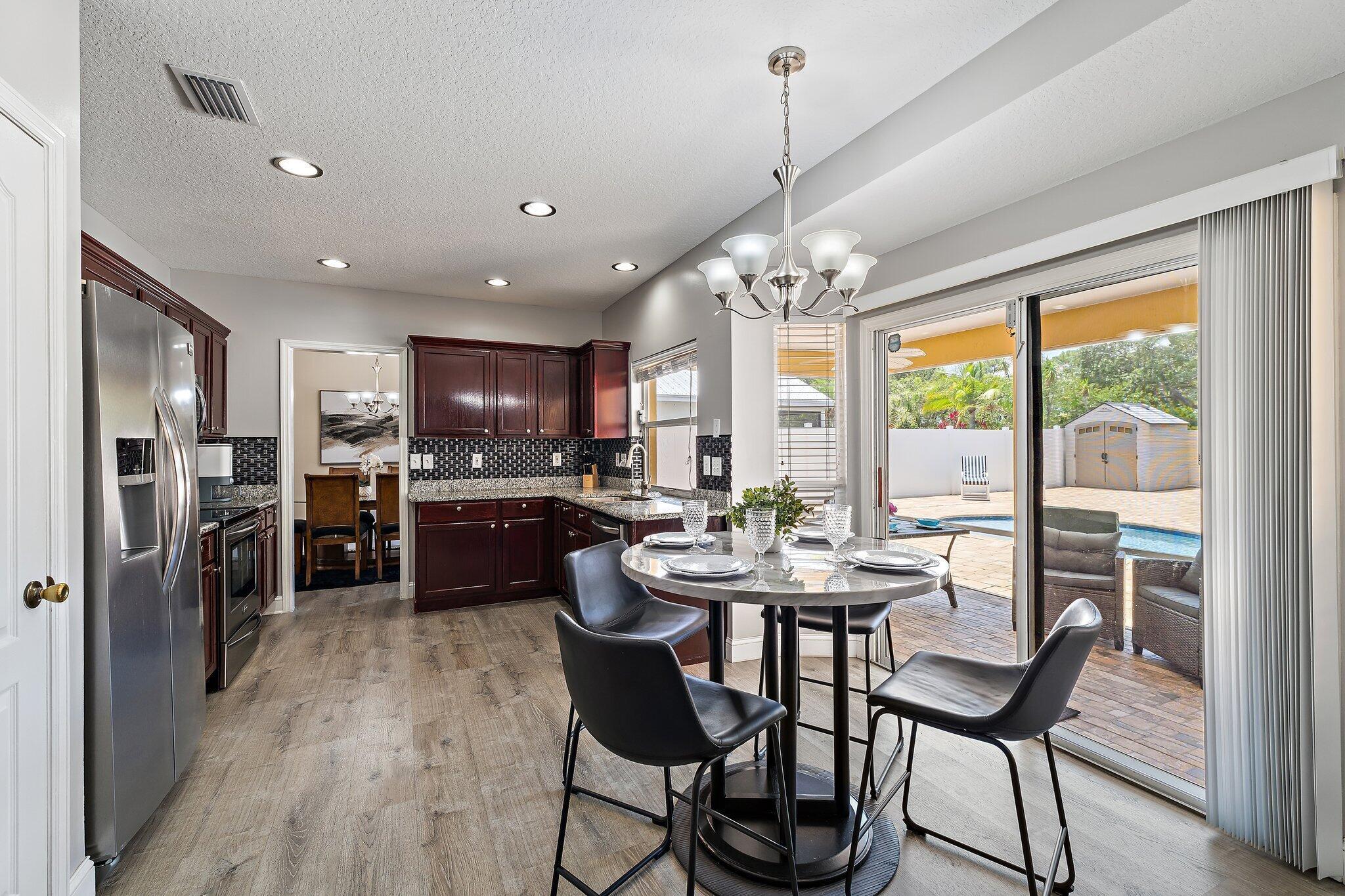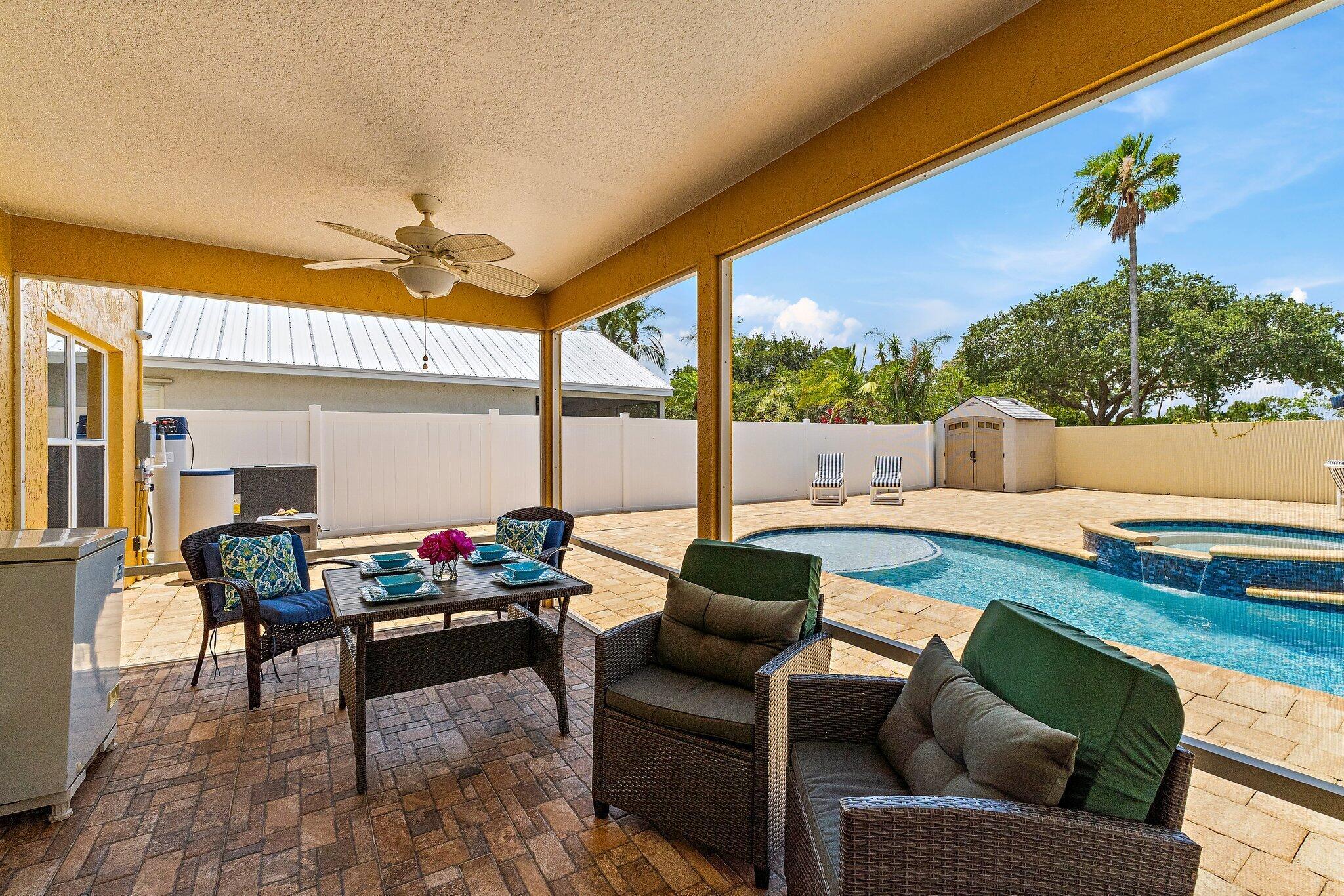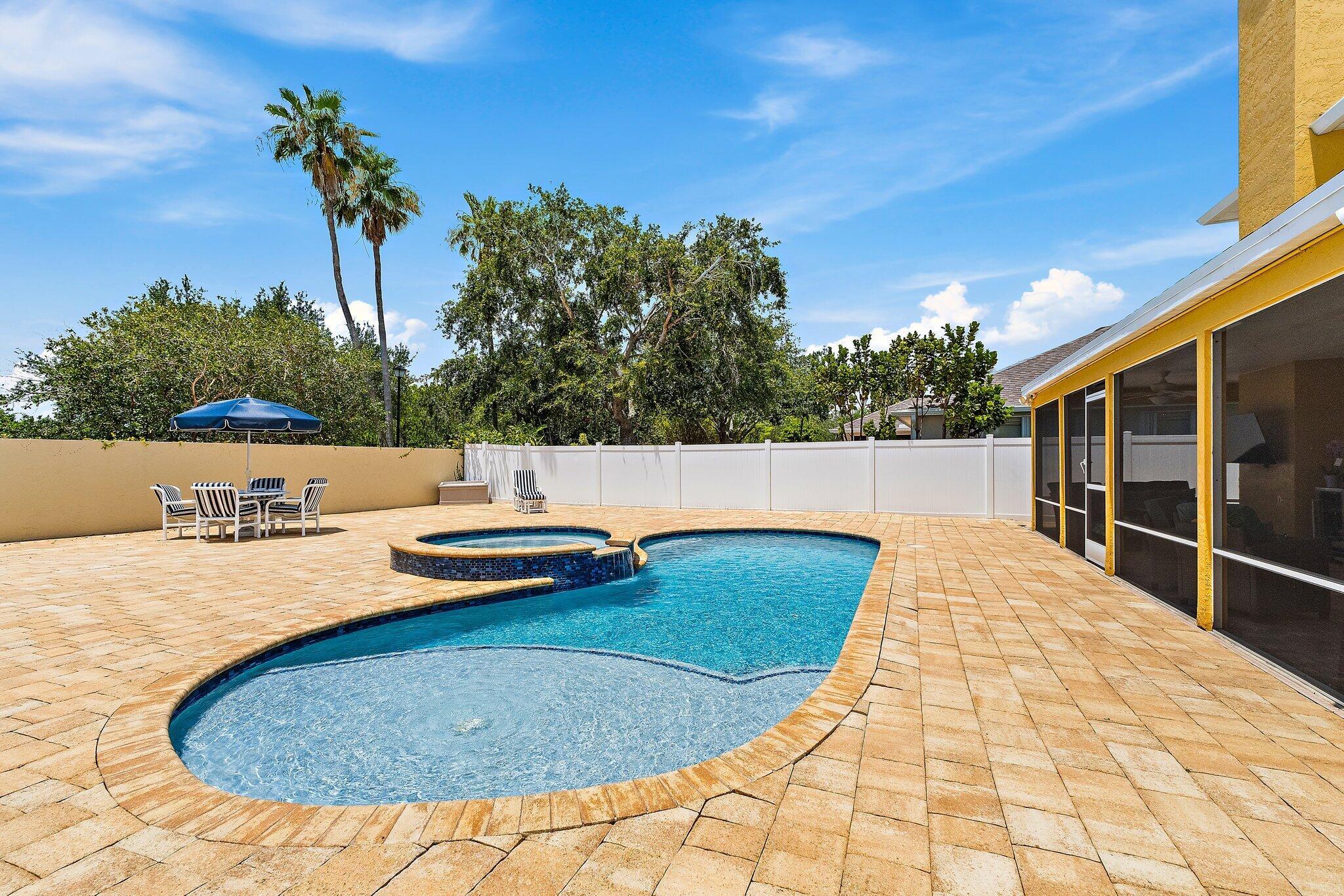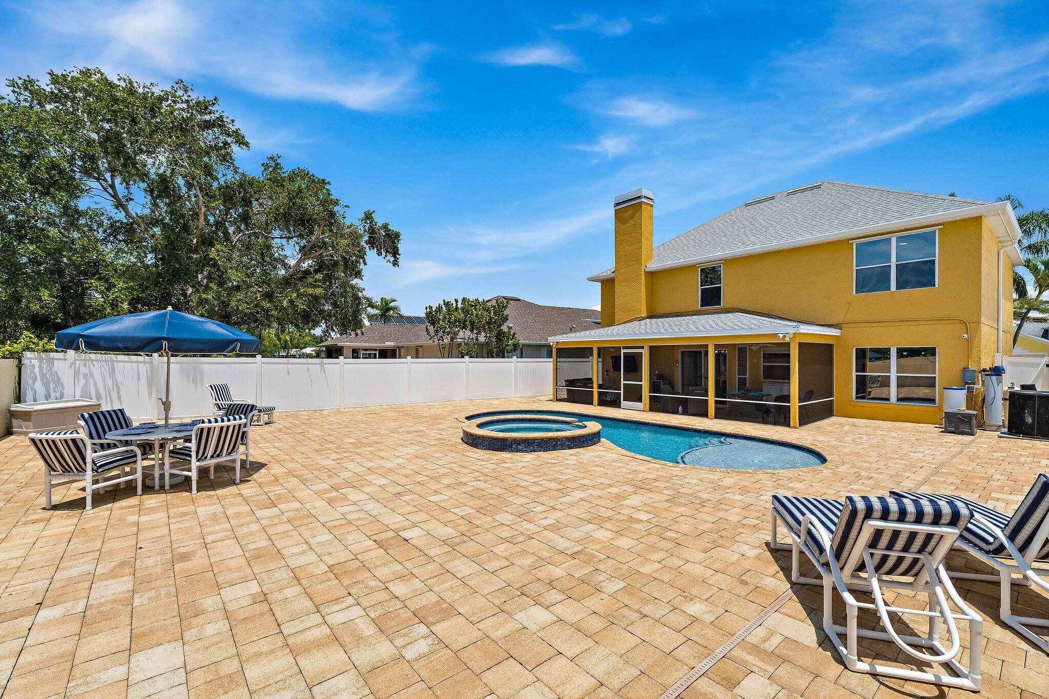 Beautifully upgraded 4 Bedroom, 2.5 Bath Pool Home in the highly desirable community of Windemere in Jensen Beach! Major updates include New Roof (2022), New Hot Water Heater (2021), Updated Kitchen & Baths. New Pool & Spa. Interior features Luxury Vinyl Flooring thru-out, Granite Kitchen w/updated S/S appliances, New Ceiling Fans, Crown Molding & More! Step inside this well-appointed 2 Story Home w/Living & Dining Area, Kitchen open to patio & Family Room with Fireplace. Enjoy outdoor living at its very best with a NEW Saltwater Custom Pool & Spa, Brick Paver Patio & Fully Fenced Rear Yard. The Covered & Screened Lanai is the perfect place to Entertain. Gorgeous natural light as you enter the home w/ palladium window & beautiful staircase. On the 2nd level there is a Large Primary