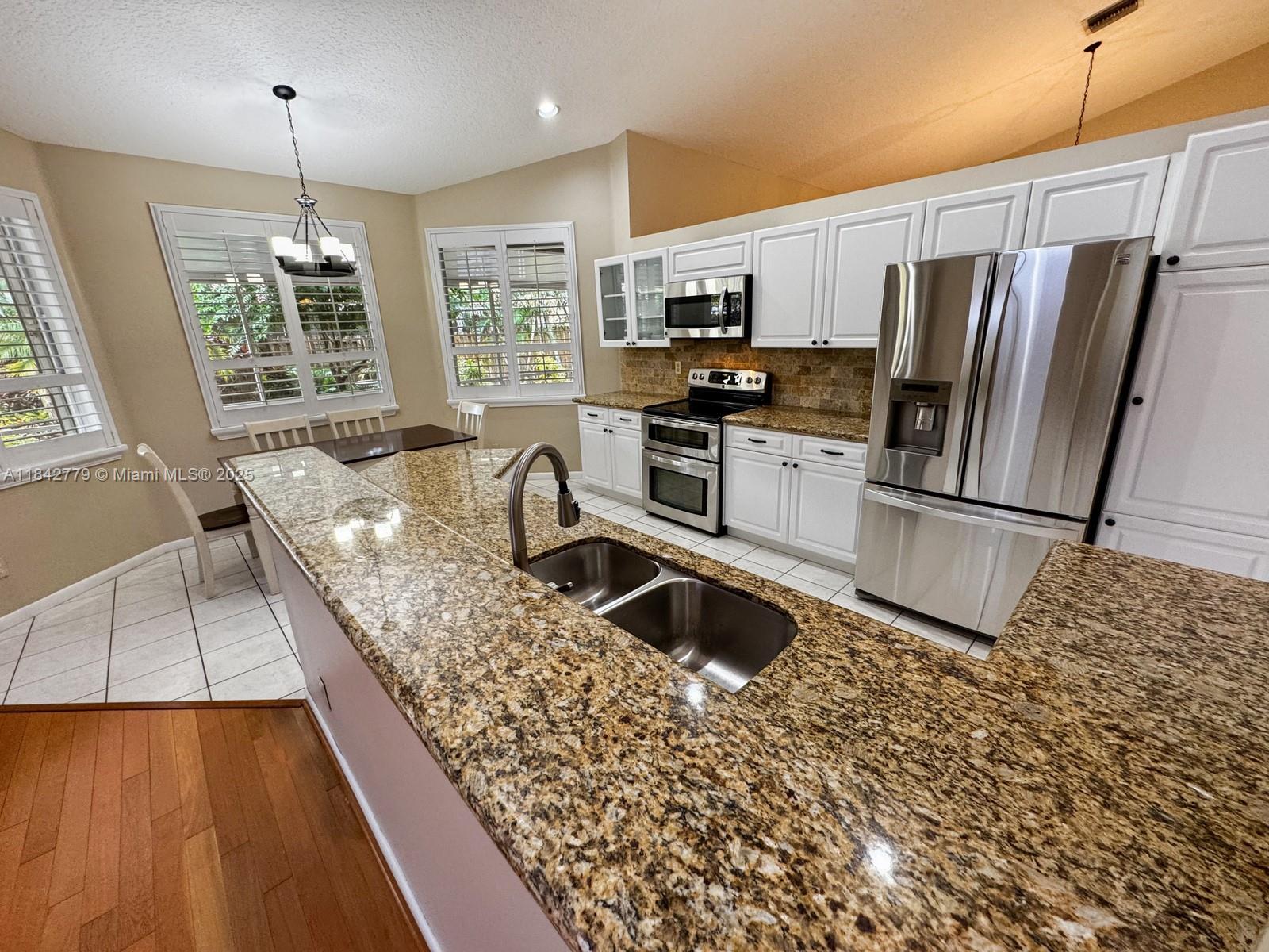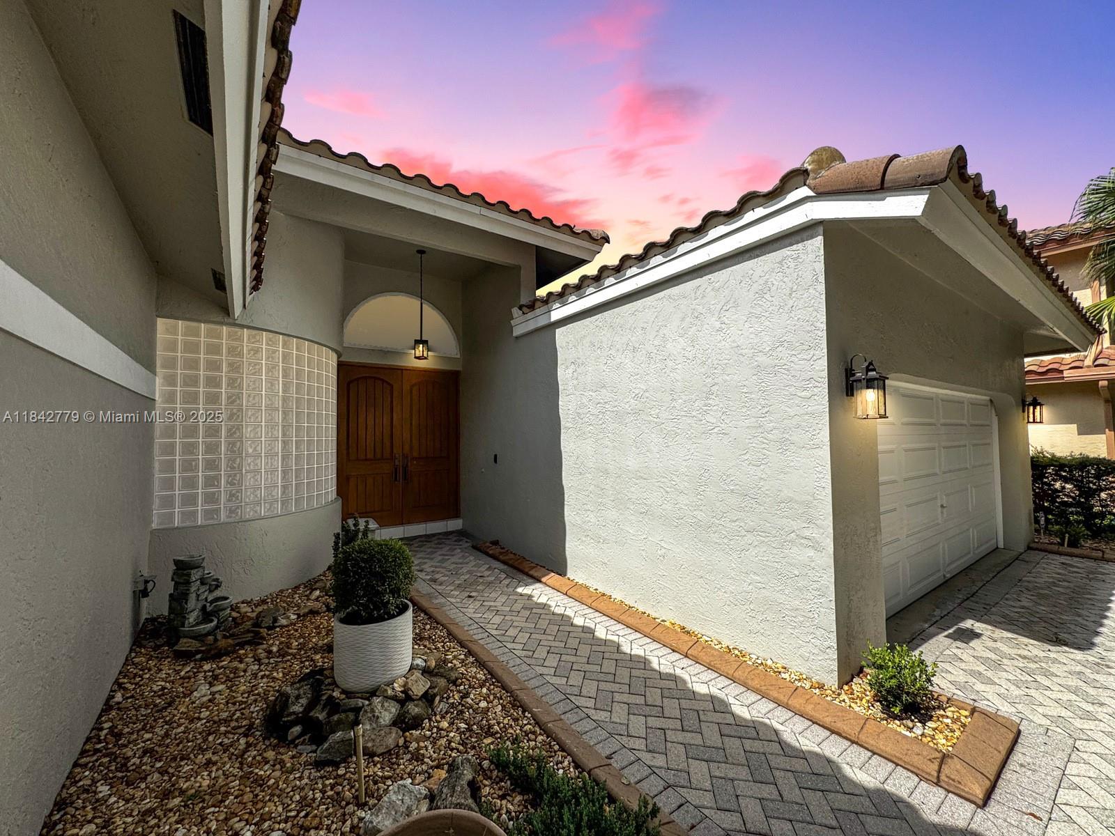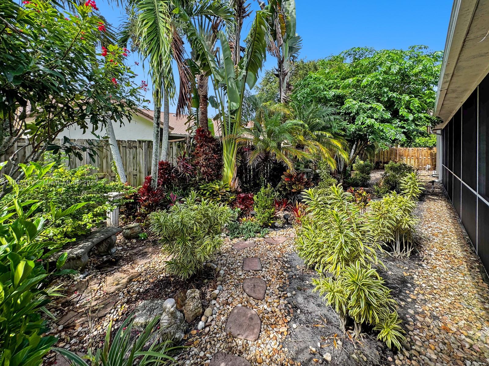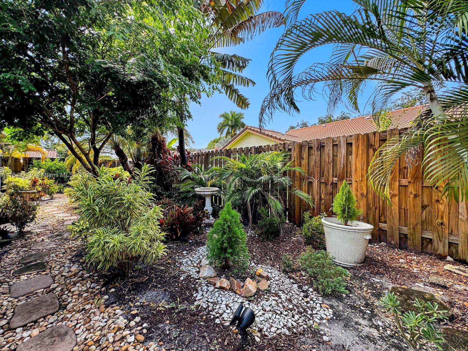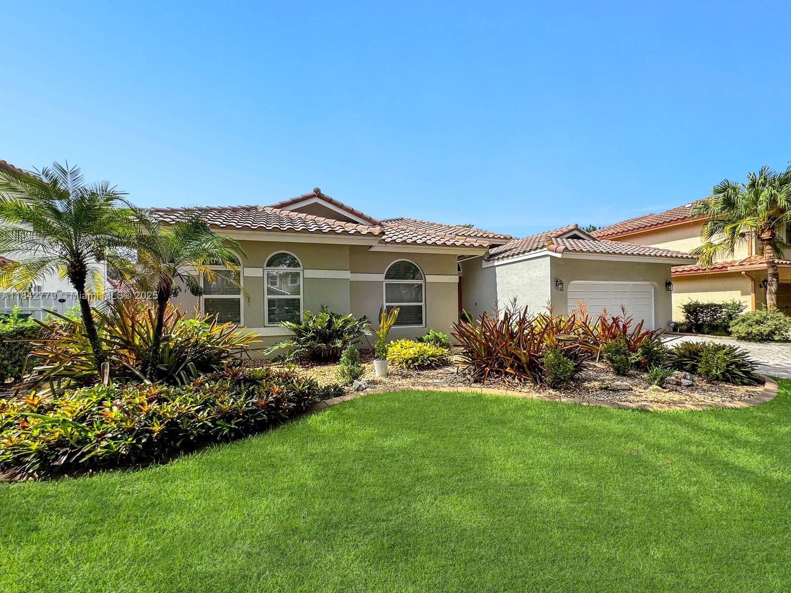 Beautiful 4 bed, 2.5 bath home nestled in the sought-after Embassy Lakes, Cooper City. Grand double door entry welcomes you to home filled with natural light through arched windows that create an inviting atmosphere. Kitchen features white cabinetry, granite tops, stainless appliances, counter-height seating & breakfast area. Open-concept layout w split floor bedroom plan. Spacious primary suite w walk-in closet & en-suite bath. Combination of impact & accordion shutters for complete protection; EV charger. Private Zen-like garden w stone pathway on fenced backyard with a tranquil covered patio retreat. Located on a tree-lined street in a pet-friendly neighborhood assigned to Cooper City schools. Resort-style gated community w fabulous pool, clubhouse, gym, sports courts & 3 manned gates.