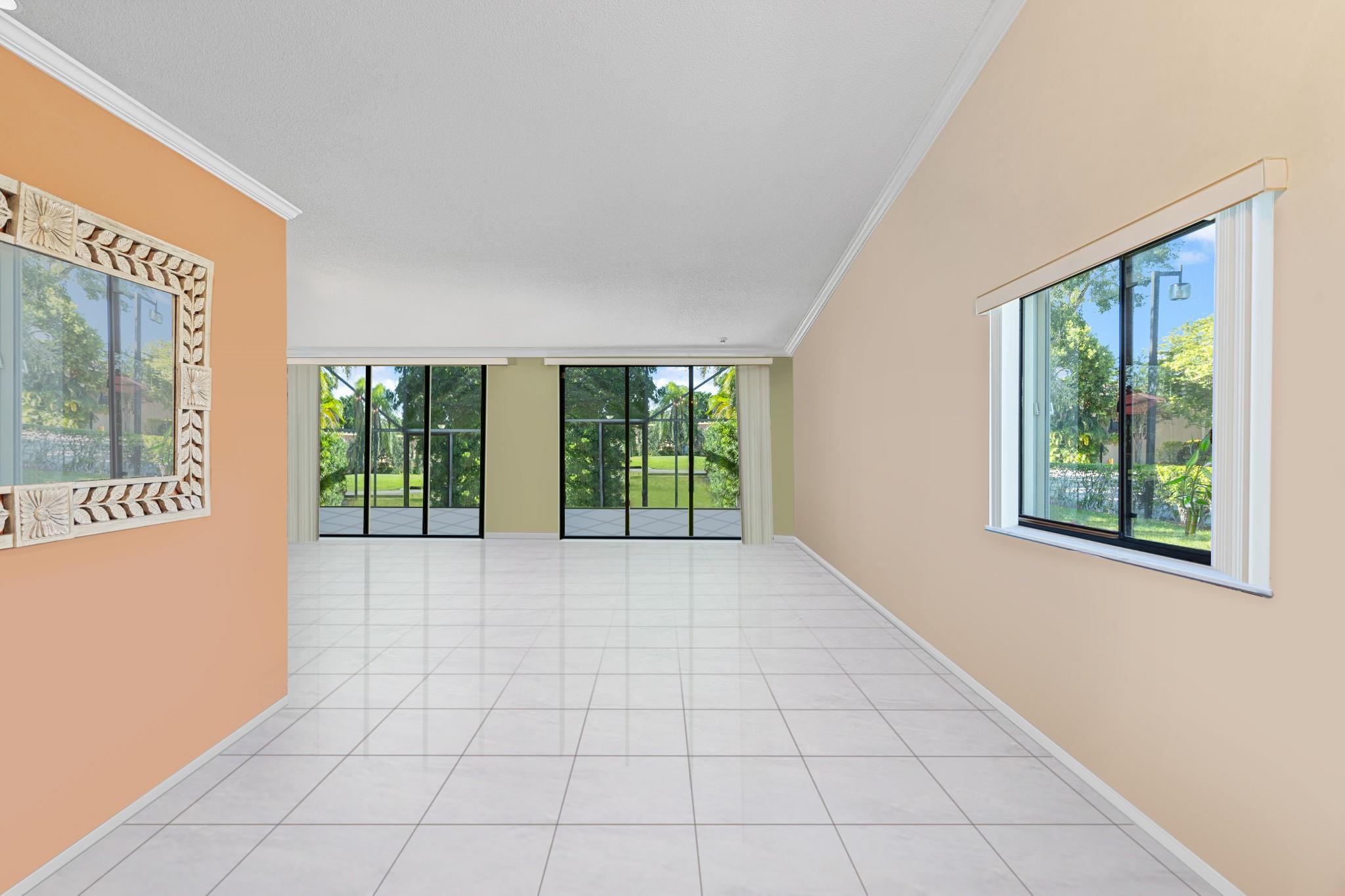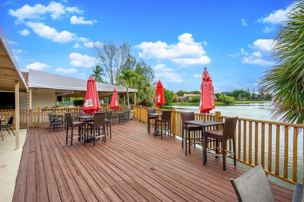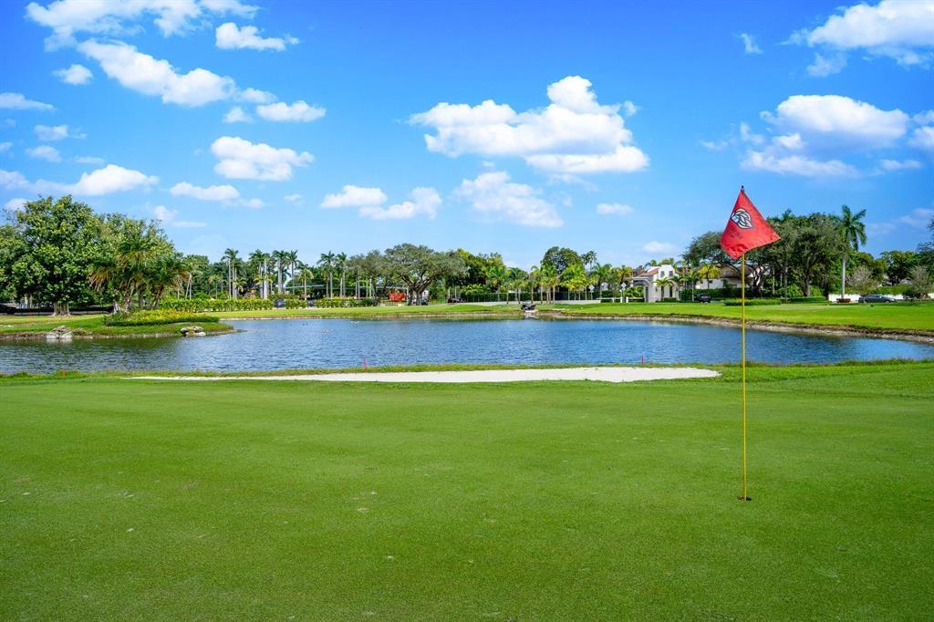 ONE STORY! CORNER! Golf & Water-views! Beautifully maintained 3-bed, 2 Bath LED exterior lighting! No Expense spared! Vaulted ceilings, Updated kitchen, Bath remodel, tiled floors, CCTV Cameras. Breathtaking views every room, large green space in backyard. Spacious living & dining filled w/natural light. Floored & lighted attic w/easy step-up ladder for extra storage, custom garage cabinets & custom garage floor finish. Storm ready, full accordion shutters, Impact Door, Impact Garage Door. AC 2024. Steps to clubhouse, 18-hole golf, restaurant on lake, tennis, basketball, pool, & jogging path. On-site management, 24-hour sec. guard entry. HOA INCLUDES Exterior & Roof Ins. Water, HD Cable, Internet, Driveway, Exterior paint, Trash, Landscaping, & common areas. Some pics photoshopped