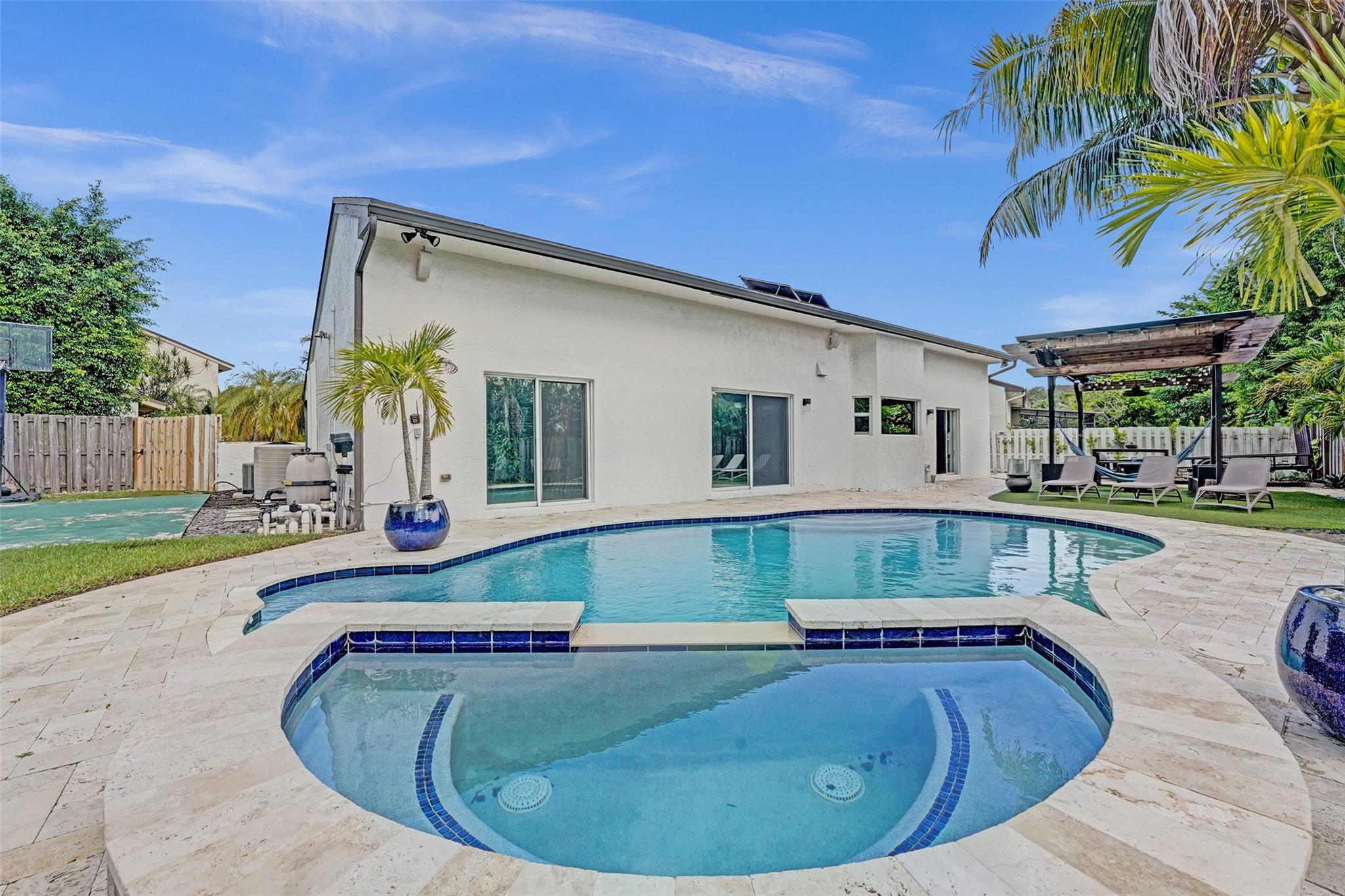 Beautifully Updated 4 Bed, 2.5 Bath Home Has The Perfect Blend Of Comfort, Functionality & Style. The Unique Versatile Floorplan Is Ideal For Everyday Living And Effortless Entertaining. The Primary Bedroom Located On The First Floor, Has Direct Access To The Spacious Backyard. Step Outside To Your Personal Oasis Featuring A Sparkling Pool/Jacuzzi, Fire Pit, Pergola, And A Basketball Court — All With Plenty Of Room Left Over To Customize As You Wish. Inside, Is Light-Filled And Thoughtfully Designed, With Spacious Living Areas And An Updated Kitchen. The Two-Car Garage Has Built-In Storage Cabinets/Shelving, Providing Ample Room For Vehicles, Tools, And More. Enjoy Access To Shenandoah Park Offering A Splash Pad, Playground, Tennis Courts, Volleyball, And Much More.