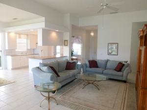 Welcome to this lakefront most sought after Oakmont model home in this renowned Riverwalk community.Enter through double doors to this open floor plan to this pristine home offering tile floors in the living area,wood veneer floors in the bedrooms.Beautiful kitchen with expansive granite counters overlooking the massive great room with 12 ft ceilings,built ins in closets including walk in master.The master also has a double door entry.The two baths lighting under cabinetry accent the area with soft illumination.The master bath has a his and her layout with dual entry to the glass enclosed shower,central vacuum system, large utility room with side by side washer dryer and sink with plenty of cabinet space,intimate dining area,exit through 18ft ft of glass sliders to a 22ft covered patio