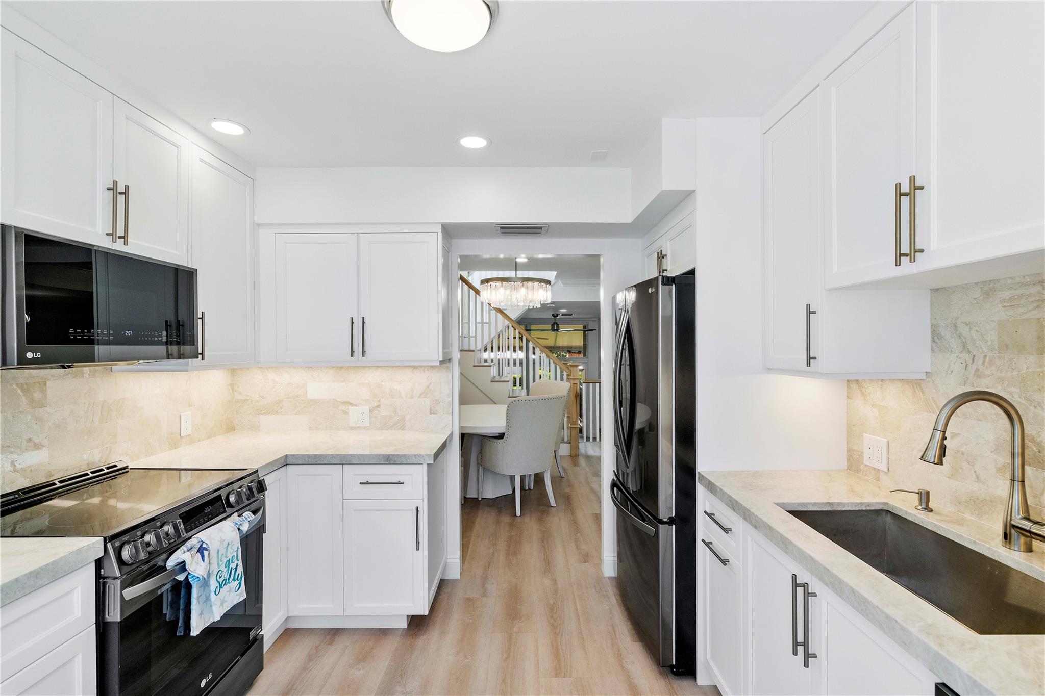 Picture yourself walking from your oceanfront townhouse only 250 feet to the sand! This gorgeous townhome offers unobstructed ocean views from multiple balconies & was fully renovated top to bottom in 2025. No detail was spared with upgrades. Remarkably low HOA - only $500/month. New electric, plumbing, A/C, water heater, LVP flooring, washer/dryer, LED recessed lighting, fixtures, custom railings, & blinds. The chef’s kitchen stuns with Taj Mahal quartzite, LG appliances, & custom cabinetry. Bathrooms with custom closets & a Jacuzzi tub. All impact windows & doors, plus new skylight for full insurance discount. Toothbrush-ready. Rarely does something like this ever hit the market. Make your dream come true!