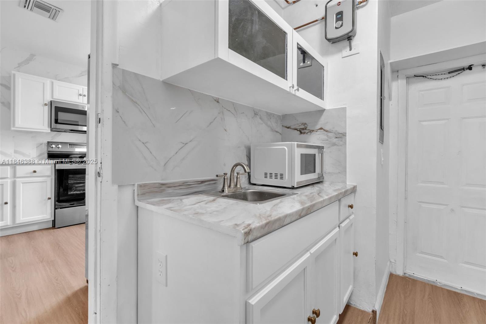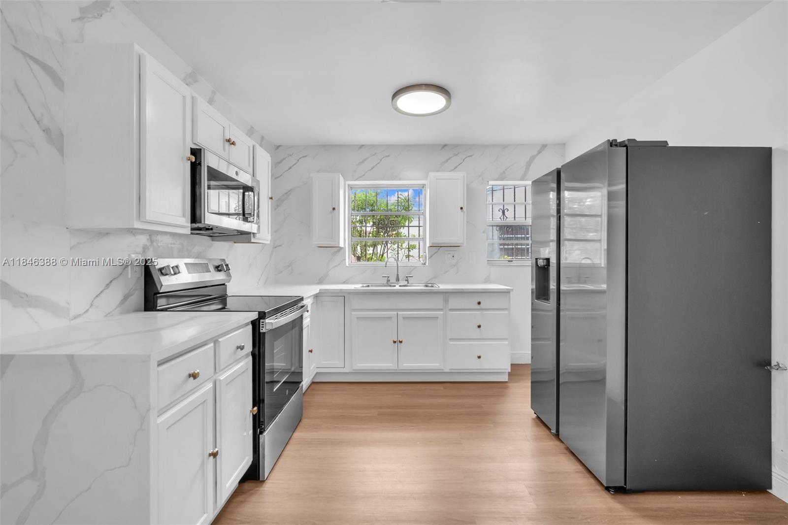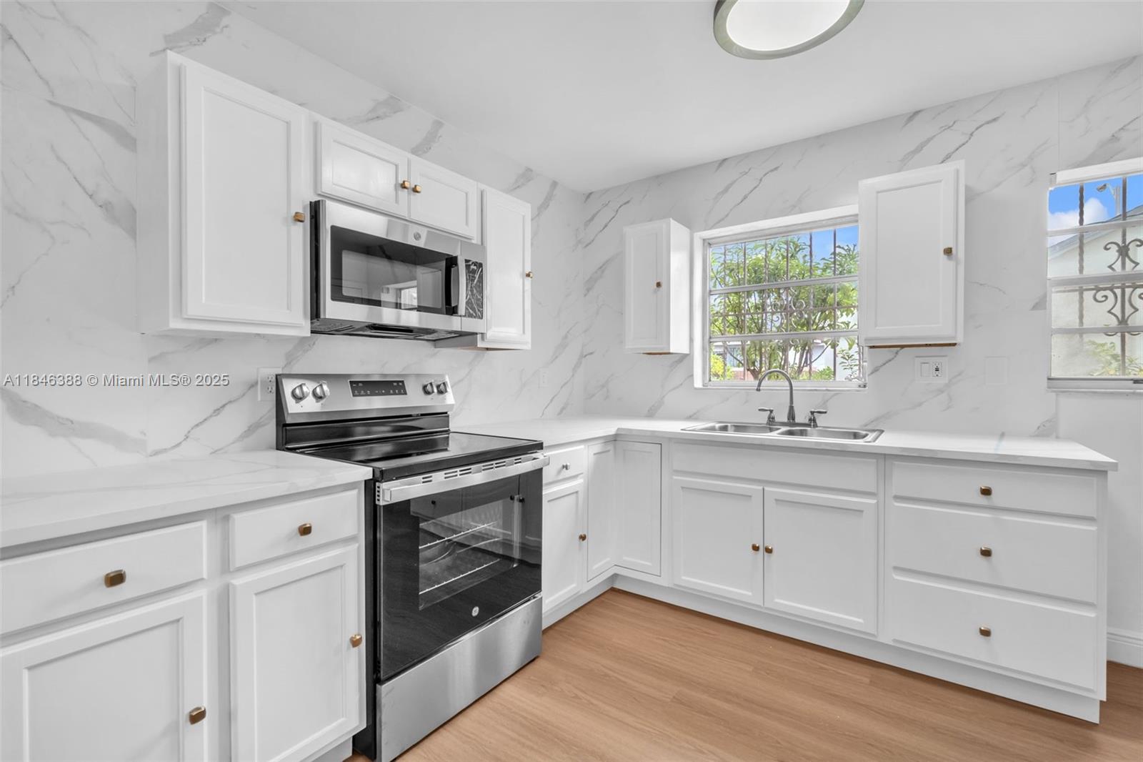 Desirable 3 bedroom, 2 bath home offering an appealing layout for comfortable living and entertaining. New A/C, brand name appliances, in a sleek, upgraded kitchen. Wood-like floors recently installed throughout the home, private studio with full bathroom, spacious fenced yard with covered terrace, delicious mango tree, large concrete storage shed and ample room for pool. Situated in a sought after neighborhood conveniently close to Miami International Airport, Wynwood, Miami Beach, major malls and restaurants. Whether you are looking for a profitable income-producing home like Airbnb or a charming home to host friends and loved ones, this property checks all the boxes. This is a rare opportunity you don't want to miss!
