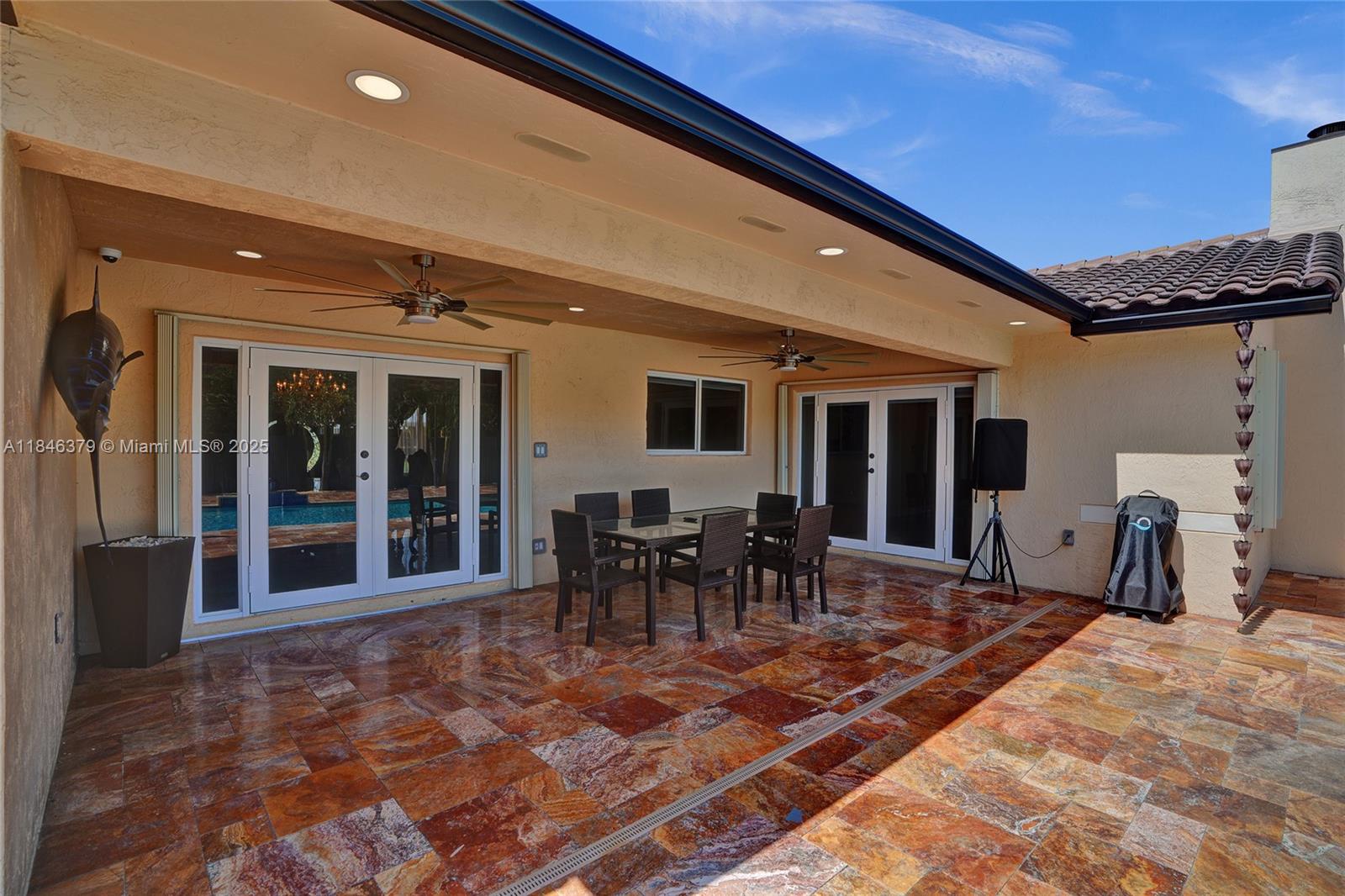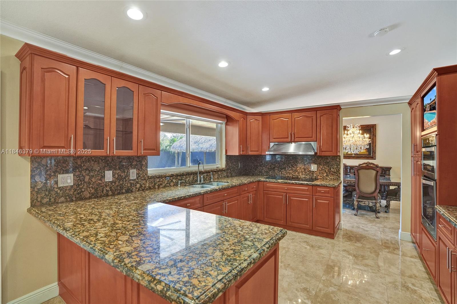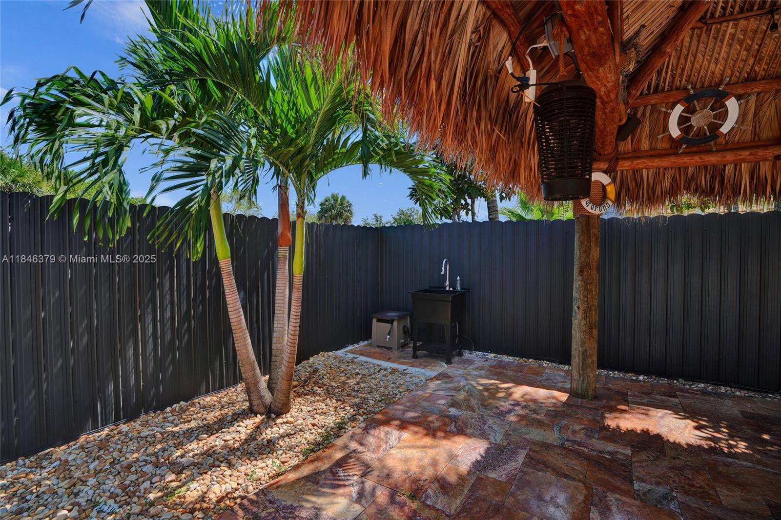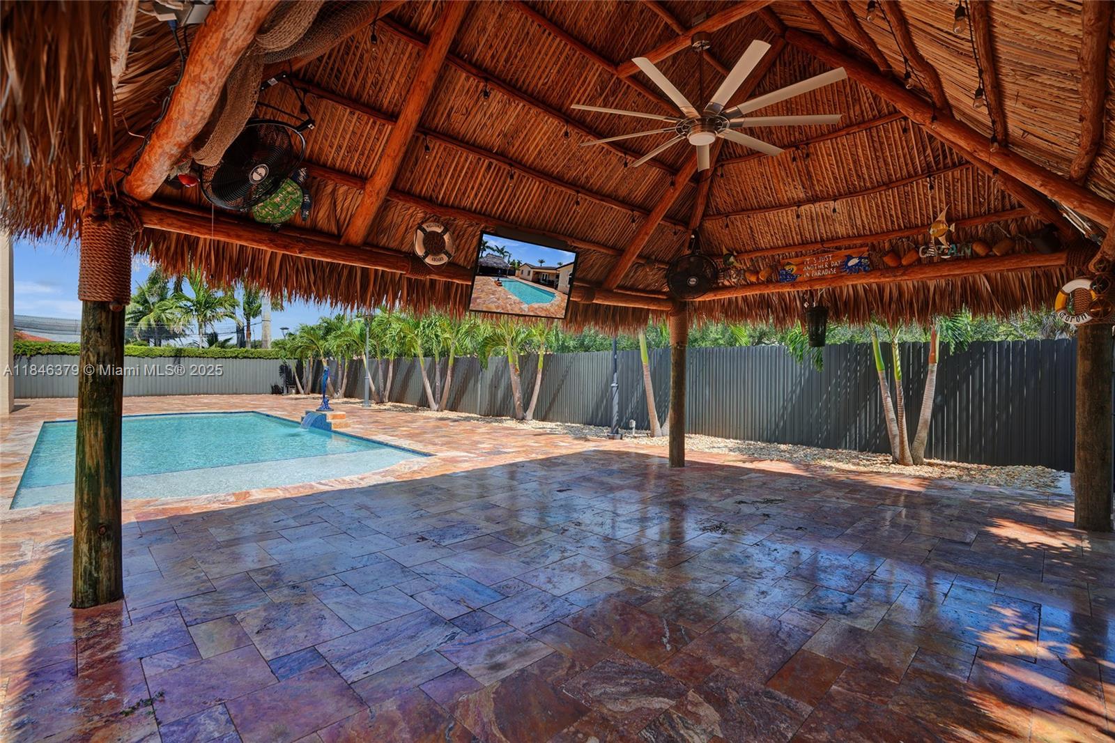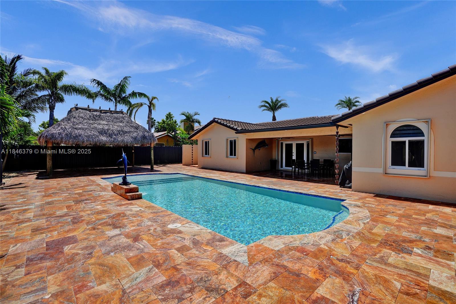 You have found the place you will call home in this 4/3 single family home perfect for entertaining family & friends at BBQs & holidays in the large size backyard w/ a covered terrace plus a tiki hut equipped w/ surround sound, TV, fans & adjacent to the saltwater pool for those hot summer days. Own a jet ski or small boat? There is room for them as well. The property also features accordion shutters, approx. 3 yr. old roof w/ 10 yr. warranty, two A/C units approx. 4 yrs. old, tankless water heater, water softener/filter system, porcelain flooring throughout, wood kitchen cabinets, stainless steel appliances, circular driveway w/ recently installed pavers that accommodates several vehicles, camara system included in the sale & so much more. See it ... love it ... make it your own!