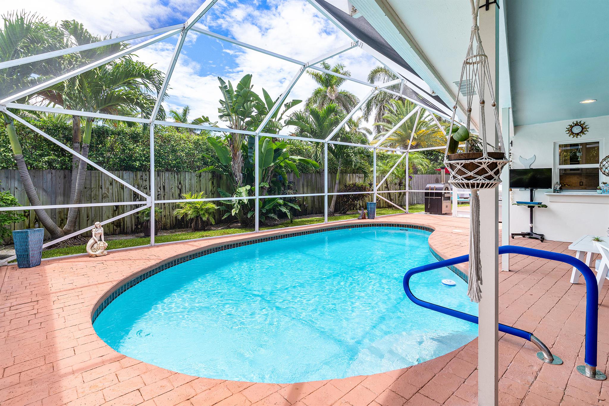 NO HOA in East Boca Raton, this charming and fully updated 2-bedroom, 2-bath single-family home is ideally located east of US1, just minutes to beaches, shopping, and dining. This property has been beautifully renovated with marble flooring throughout, a stunning kitchen featuring quartzite countertops, white shaker cabinets, marble backsplash, and new appliances including a gas range. Roof (2023), A/C (2022).Enjoy outdoor living in the spacious, fully fenced backyard, private pool, landscaping, and room to park a boat or RV OR add on to the home!Whether you're looking for a full-time residence or a vacation retreat, this move-in ready home is updated, easy to maintain and allows for taking full advantage of the South Florida Lifestyle!