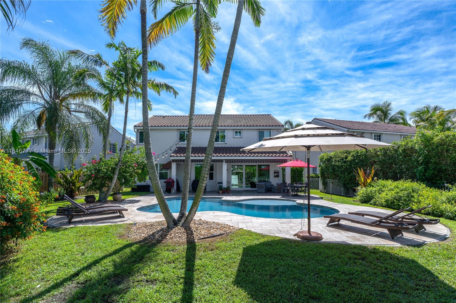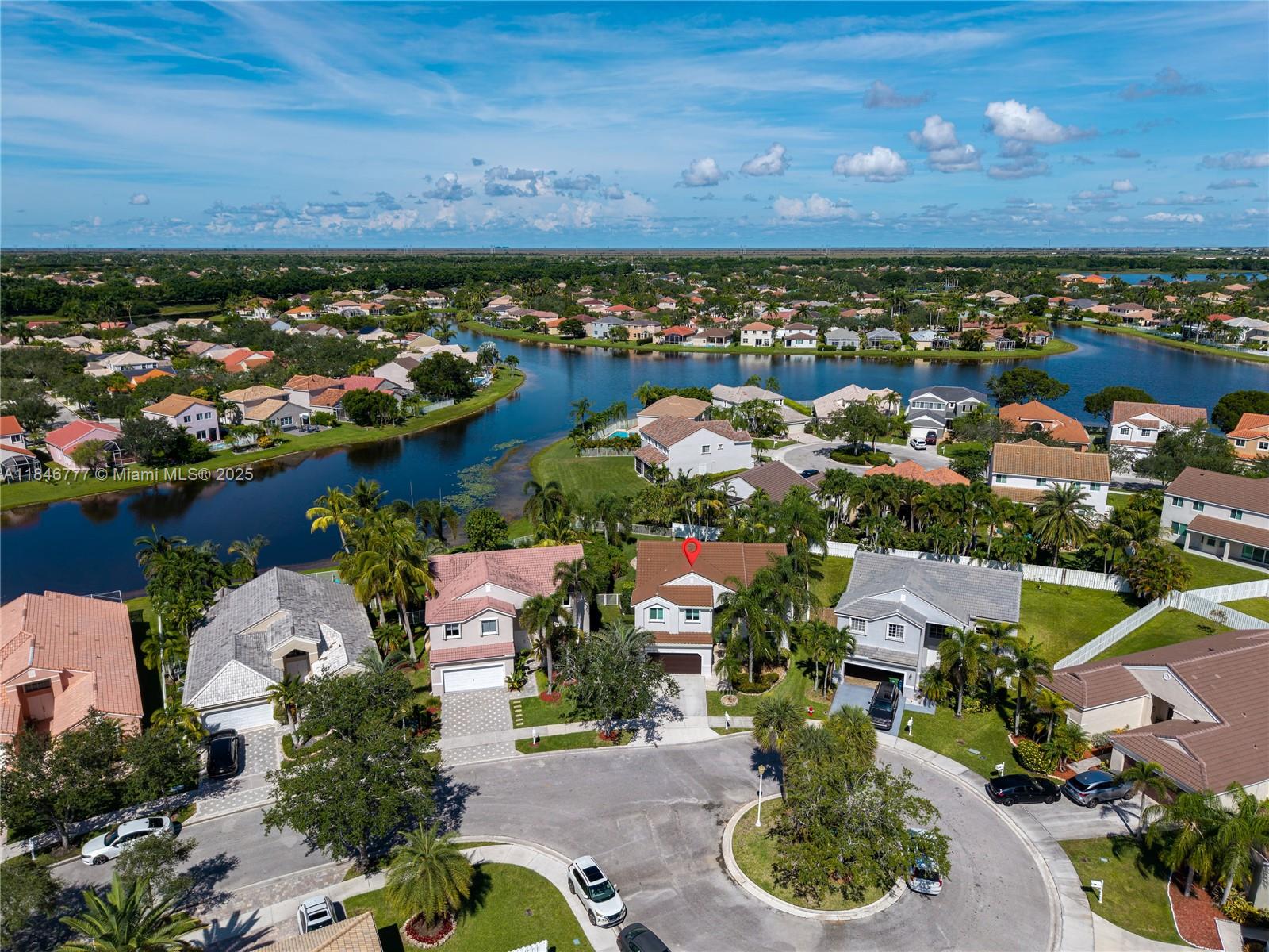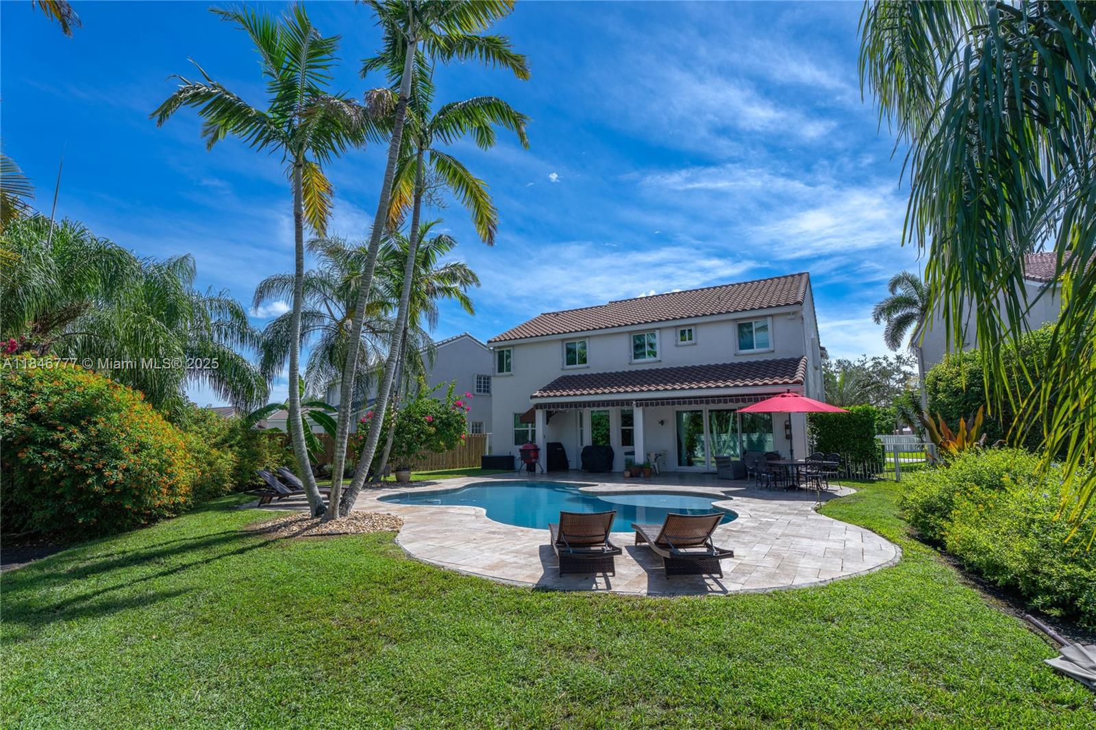 Welcome to your dream home! This beautiful 5-bedroom, 3.5-bath residence offers the perfect elegance and comfort. Enjoy peace of mind with a NEW ROOF and NEW IMPACT WINDOWS AND DOORS throughout. The spacious layout is ideal for both everyday living. This home features a gourmet kitchen with wood cabinets and stainless steal appliances. Resort-style POOL, PRIVATE and fully FENCED BACKYARD, covered patio, and child safety pool fence—perfect for entertaining. Serene lake view with no water access. Quiet cul-de-sac in a family-oriented community, The Falls. Gated community offers pool, playground and a basketball court. Roof 2022, Impact windows 2022, interior paint 2023, exterior paint 2022, AC 2023 condenser unit (outdoor)/2009 Evaporator Coil/Air Handler (indoor). All bedrooms are upstairs.