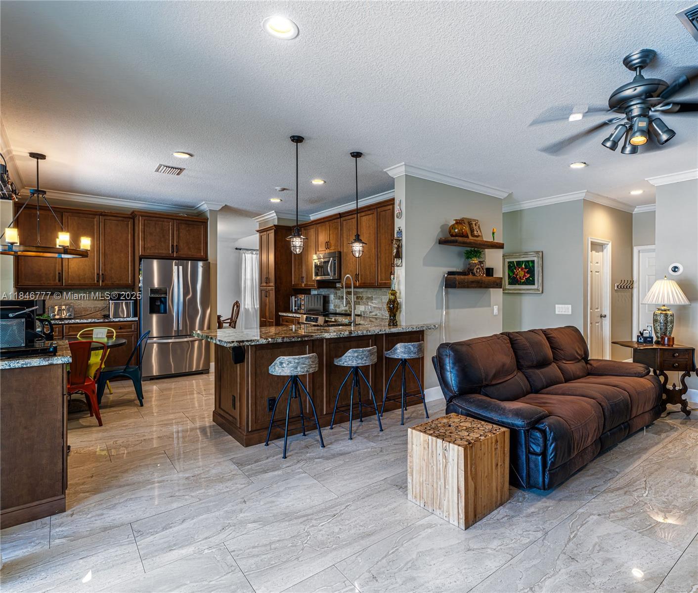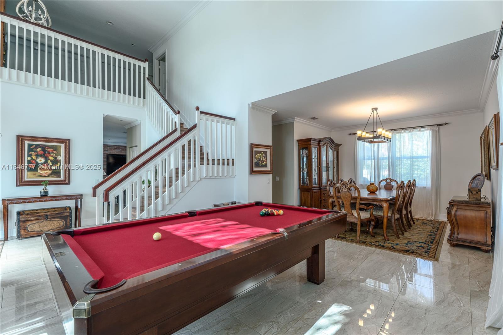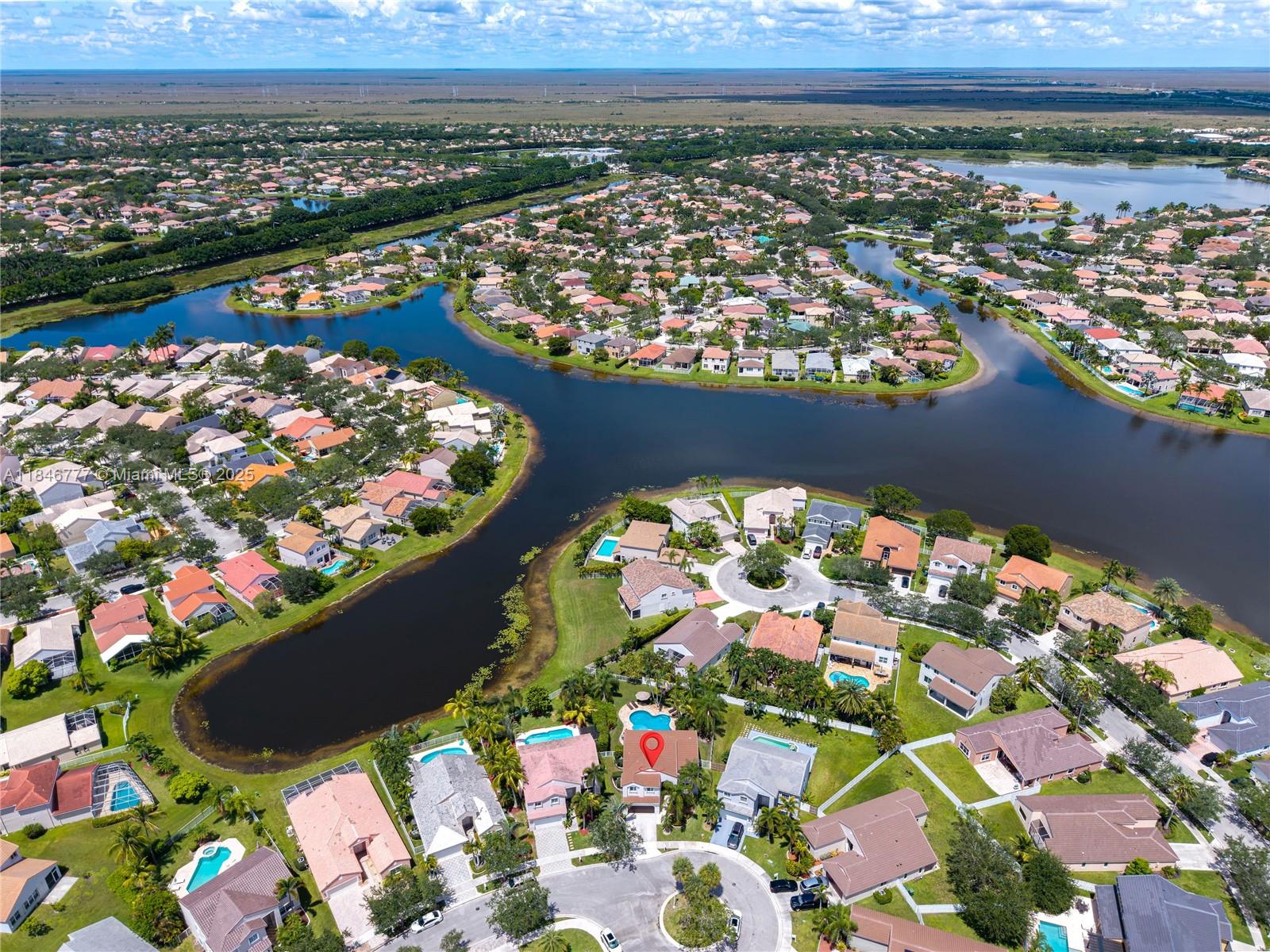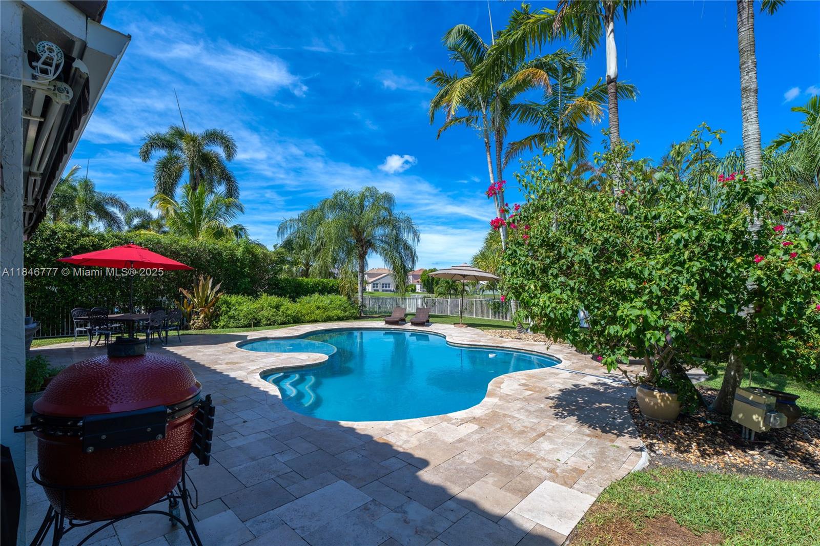 Welcome to your dream home! This beautiful 5-bedroom, 3.5-bath residence offers the perfect elegance and comfort. Enjoy peace of mind with a NEW ROOF and NEW IMPACT WINDOWS AND DOORS throughout. The spacious layout is ideal for both everyday living. This home features a gourmet kitchen with wood cabinets and stainless steal appliances. Resort-style POOL, PRIVATE and fully FENCED BACKYARD, covered patio, and child safety pool fence—perfect for entertaining. Serene lake view with no water access. Quiet cul-de-sac in a family-oriented community, The Falls. Gated community offers pool, playground and a basketball court. Roof 2022, Impact windows 2022, interior paint 2023, exterior paint 2022, AC 2023 condenser unit (outdoor)/2009 Evaporator Coil/Air Handler (indoor). All bedrooms are upstairs.