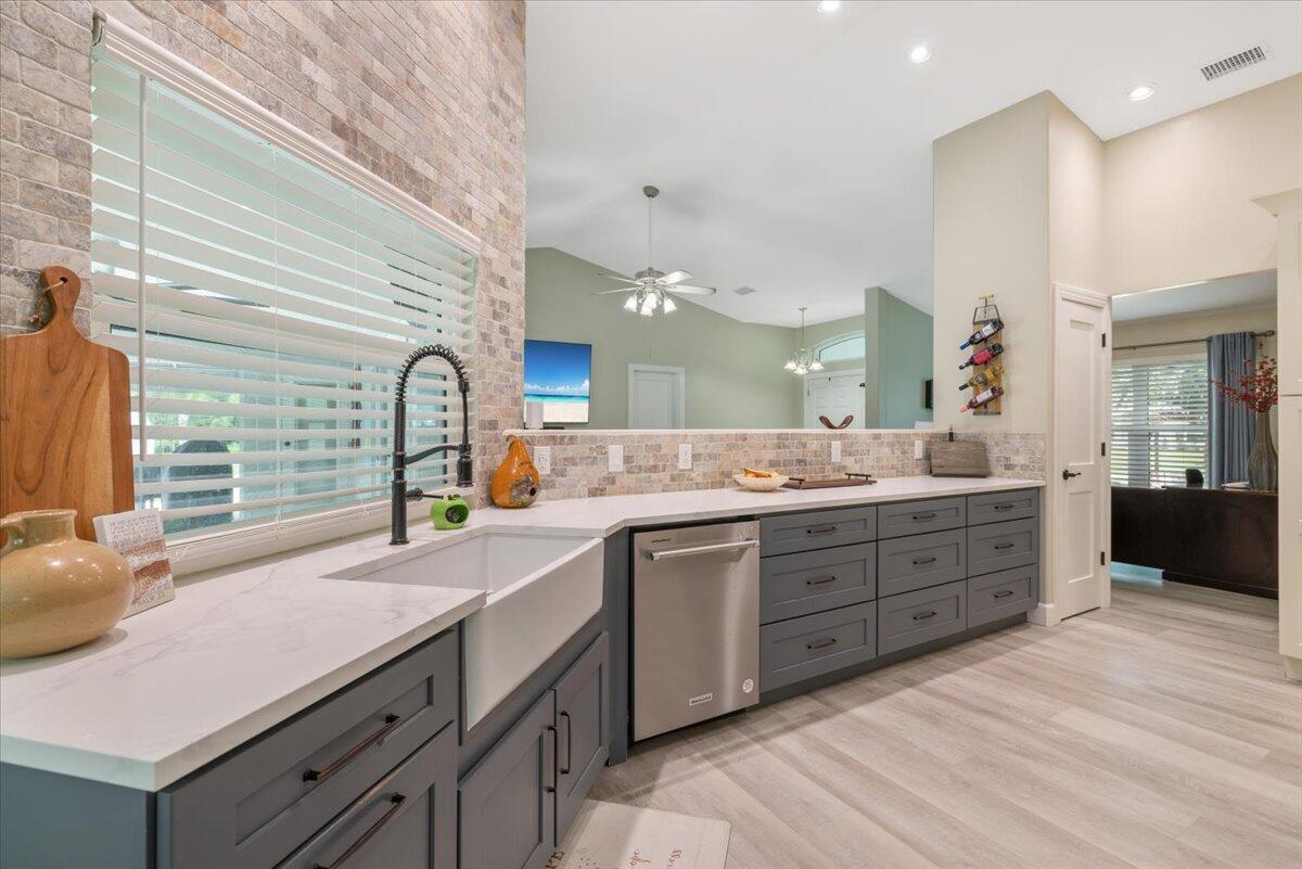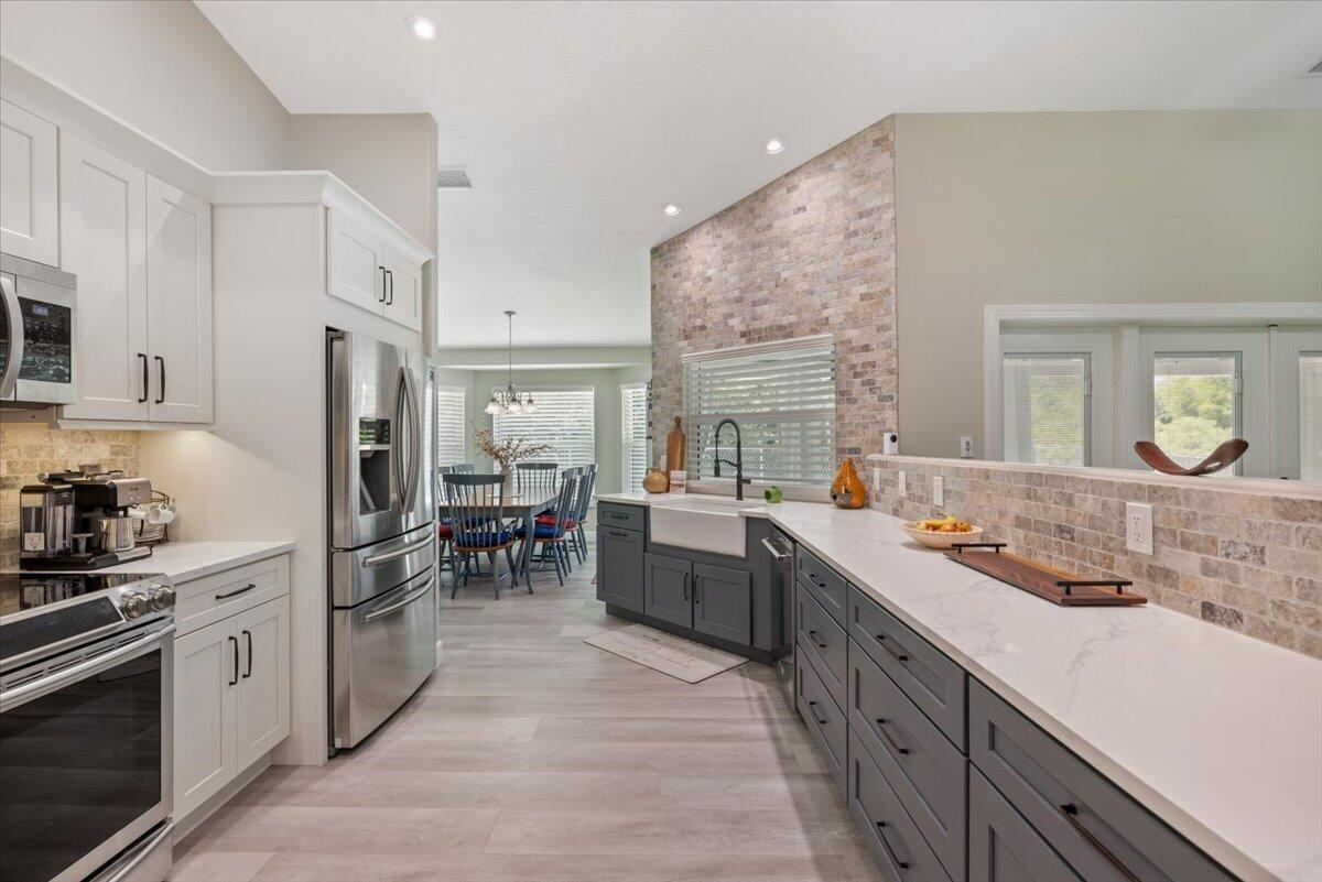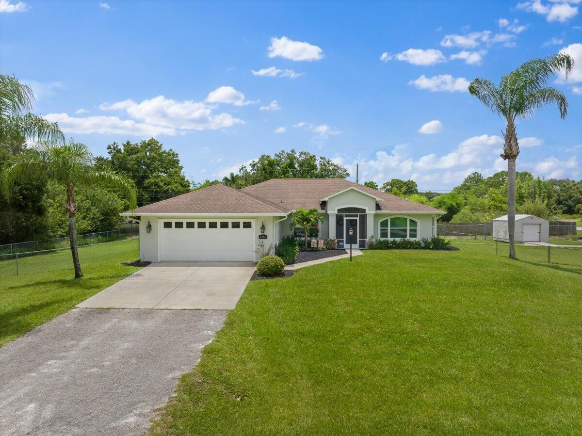 Beautifully Updated Pool Home on Double Lot with Room for All Your Toys! The updated kitchen features solid wood cabinetry, quartz countertops, and stainless appliances. New hurricane impact windows and doors, New A/C (2021), New water heater (2025), Newer roof (2018), New 96-ft well for the home (with softener system) and irrigation. New flooring in the main living areas and carpet in the bedrooms. The fully fenced backyard has a pool with paver patio that leads to the second driveway with water and electric hookup which is perfect for boat or RV, plus a 12x17 shed with a roll-down door. This home is a must see! It has so many upgrades and is move in ready!