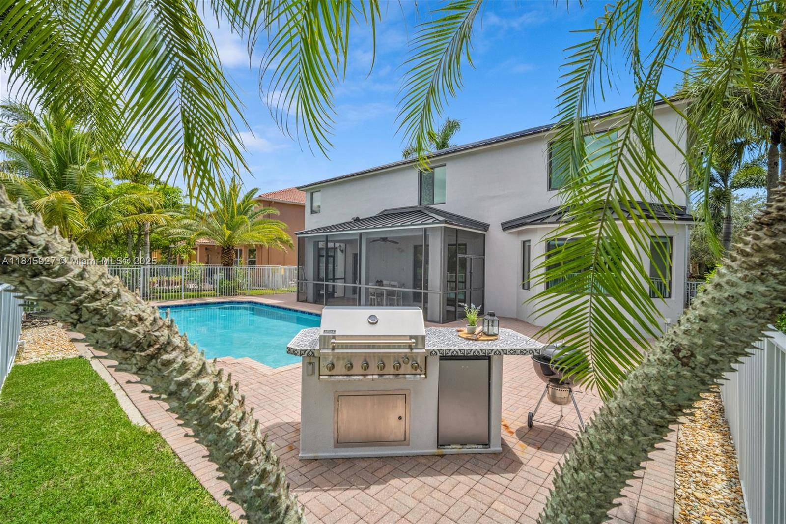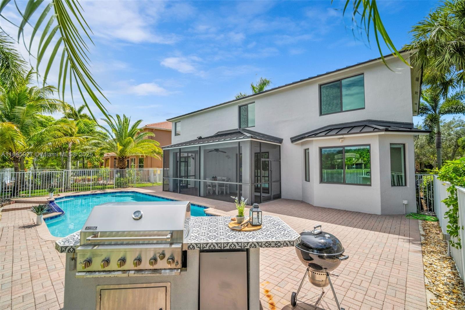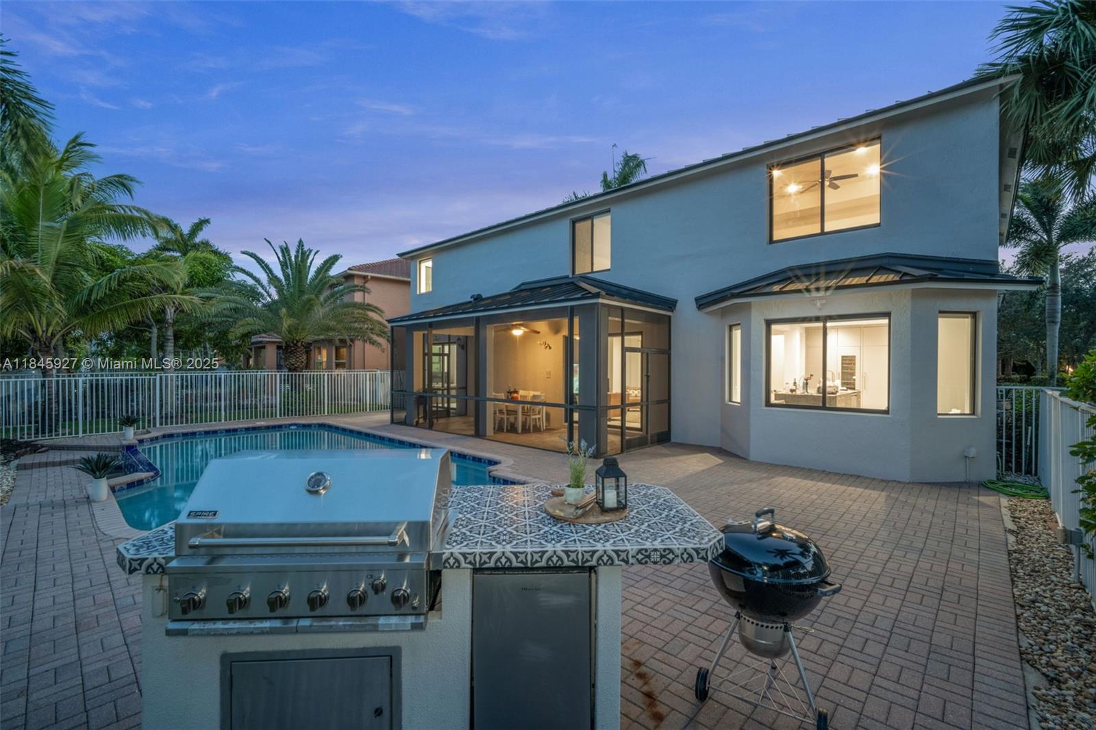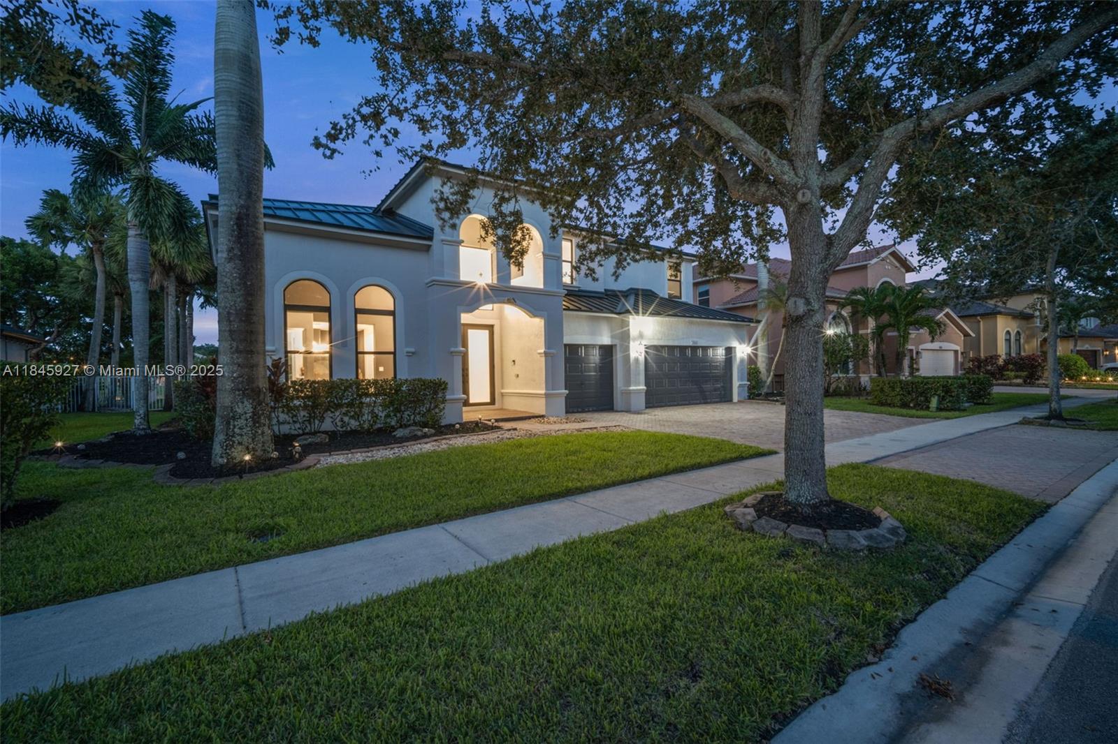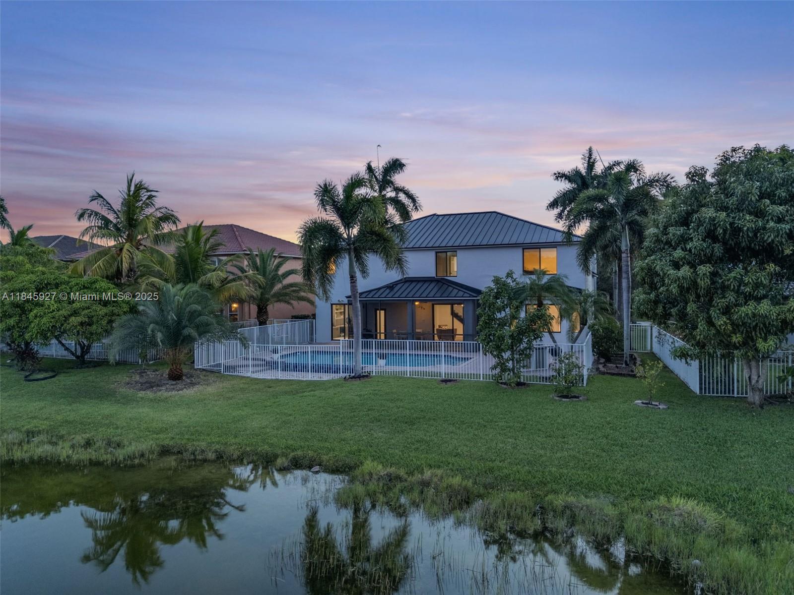 This showstopping, one-of-a-kind home is filled with upscale upgrades and eye-catching style! With 5 spacious bedrooms, a private office, and a flexible loft. all offering stunning lake views — Brand-new 2024 metal roof and Impact Windows. Inside, soaring ceilings, a statement staircase, and sleek modern flooring create a grand welcome. The gourmet kitchen wows with a wine display, premium appliances, double ovens, and an oversized island. The primary suite offers a relaxing sitting area and spa-like bath with soaking tub. Enjoy the Florida lifestyle outdoors with a screened patio, summer kitchen, sparkling pool, & cabana bath. Located in the prestigious gated Isles at Weston, with a renovated clubhouse, resort-style amenities, and top-rated schools. This home isn’t just updated