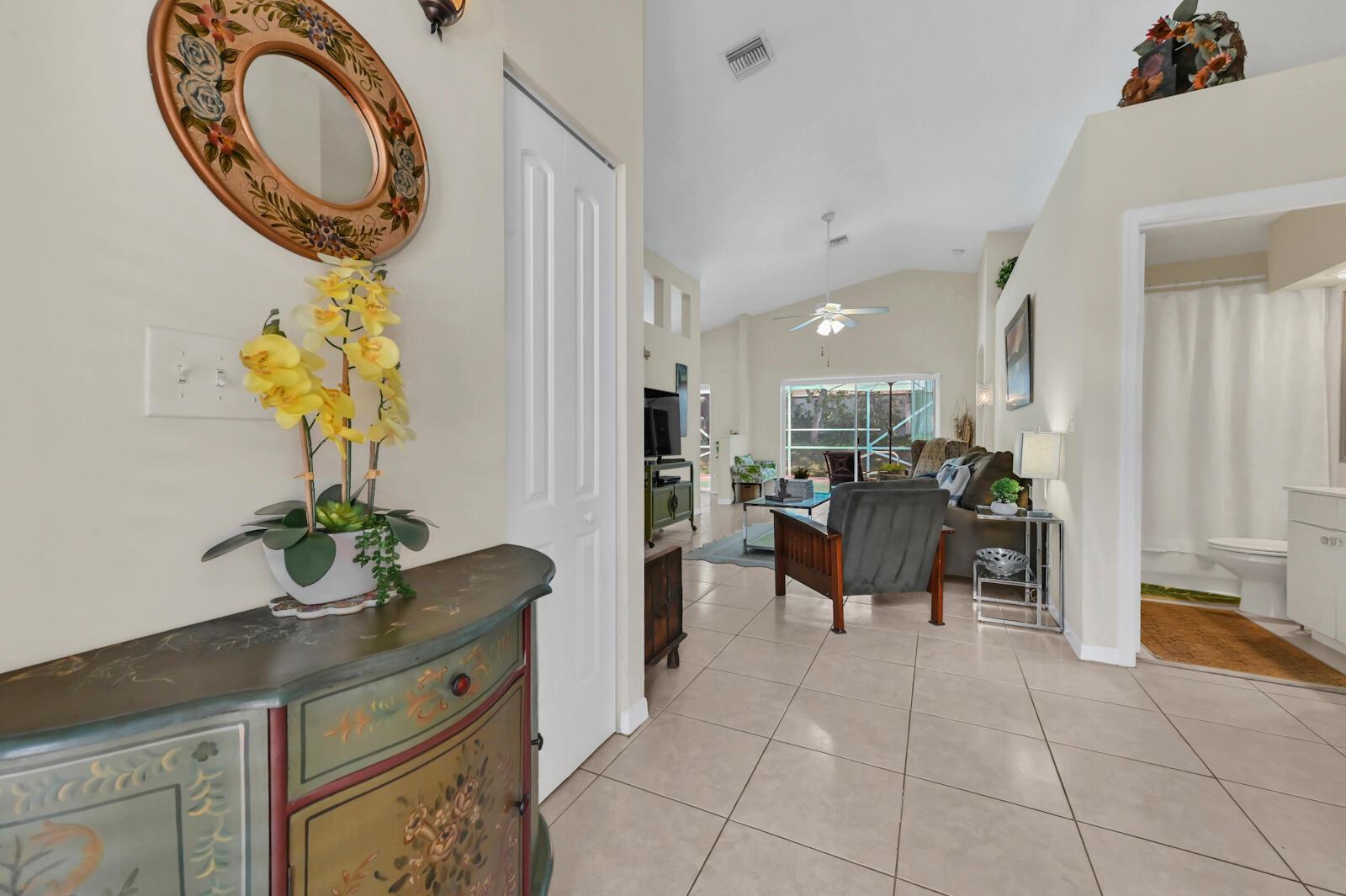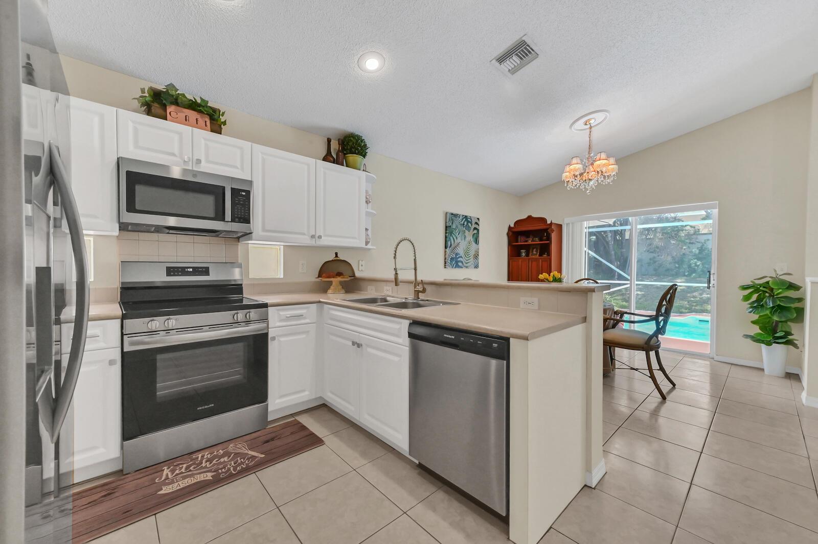 New roof, new gutters, new screen enclosure, freshly painted interior & exterior, new pool pump, new water heater, new stainless steel kitchen appliances and new kitchen cabinets!Escape to your private paradise in this beautiful pool home, perfectly situated in the highly sought-after Spinnaker Bay of Lake Charleston. This residence boasts a fantastic floor plan enhanced by elegant vaulted ceilings, creating an open and airy ambiance throughout. Discover a cozy dining room, a generously sized kitchen, and a spacious great room, all seamlessly connected by charming archways, making this home ideal for both everyday living and effortless entertaining. The flexible room offers the perfect opportunity to be converted into a versatile den or office!
