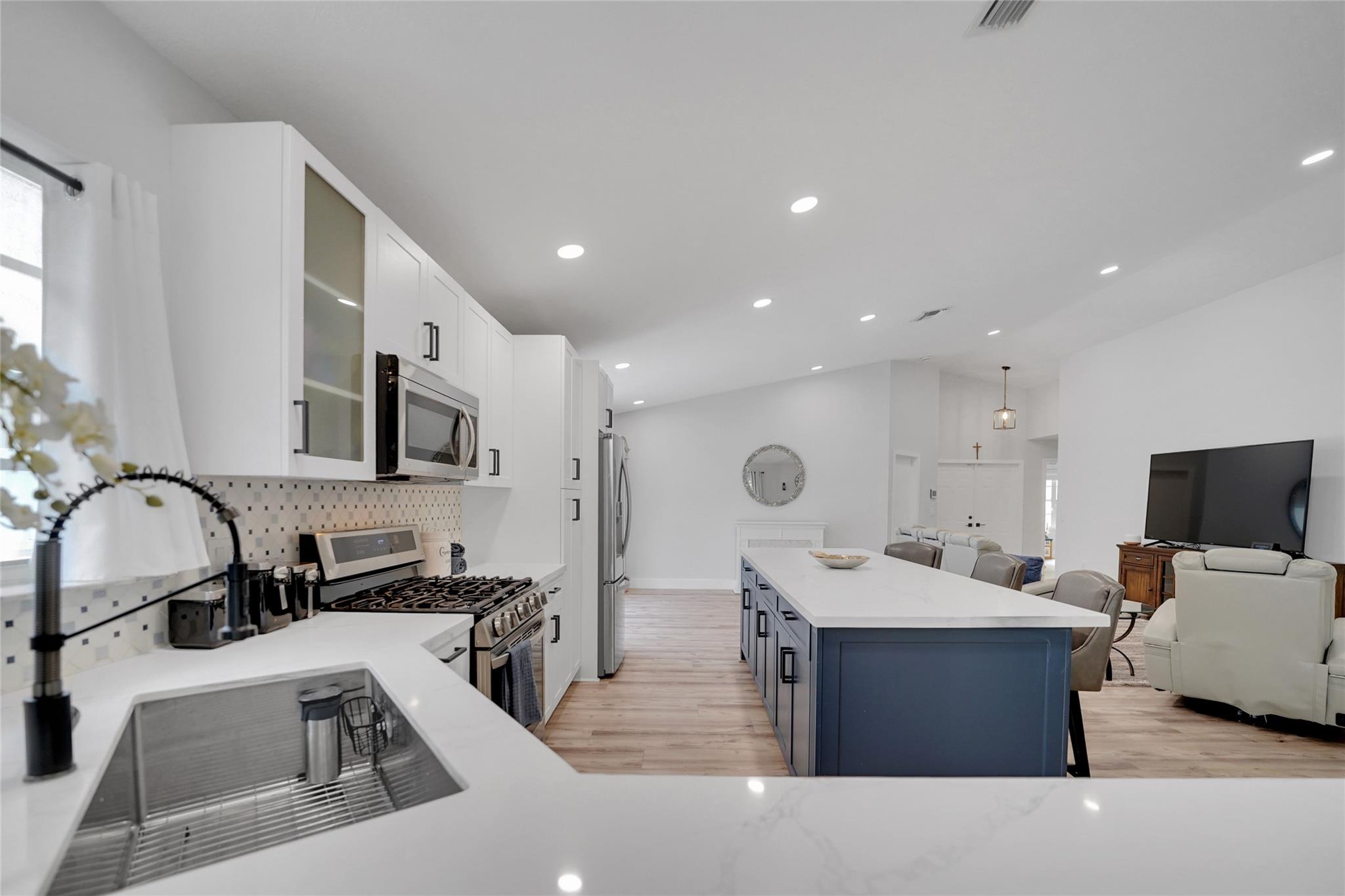 Welcome to Sawgrass Plantation! Step into this beautifully redesigned and spacious one-story home featuring 3 bedrooms and 2.5 baths in a highly desirable community. This tastefully updated residence offers a new roof, vaulted ceilings, and open-concept layout with a modern kitchen featuring quartz countertops and stainless steel appliances. Enjoy new wood laminate flooring throughout, gorgeous master bathroom, and extra-large 3rd bedroom that includes a built-in Murphy bed, perfect for guests, a home office, or multi-use space. Step outside to your fully fenced backyard with a screened-in patio and private jacuzzi, ideal spot to relax or entertain. Move-in-ready home has it all—style, flexibility, & peace of mind. Centrally located near Schools, Shopping Centers, Restaurants and Highways.