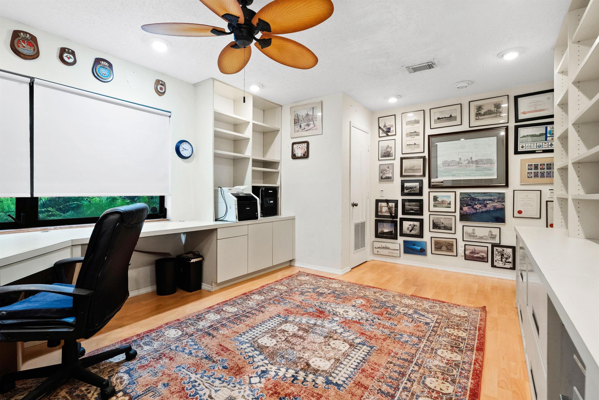 Luxurious 5BR/3BA Pool Home on 1+ Acre with Marina Slip. Rarely available Wide Waters estate backs to the Floridian Golf Club. Custom KraftMaid kitchen with stainless backsplash, pull-outs, and herbarium. Grand staircase leads to the owner's suite with a Kohler Watersilk Whirlpool, twin vanities, and walk-in shower with dual showerheads. The outdoor living space is an entertainer's dream, featuring a 50-foot screened lap pool, expansive covered porch, and a custom 32-foot-wide pocket sliding door that blends indoor and outdoor living seamlessly. Includes a home office with built-in desk and shelves (BR 3), mother-in-law suite (BRs 4 & 5), and slip #14 in marina for river/ocean access.