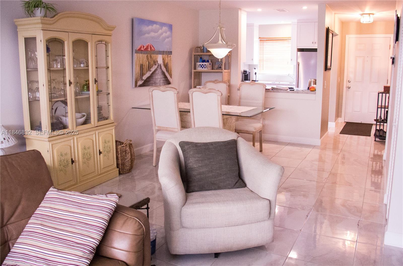 AMAZING TURN-KEY FURNISHED 2-STORY TOWNHOME located in the gated community of Waterside Village. Fully renovated kitchen, open concept, with brand new fridge replaced January 2025. Hurricane shutters found throughout the home a lot of closet space! Brand new AC that was replaced July 2025 equipped with new google home thermostat. Washer and dryer are inside the home, located on the first floor. Renovated half bathroom is also located on the first floor and convenient for guests. Living area opens up to the peaceful screened Florida room. Both bedrooms are located upstairs and both have renovated bathrooms. Popcorn ceiling downstairs fully removed. Monthly HOA fees include water, cable and internet! Community offers many amenities such as pool, tennis, on-site office, security,& more!
