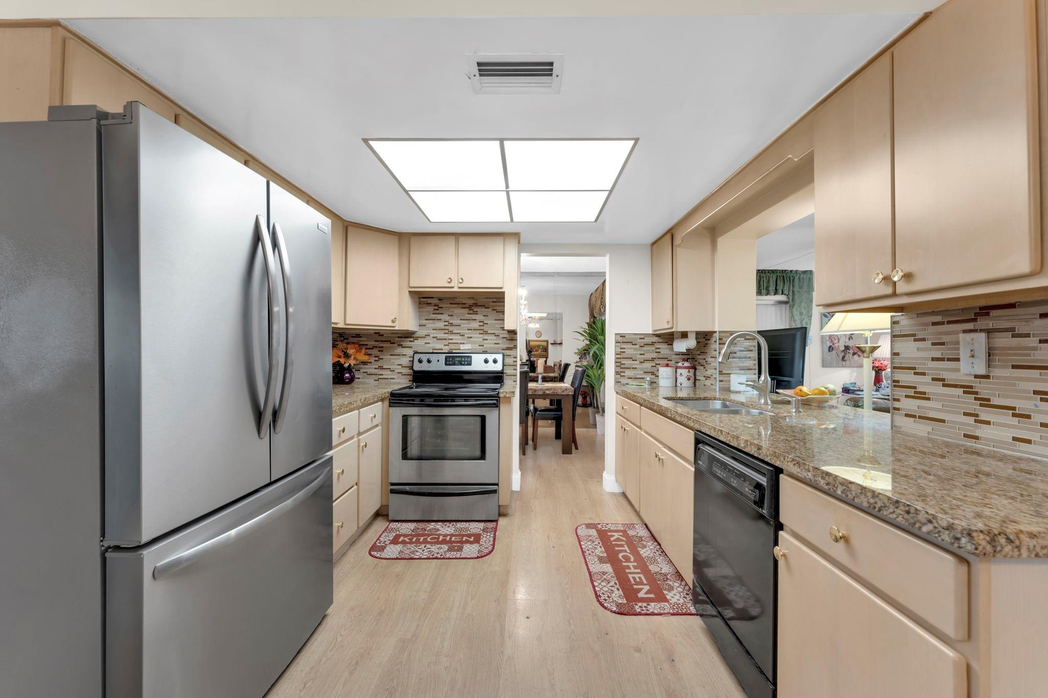 Mainlands in Tamarac 55+ Community is a lovely place to live. Offers 2 Heated Community Pools, Clubhouse, Billiards Room, Library, Shuffle Board, On site office and Community Events. VERY LOW ASSOCIATION FEE. This home Features 2 Oversized Bedrooms and 2BA and the VERY Large Florida Room. The Largest Model Offered with 1669sf Under Air and 1707sf Adjusted area. Updated Kitchen, SSL, Granite and Glass Tile Backsplash. Both Bathrooms are Beautifully Updated, Primary has Walk-In Shower. Primary Bedroom has New Tile Floor and Walk In Closet. There are New Ceiling Fans and light fixtures though the home. Brand New flat roof (2024) over Florida Room, AC 2025, Roof 2013, Flat Roof (2024) New Entry Door, Side doors and Garage Door, Storm Shutters on all the windows.
