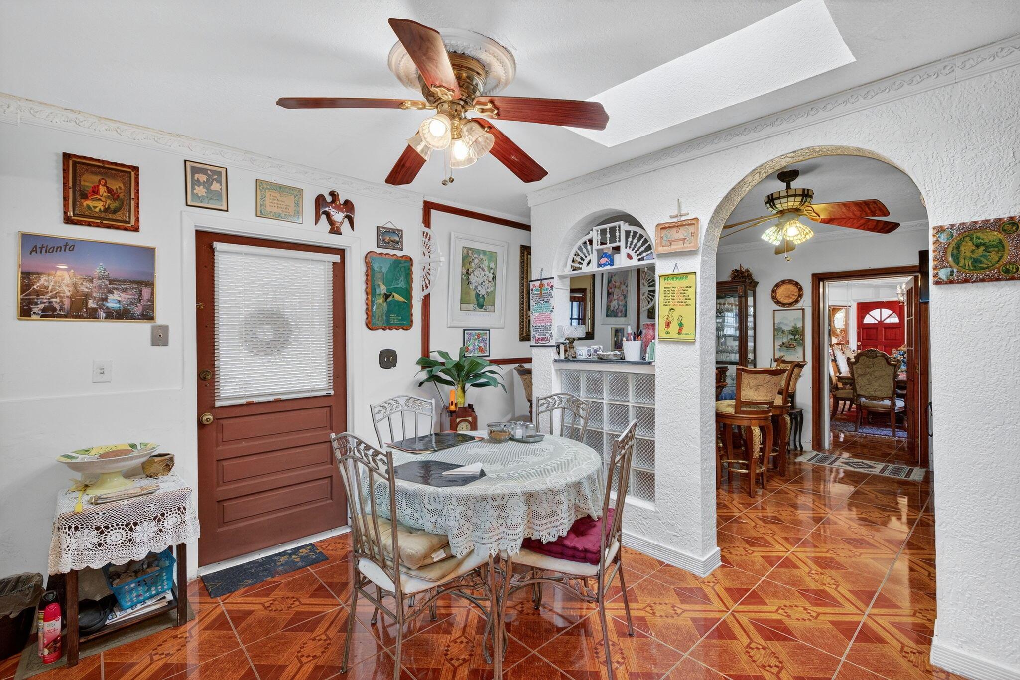 Step into vintage charm and timeless elegance on an oversized lot that offers space, character, and comfort. From the moment you arrive, the expansive circular driveway welcomes you home with style and convenience, setting the tone for this uniquely authentic property. Inside, a traditional floor plan unfolds beautifully, creating a natural flow that's perfect for both everyday living and effortless entertaining. The eat-in kitchen complete with stainless steel appliances, is a warm and inviting space, for enjoying breakfast and morning coffee or evening meals. Just steps away, an oversized dining room provides the ideal setting for hosting holiday dinners or any celebrations. The floating buffet, and built-in storage add both charm and function. In between the dining area and