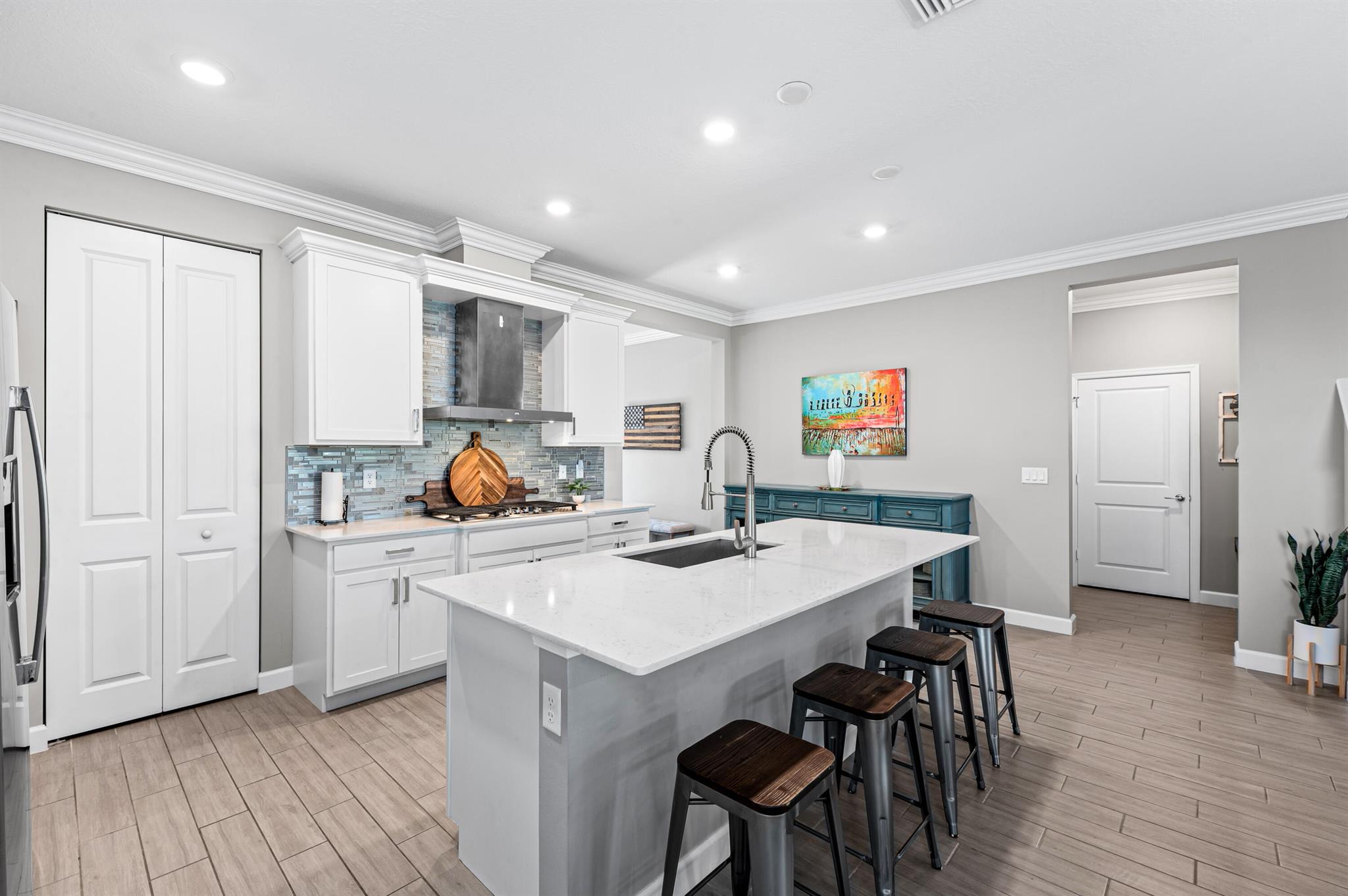 Lake walkers and runners this is your DREAM home! Located in the highly sought after master community Arden. This waterfront home offers 5 bedrooms with the owners suite on the 1st floor along with a flex room while 4 spare bedrooms upstairs share a loft and 2 full baths.This home is great for entertaining or multi-generational families with 3,338 sqft of living space, an over sized 3 car garage and a driveway that holds 9 cars! The backyard is large enough for a pool and outdoor kitchen.The sunsets are literally in your backyard.The amenities include a 5 acre working farm,resort style pools, spa and splash pad, tennis and basketball courts, pickleball, soccer fields, playgrounds and a new skate park opening soon. Saddle View elementary opens this August for the 2025/2026 school year