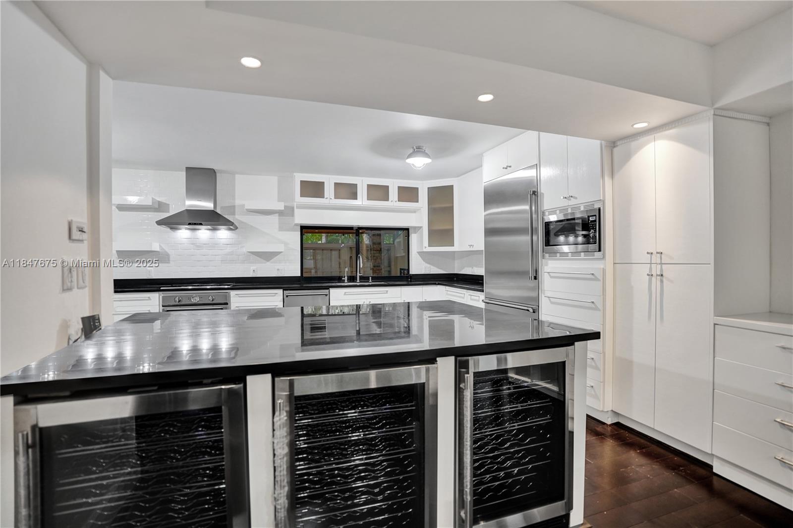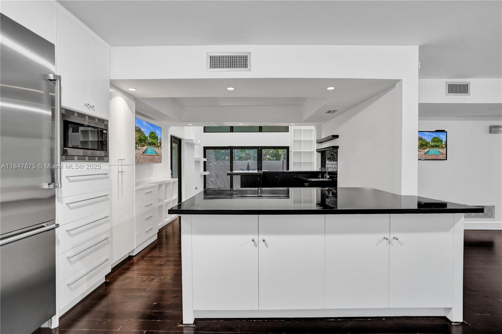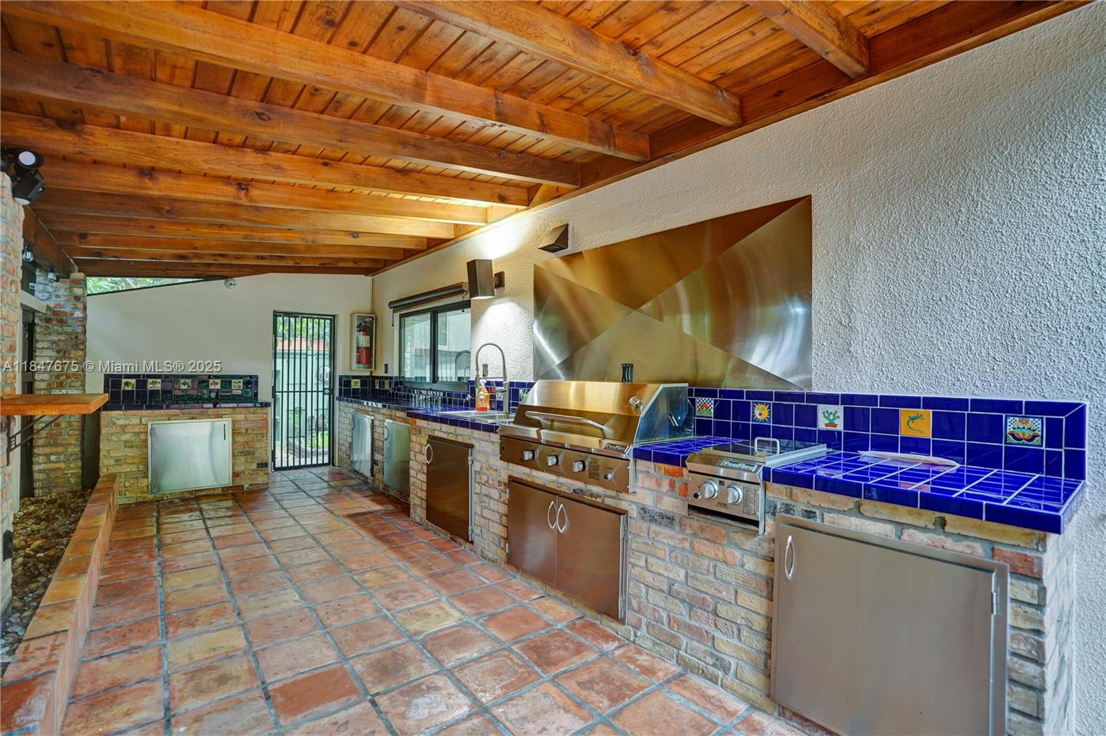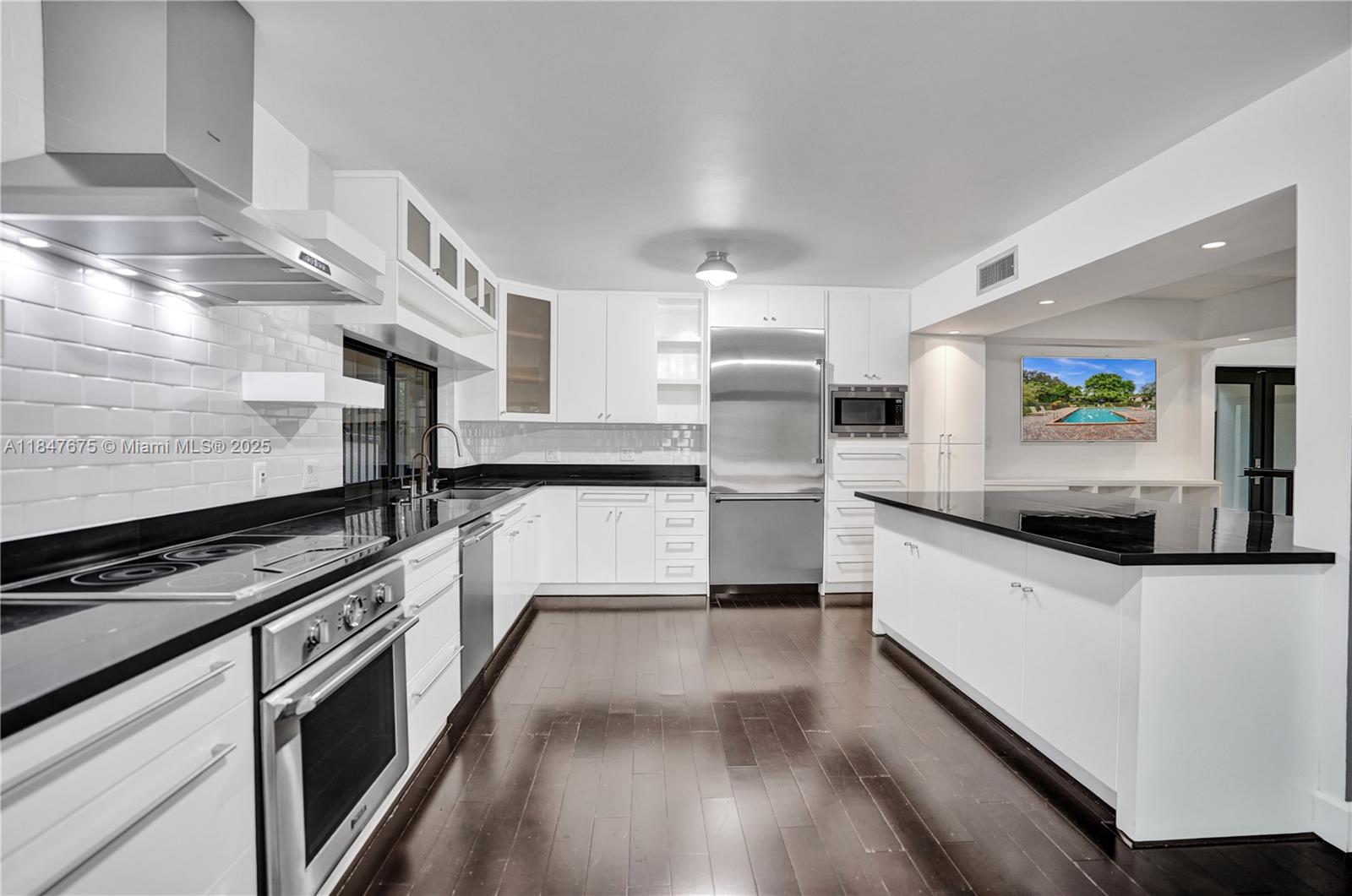 Baptist Main & Riviera Preparatory area - Superb Value! Exquisite 4 bedroom 3 bath Gem located in a 16 home Boutique Gated Sanctuary Community. This remodeled masterpiece has Cathedral Ceilings & High-end Quality Built-ins throughout along with a Chef’s Entertainer Kitchen with Wood Cabinetry, Corian Countertops, Thermador Appliances, a Wet Bar and Premium Miele Appliances. Outside awaits 3 patios and a fully equipped covered Summer Kitchen. Amenities include a Sparkling Pool, Tennis Courts & Lushly landscaped Grove Style Oasis. Extras include Impact French Doors & Windows, Dual Carrier A/C Systems, a Camera Security System, a Sauna & Outdoor Shower, recent Shingle Roof with secondary waterproofing and ability to build another bedroom and bathroom. Don’t miss this Exclusive Opportunity.