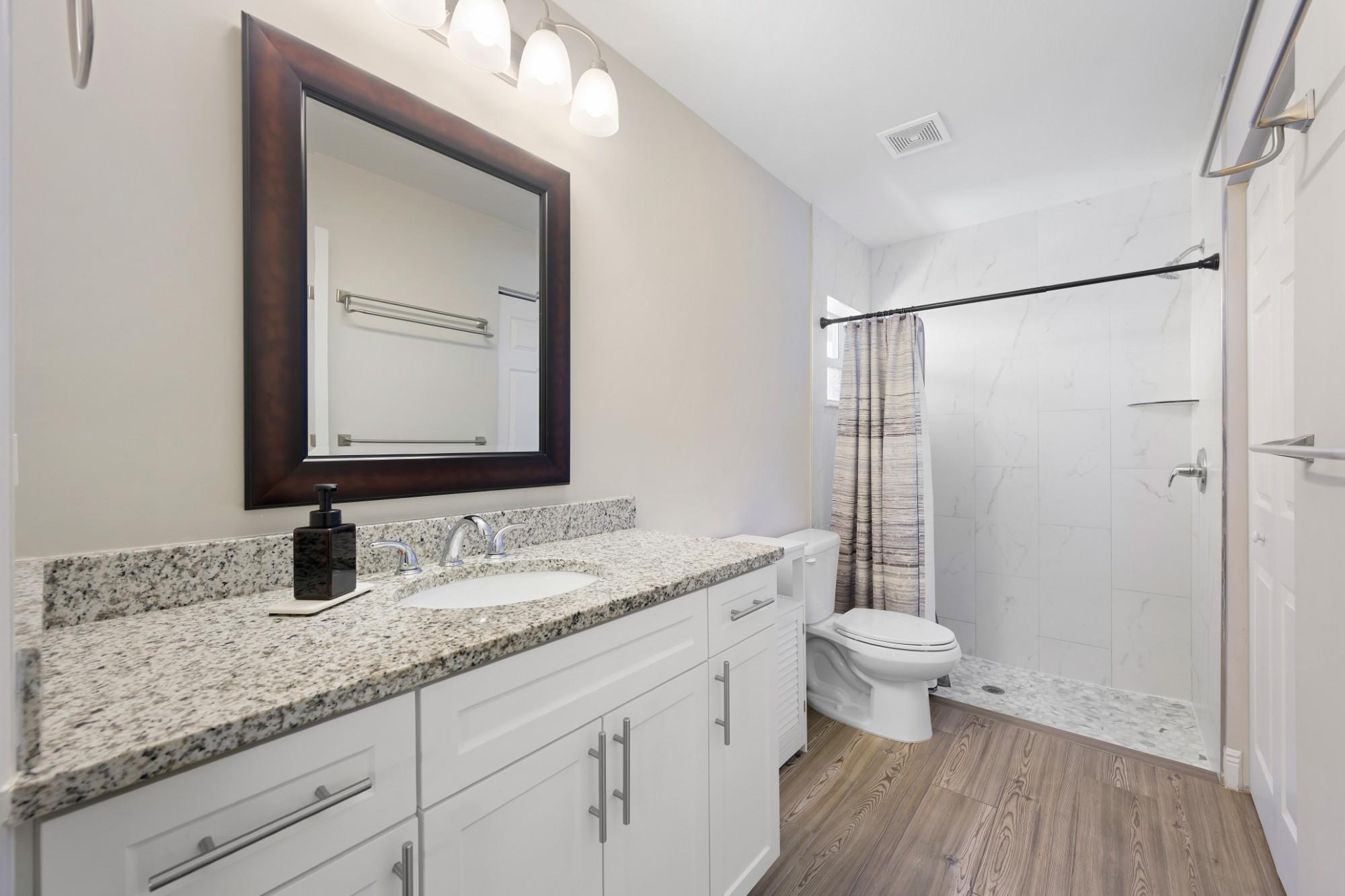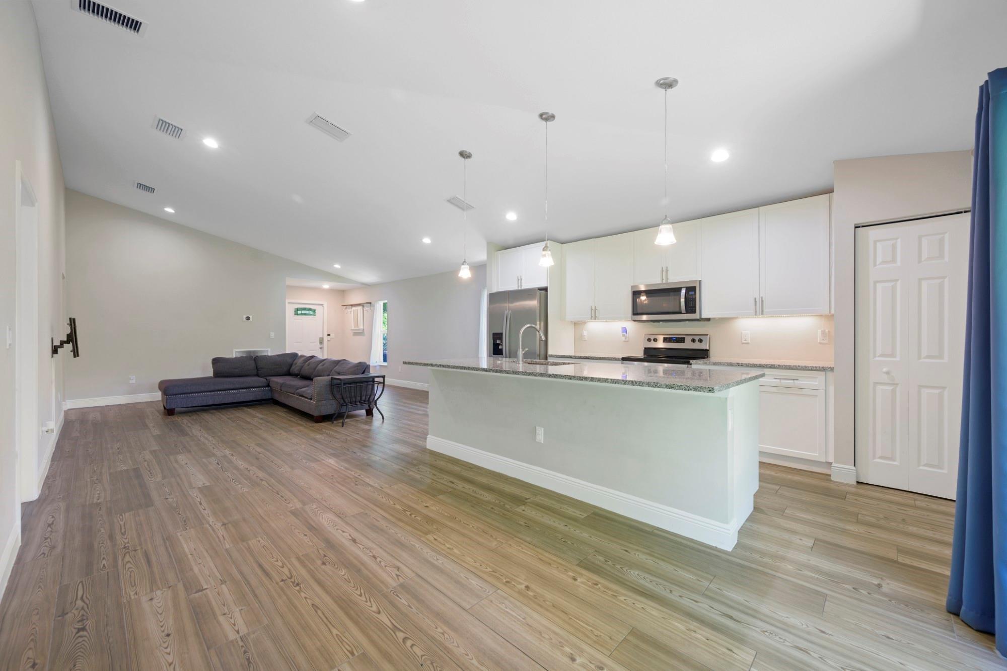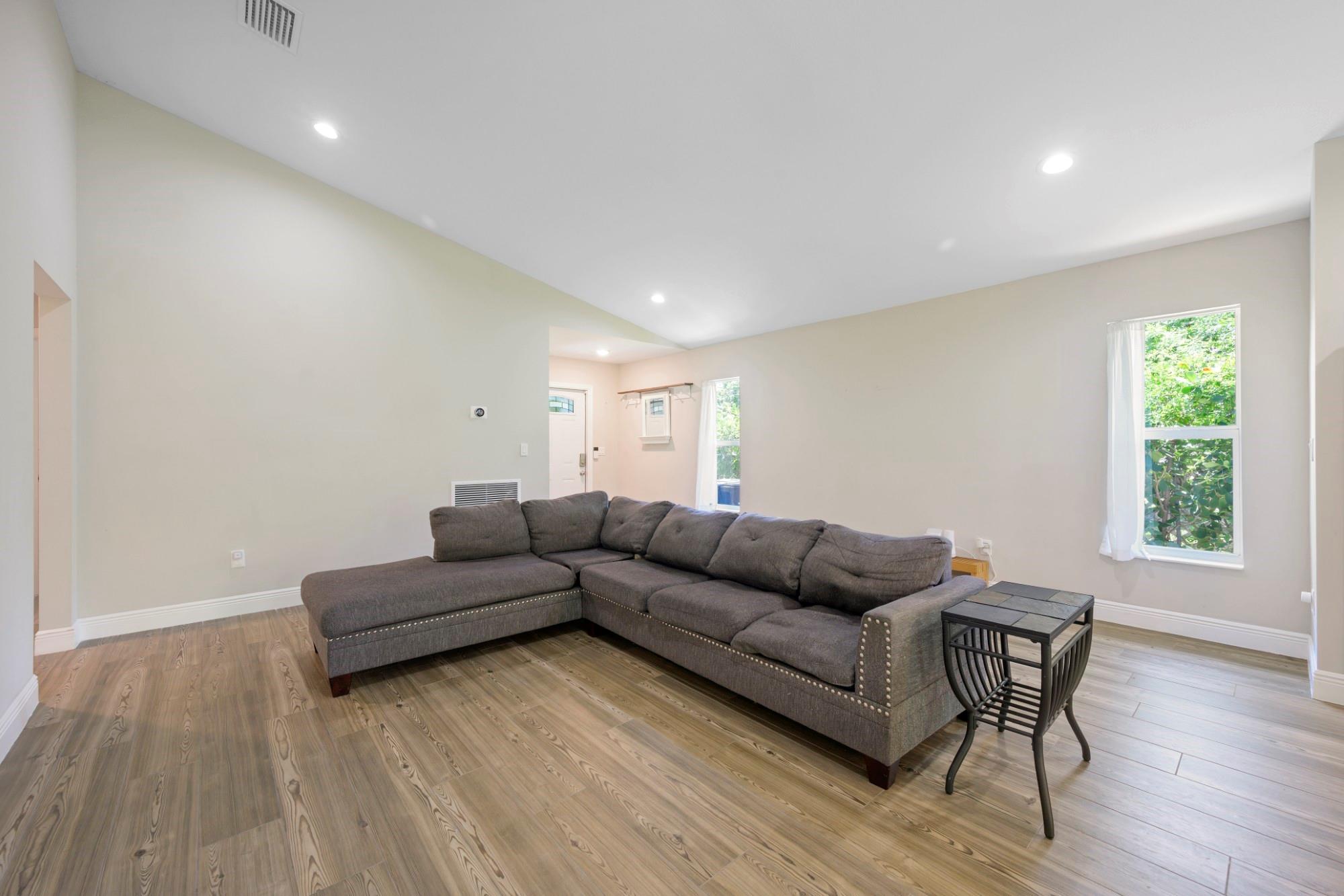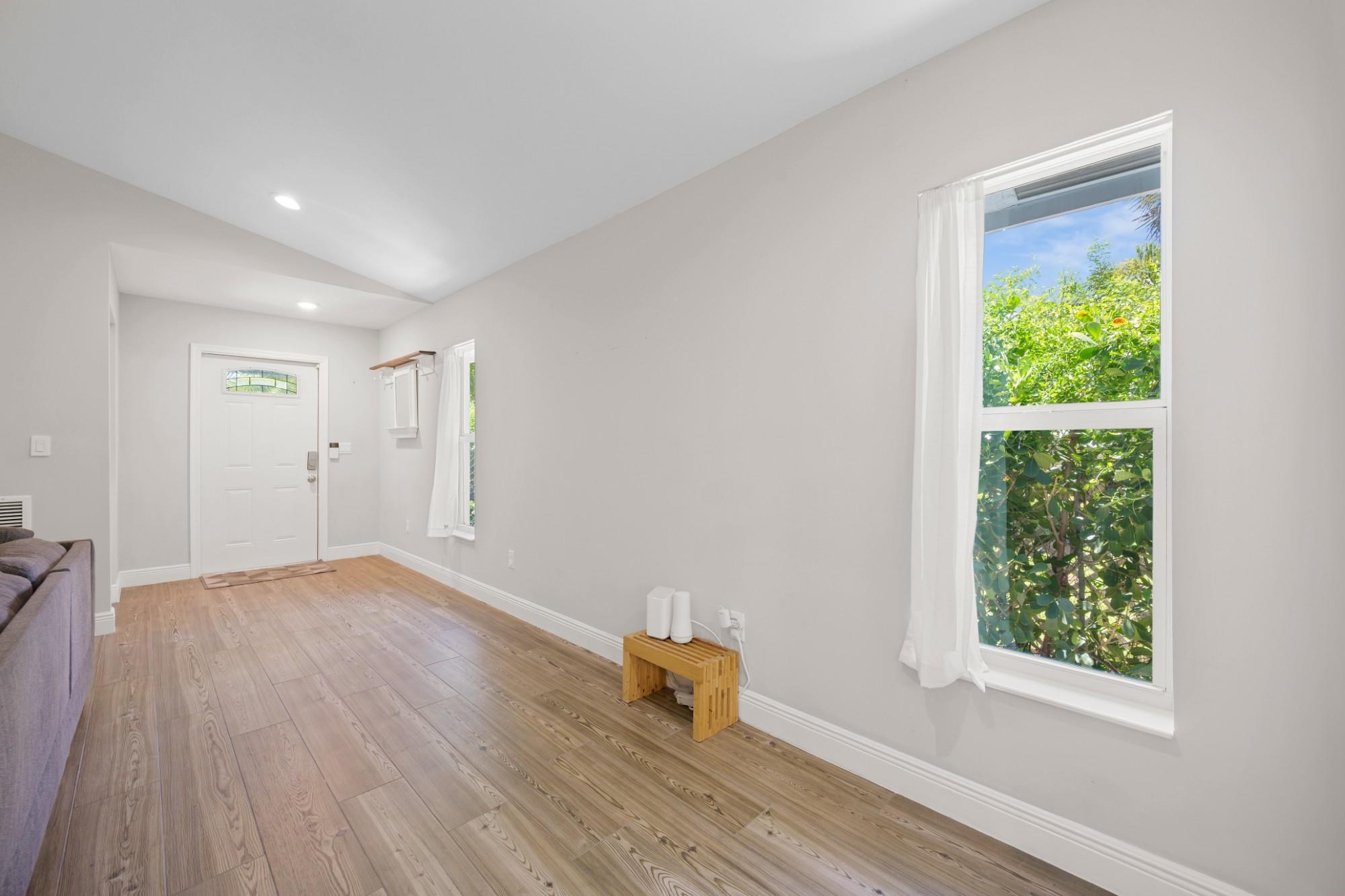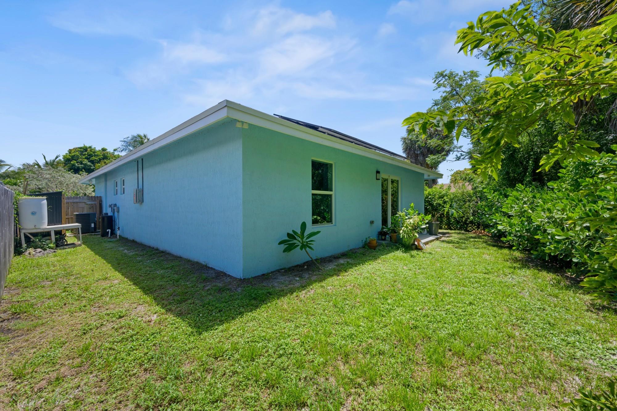 Welcome to Paradise. - 2021 Construction Concrete Block/CBS house. Tile floors throughout. Metal stud interior walls (less termite risk). Impact resistant windows & doors. Vaulted Ceiling in living area. East of 95. Walking distance to intracoastal, Northwood Village (coffee/restaurants/shopping), Currie Park (which is undergoing renovations.). 6-minute drive to NoRa or outlet malls. 10-minute drive to Downtown WPB or Rosemary Square. Very close to Broadway Corridor Redevelopment efforts. Upgraded closets in 2 out of 3 rooms). Water filtration system. Solar Panels (consistent energy bills each month). Expandable back yard out to property line. Small storage shed. Soft close drawers throughout. Quiet zone (no train horns). Only one owner in this recently constructed home.