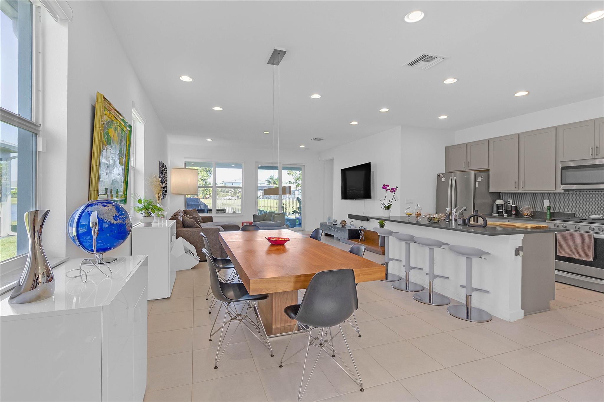 This stunning 2021 newer construction Aspen home offers lakefront living at its finest. Set on a spacious fenced in lot, modern, contemporary-style 2-bed/2-bath home features European furnishings included and a outdoor brick facade. The office/den can be used as a 3rd bedroom! A striking wine wall adds a touch of elegance to the interior. Enjoy the peace of mind with impact windows/doors, a newer roof, PVC plumbing, and a newer electrical panel. The open-concept design is perfect for entertaining, w/ large windows that bring in natural light and serene lake views with sunset. The garage has epoxy flooring. The walk in closet has a shelving organizer. Outside, a cozy firepit awaits. This home combines luxury, functionality, and elegance, making it a perfect retreat for lakefront living.