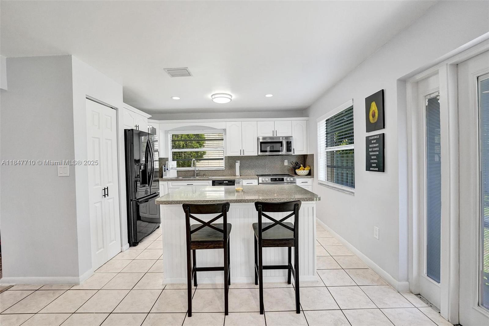 This beautiful and spacious home home sits in a peaceful cul-de-sac on a large lot, offering abundant natural light and vaulted ceilings. The main living areas feature tile and laminate flooring, while the newly updated bathrooms and smooth ceilings add a fresh touch. Enjoy extra storage or office space, and step outside to a fenced yard with your very own mango & banana fruit-bearing trees! Accordion shutters throughout provide extra peace of mind. Additional perks include fresh paint inside and out, ceiling fans, custom closet shelving & new electric panel. Located in beautiful Shenandoah, top-rated schools, easy access to highways, shopping, dining, the airport, and Sawgrass Mills Mall. Low HOA with access to community pool, parks, trails, tennis, and basketball courts. Check it out!