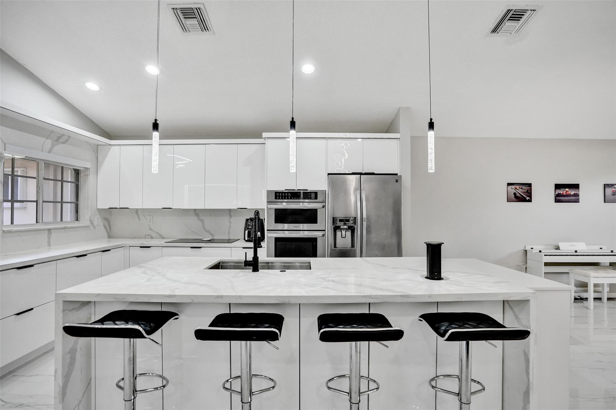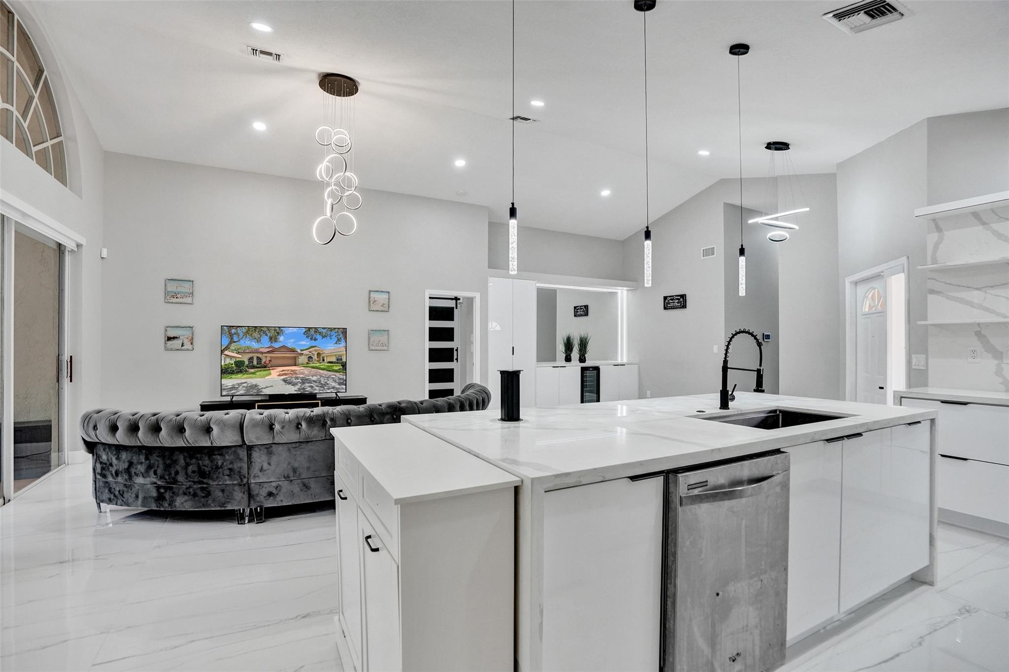 Step into this stylishly updated 4-bed, 2-bath home in sought-after North Springs. Located in an area known for A-rated schools, this property blends modern elegance with everyday comfort. Inside, you'll find an open-concept layout, vaulted ceilings, natural light, and a split floor plan. The kitchen stands out with glossy white cabinetry, bold black hardware, an island with seating and storage, and a built-in wine fridge in the bar area. The primary suite includes a spacious layout, custom closet, and a bathroom with dual sinks, soaking tub, and separate shower. Additional perks: recessed LED lights throughout, a separate laundry room with utility sink, and 2-car garage. Enjoy low HOA fees that cover lawn care and access to a community pool. A perfect mix of design, comfort, and location.