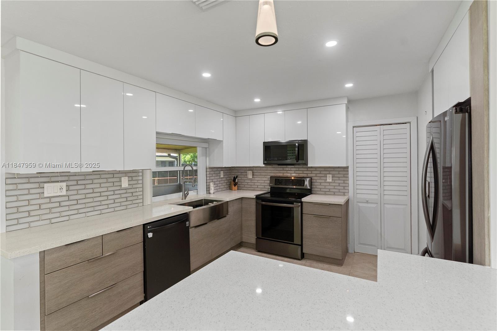 Shows like new, Light & bright, Recently remodeled, Modern and open floor plan, Impact windows, Updated kitchen cabinets, Quartz countertops, Updated appliances, Island counter and snack bar, Updated bathroom, Hi-hat lighting, Updated AC, Upgraded electrical panel, Tile floor throughout except for wood laminate in the bedrooms, Inside laundry room, Upgraded washer & dryer, Front & rear doors have accordion shutters, Hurricane rated garage door, Large screened porch, Fenced yard