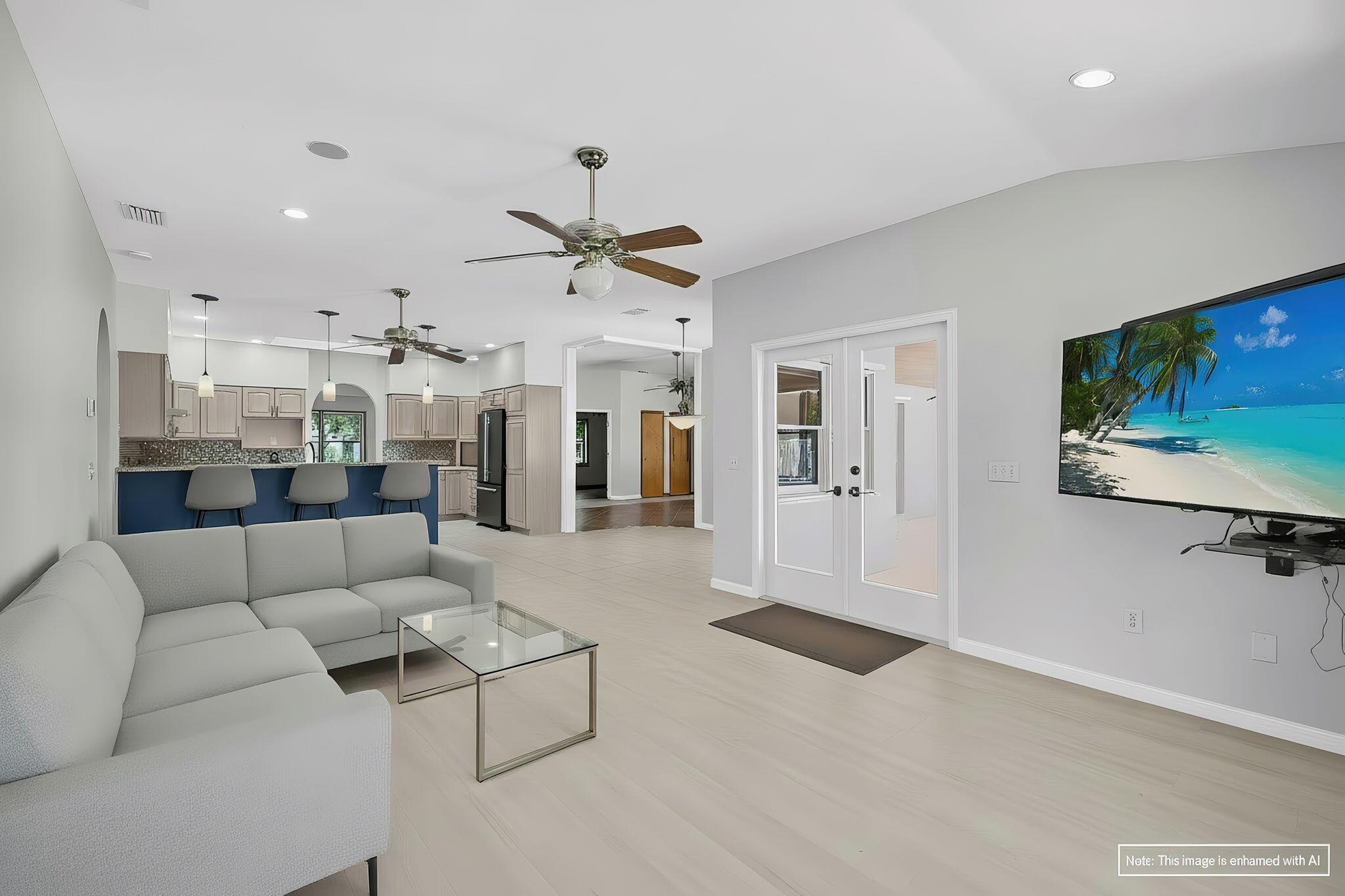 This custom built CBS home was built by its original owner an engineer of Pratt Whitney then sold due to job transfer.This beautiful 4bdrm 3 full baths, 3 car garage features.A heated pool with jacuzzi and updated pool system, water pump and Deck resurfaced. Roof replaced in 2019, has 3/4 inch plywood and double insulation. Anderson dbl pained thermo windows. Manual hurricane shutters through out. Home has 2 AC units 1 unit was replaced in 2022 and the other one is a 2009. there are 2 water heaters one is electric and its new for right side of house located in master closet the other is a gas tankless water heater. The home has a 500 gallon inground propane tank that heats the pool. gas for stove and water heater in garage. Home is Septic and well community is addressing public water a