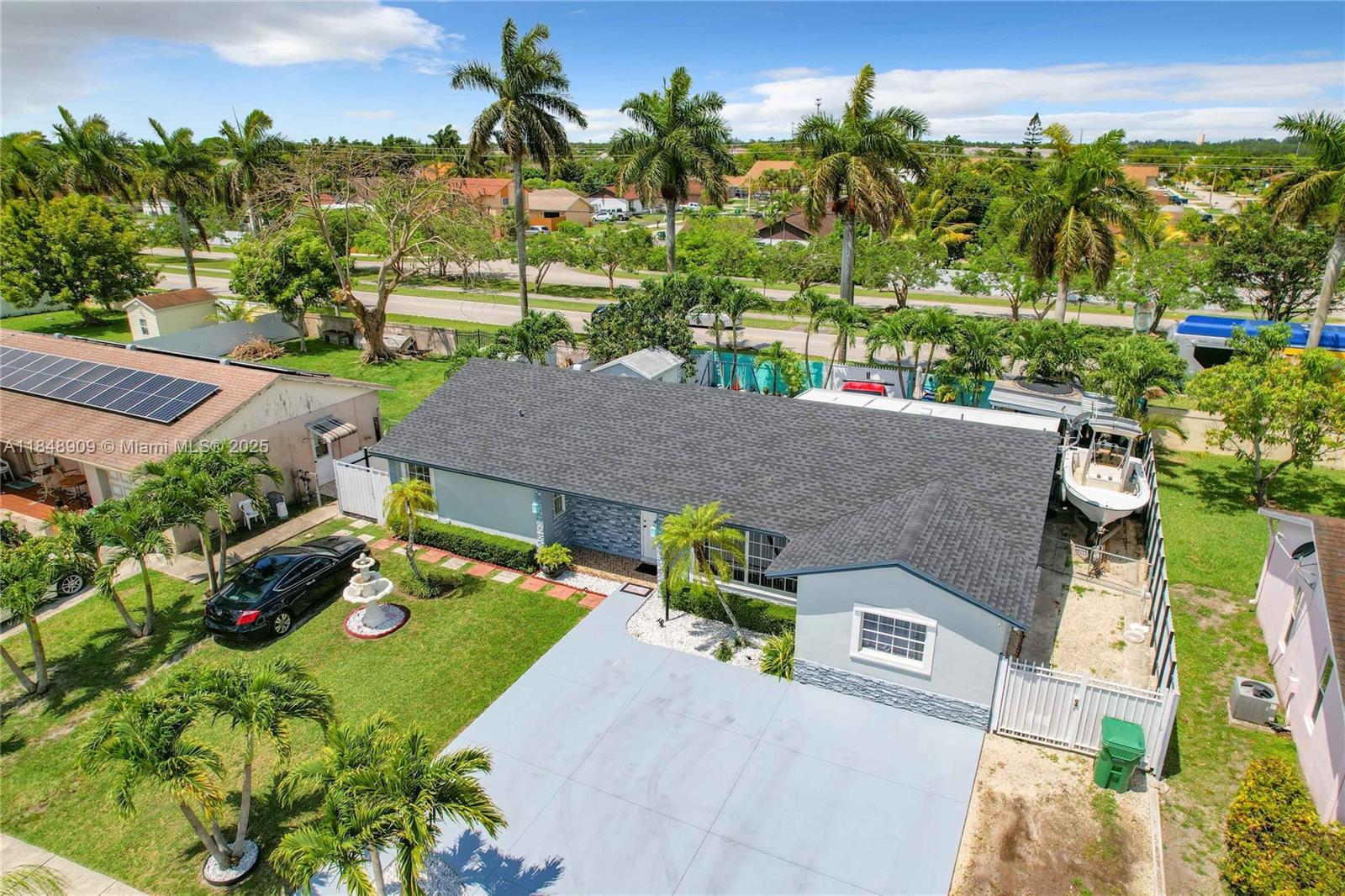 Stunning home with 3 bedrooms, 2 bathrooms, and a private in-law suite with its own entrance - perfect for extended family or guests. This floorplan offers 1,709 sq. ft. of living area and a lot size of 7,579 sq. ft. Enjoy open concepts living with a modern kitchen, complete with stainless steel appliances and sleek finishes. The entire home is fitted with impact windows for safety and energy efficiency. New roof installed in 2021. Step outside to your private backyard retreat, featuring a covered outdoor kitchen and Terraza—ideal for entertaining. Gated backyard access for large vehicles, easily bring in your trailer, RV or boat through a wide gate located at the back of the property. Near Florida turnpike and US-1, top-rated schools like Coral Reef H. School & Biotech H. School.