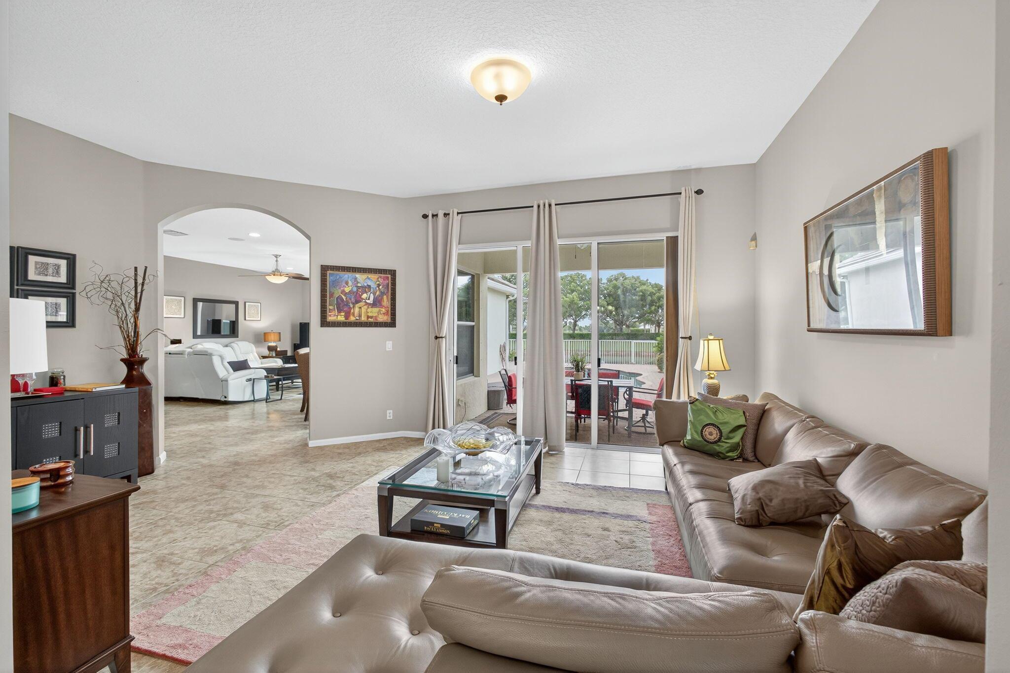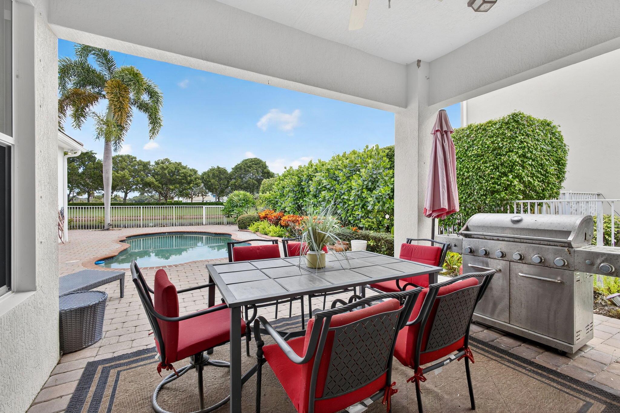 Welcome to this impeccably maintained 5 bedroom, 3 bathroom, 3 car garage estate, ideally situated on a private cul-de-sac in the exclusive Bay Tree enclave of Palm Beach Plantation in Royal Palm Beach, Florida. This elegant lakefront residence offers a private pool, tranquil water views, and exceptional curb appeal with a circular brick-paver driveway, manicured tropical landscaping, and an oversized garage. Recent upgrades include a 2023 roof, 2 A/C units installed in 2021, and a hot water heater from 2015. The roof was professionally power washed in July 2025, reflecting the home's meticulous upkeep and move-in-ready appeal.