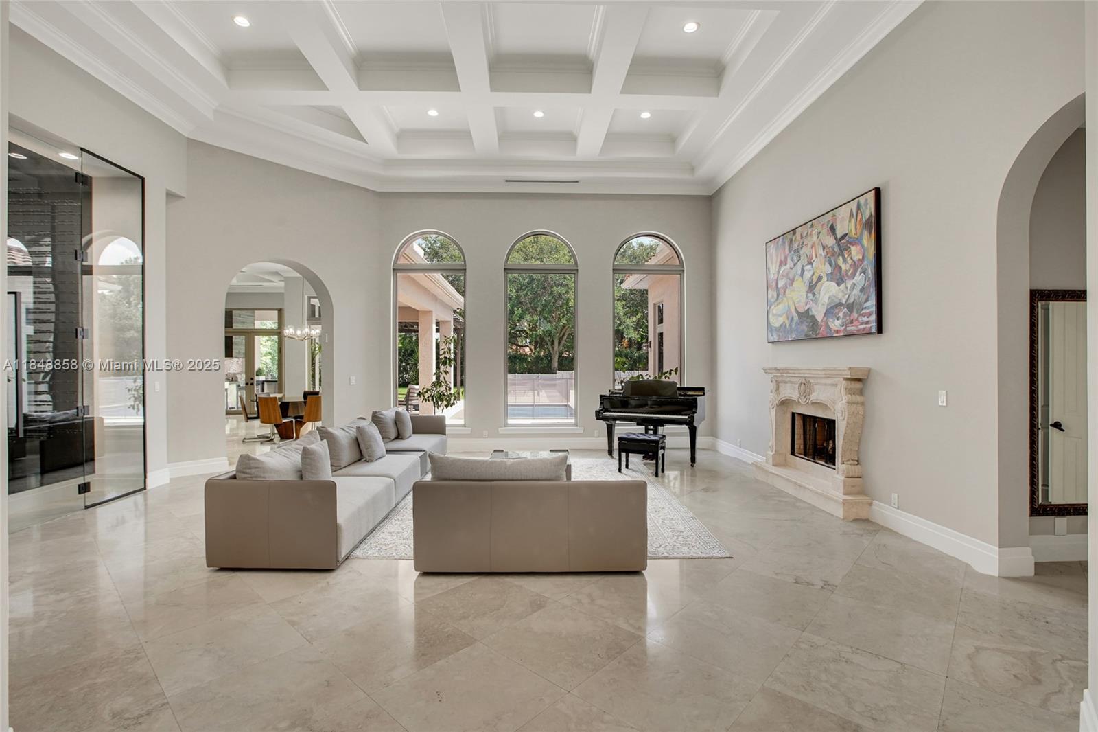 Exquisite Estate in Prestigious Saddle Club Estates.Tastefully decorated 5bed/5.5bath custom home boasts 5179' living space w/elegant finishes & upgrades.Oversized master suite w/2 closets, spa-like tub&shower. 16' coffered ceilings, open layout featuring 2 living areas, marble&wood floors, custom walk-in closets&built-ins, huge gourmet kitchen w/Miele and Subzero, 2021 roof, 3 AC, impact windows&doors,3 car garage w/EV charger, full house generator.Specious front yard w grand palms and large back yard w/heated saltwater pool and child gate, full outdoor kitchen w/pergola, multiple fruit trees.This home provides privacy and serenity while being conveniently close to top-rated schools, shopping and recreation w/ access to Bonaventure Town Center Club. Come experience it in person!