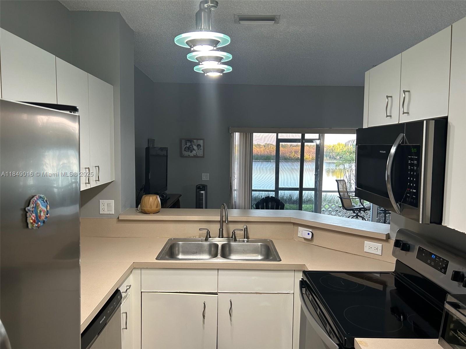 Pelican Pointe. This sought after oasis in the heart of Pembroke Pines because of its location, low maintenance fees and its well kept appearance is in high demand. This is the unit that you have been waiting for...it's on THE LAKE. The view of the lake can be enjoyed from your primary bedroom, kitchen, living room and dinning room. The view and the breeze from the lake is what you will enjoy for years. The lake has a protected Preserve in the middle of it so that view and experience you will enjoy for years. The size of this unit is for the person who wants to enjoy life and not worry about constantly cleaning a large space. Wake up on the lake and enjoy entertaining as the sun sets. You have arrived, your deserve this. Come and see it today and make it your home. Don't miss this one.