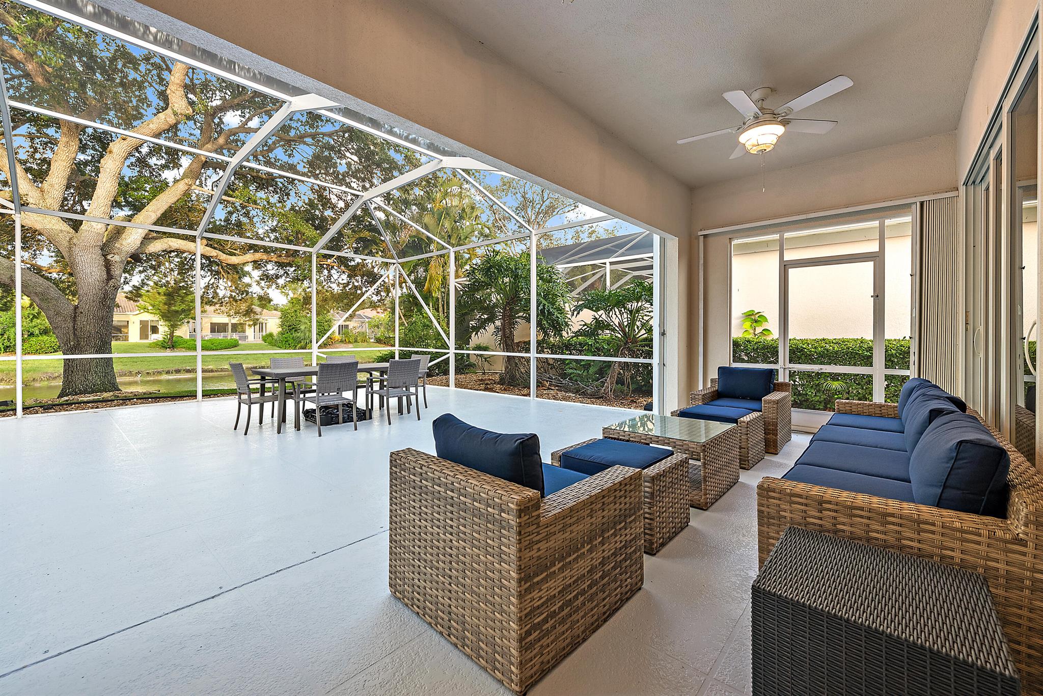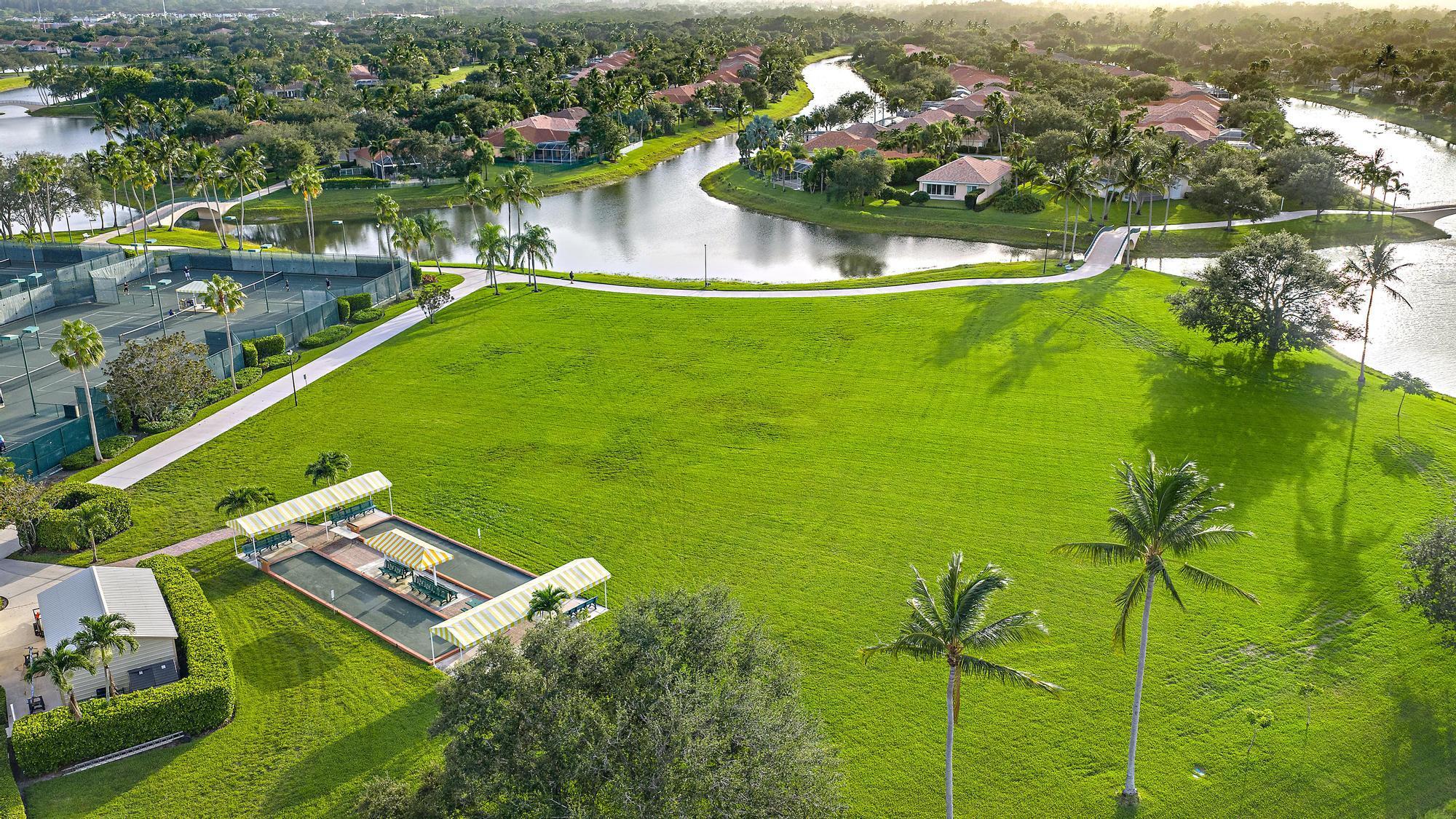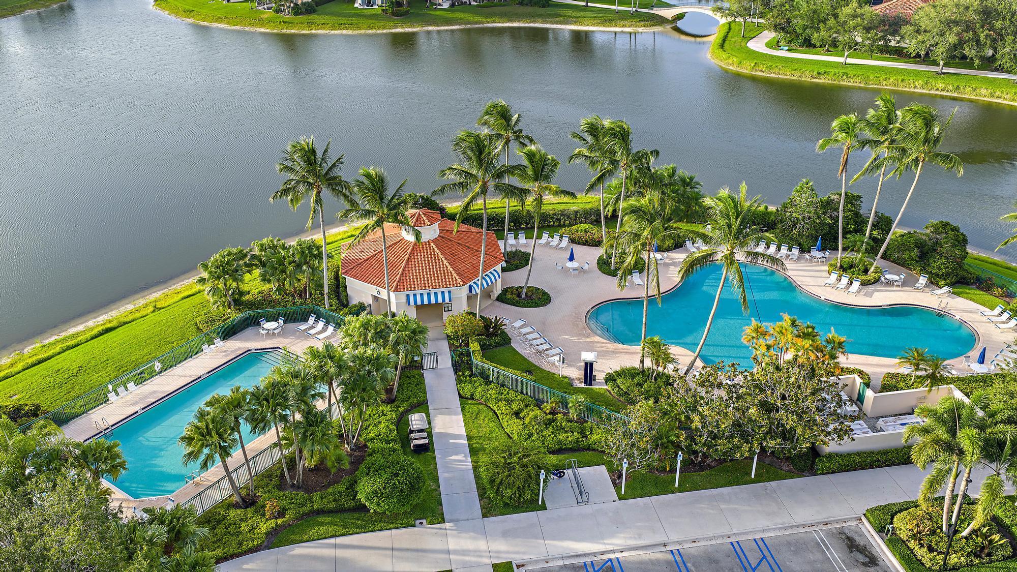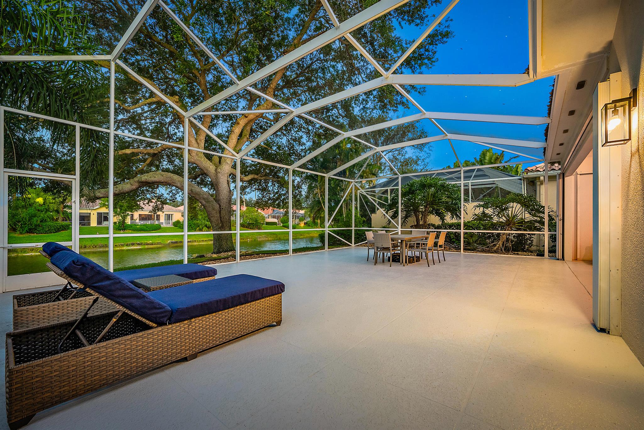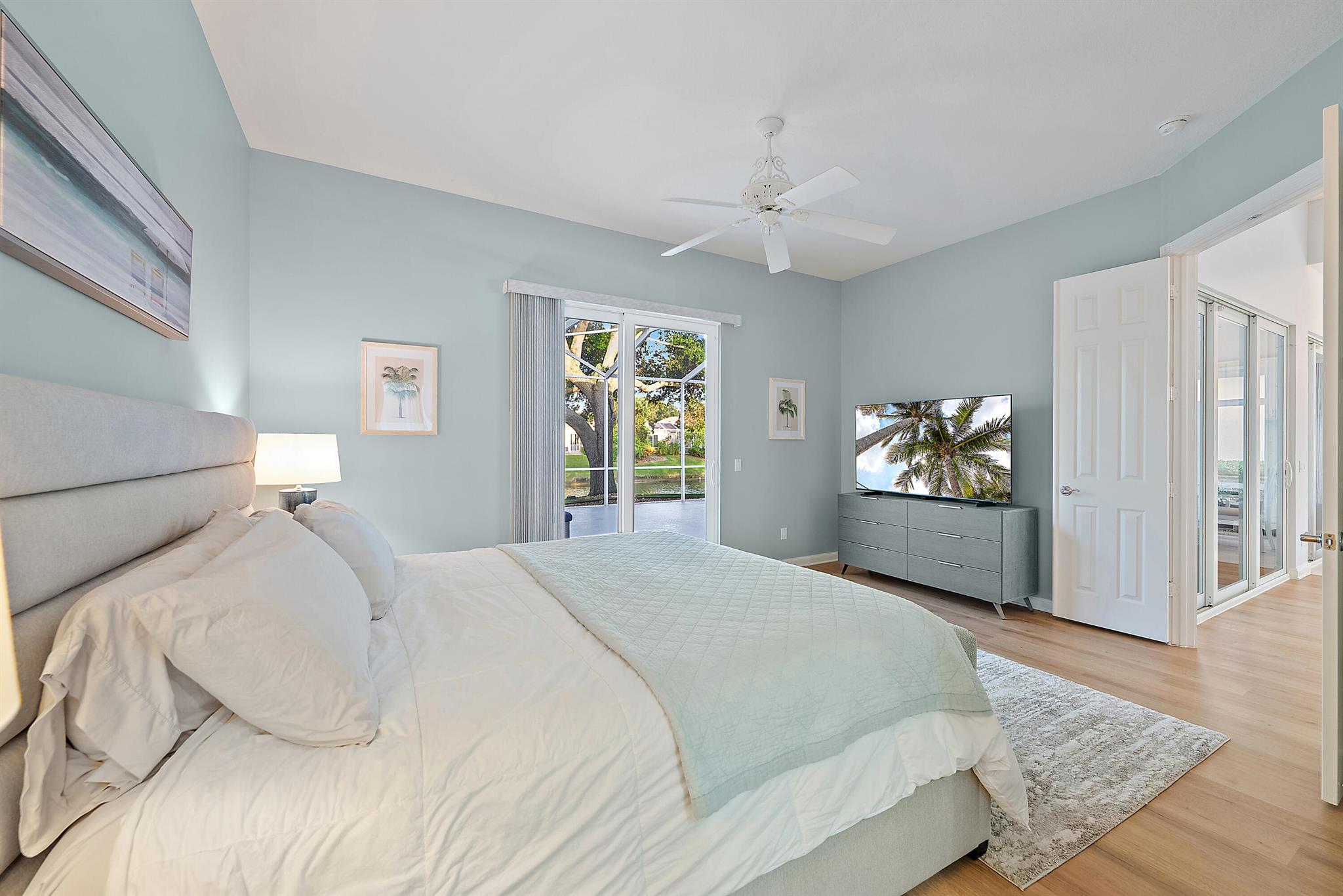 Charming 3BD/3BA Oakmont with bonus studio by Divosta Homes on a private waterfront lot near the cul-de-sac. Features include an oversized screened lanai, 12 ft vaulted ceilings, open kitchen with ample cabinets and counters, and a spacious primary suite with his-and-hers baths, Roman tub, walk-in shower, and generous closet space. Two guest rooms share a full bath. New hurricane impact windows! Comcast internet/cable included in HOA. RiverWalk offers resort-style living with 3 heated pools, 8 tennis courts, pickleball, fitness center, bocce, trails, playground, and on-site dining at ''Centanni'' Italian restaurant. Enjoy a library, salon, post office, and activities like yoga, aqua aerobics, and bridge--all with no high country club fees. Convenient to Turnpike, PBI Airport, downtown WPB!