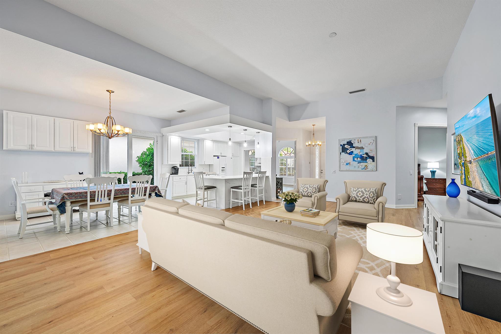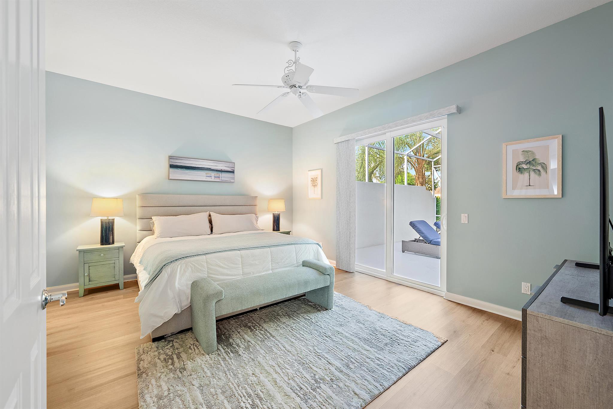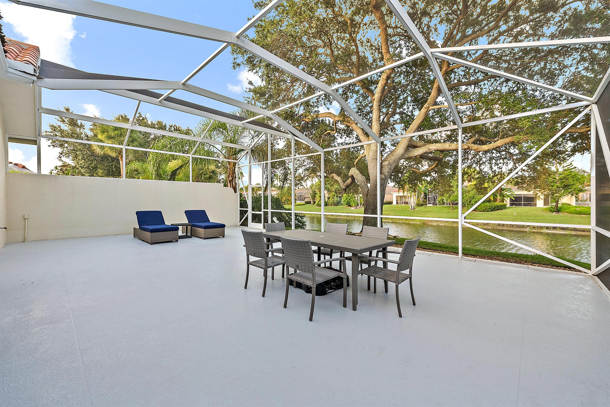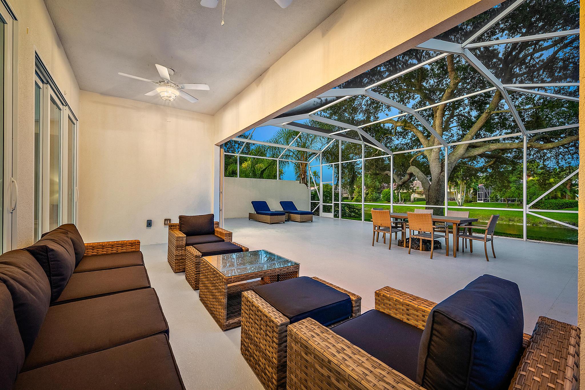 Charming 3BD/3BA Oakmont with bonus studio by Divosta Homes on a private waterfront lot near the cul-de-sac. Features include an oversized screened lanai, 12 ft vaulted ceilings, open kitchen with ample cabinets and counters, and a spacious primary suite with his-and-hers baths, Roman tub, walk-in shower, and generous closet space. Two guest rooms share a full bath. New hurricane impact windows! Comcast internet/cable included in HOA. RiverWalk offers resort-style living with 3 heated pools, 8 tennis courts, pickleball, fitness center, bocce, trails, playground, and on-site dining at ''Centanni'' Italian restaurant. Enjoy a library, salon, post office, and activities like yoga, aqua aerobics, and bridge--all with no high country club fees. Convenient to Turnpike, PBI Airport, downtown WPB!