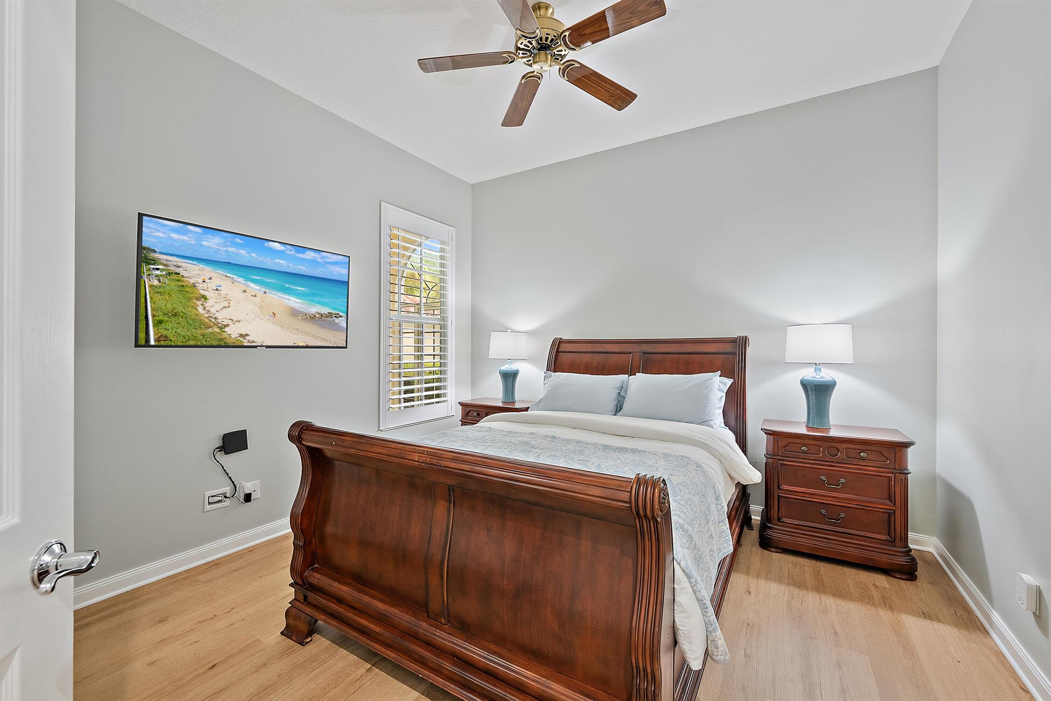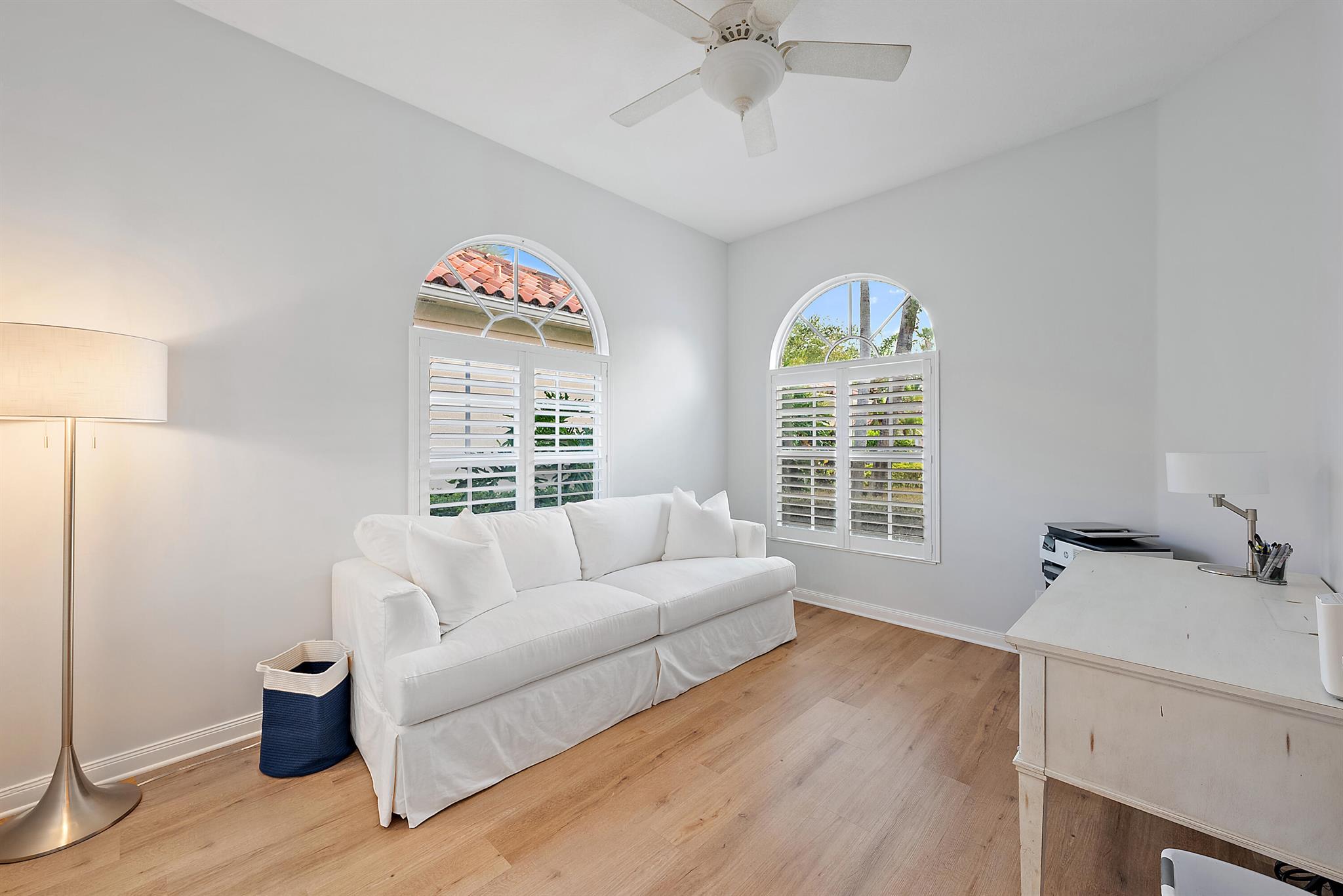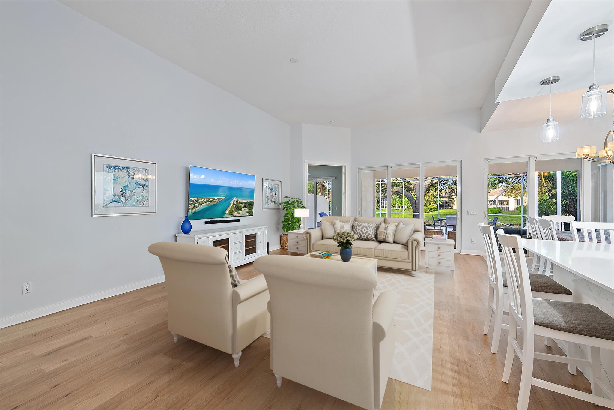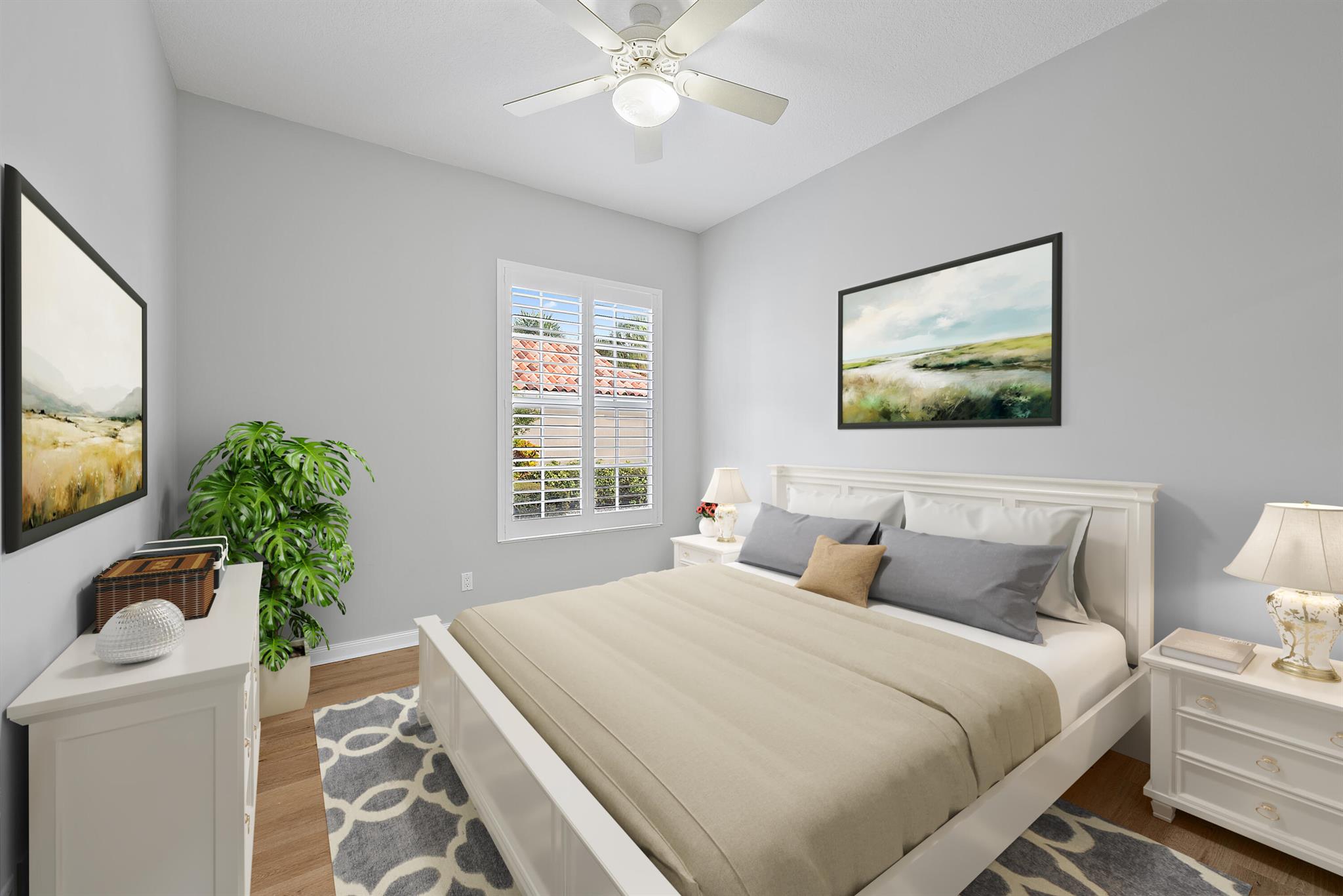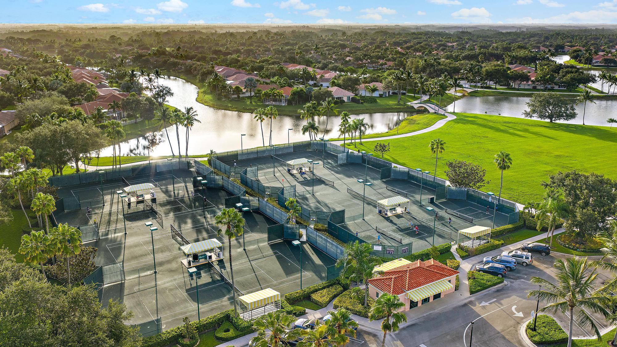 Charming 3BD/3BA Oakmont with bonus studio by Divosta Homes on a private waterfront lot near the cul-de-sac. Features include an oversized screened lanai, 12 ft vaulted ceilings, open kitchen with ample cabinets and counters, and a spacious primary suite with his-and-hers baths, Roman tub, walk-in shower, and generous closet space. Two guest rooms share a full bath. New hurricane impact windows! Comcast internet/cable included in HOA. RiverWalk offers resort-style living with 3 heated pools, 8 tennis courts, pickleball, fitness center, bocce, trails, playground, and on-site dining at ''Centanni'' Italian restaurant. Enjoy a library, salon, post office, and activities like yoga, aqua aerobics, and bridge--all with no high country club fees. Convenient to Turnpike, PBI Airport, downtown WPB!
