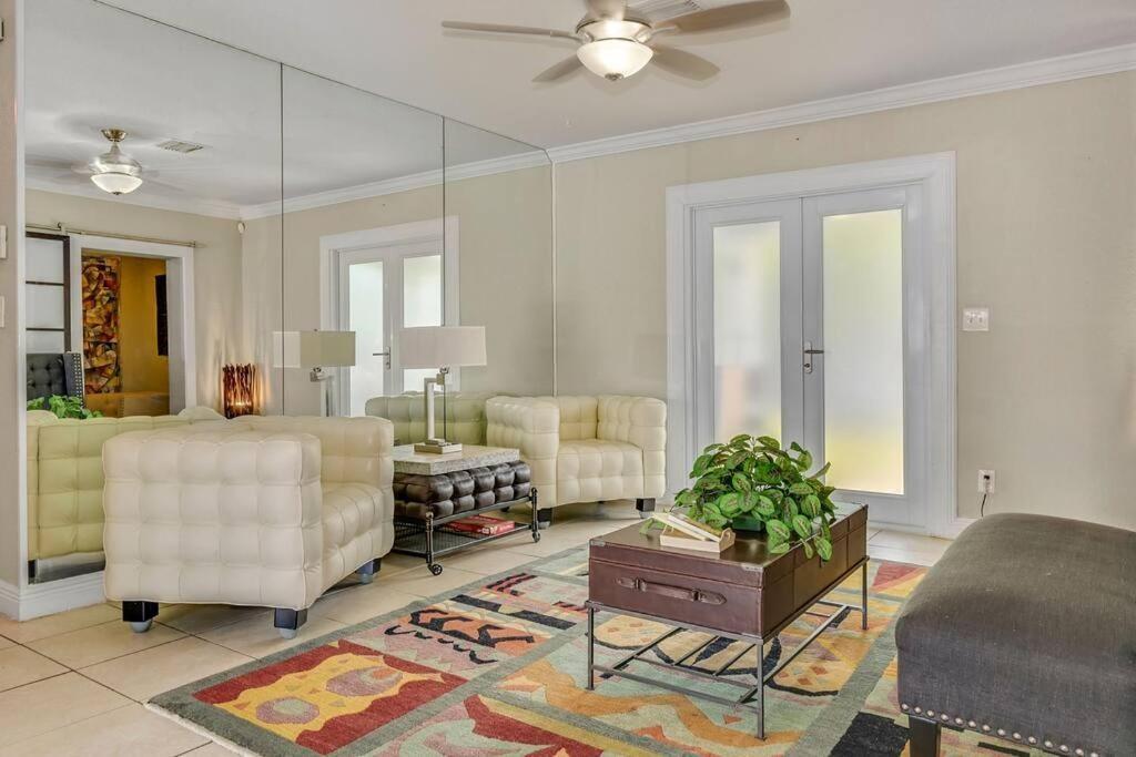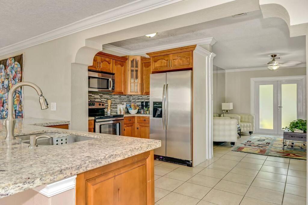 Sold 'AS IS'. Property has known violations that will be resolved before final sale. Newer pictures with newly painted walls and flooring coming soon. This 4-bedroom, 2-bathroom home offers an open, split-level design with 2 tankless water heaters. The master suite is a private retreat, a jacuzzi, separate shower, and abundant closet space. Epoxy flooring in the master adds a modern touch, while laminate flooring throughout the bedrooms provides warmth and durability. Large sliding doors open to reveal a stunning view of the pool area, perfect for relaxation or entertaining. The interior has been freshly painted, and the hurricane-proof front door adds an extra layer of security. Enjoy ample space, comfort, and convenience in this well-appointed home.
