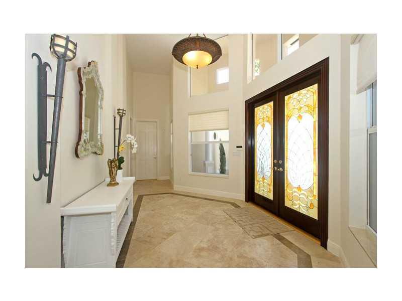 STUNNING 2-story waterfront home in exclusive guard gated Gables By The Sea. Volume ceilings & marble flrs in the formal living areas. Enjoy the fabulous split flr plan w/master bdrm suite on 1st flr & all other bdrms on the 2nd all w/wood flrs. Open kit chen has custom wood cabinets & granite countertops. Entertain your guests or simply relax & enjoy the breathtaking serene protected waterfront views & pool from the covered patio. Paved circular driveway & 2x2cg. New seawall & dock. No Ocean Access