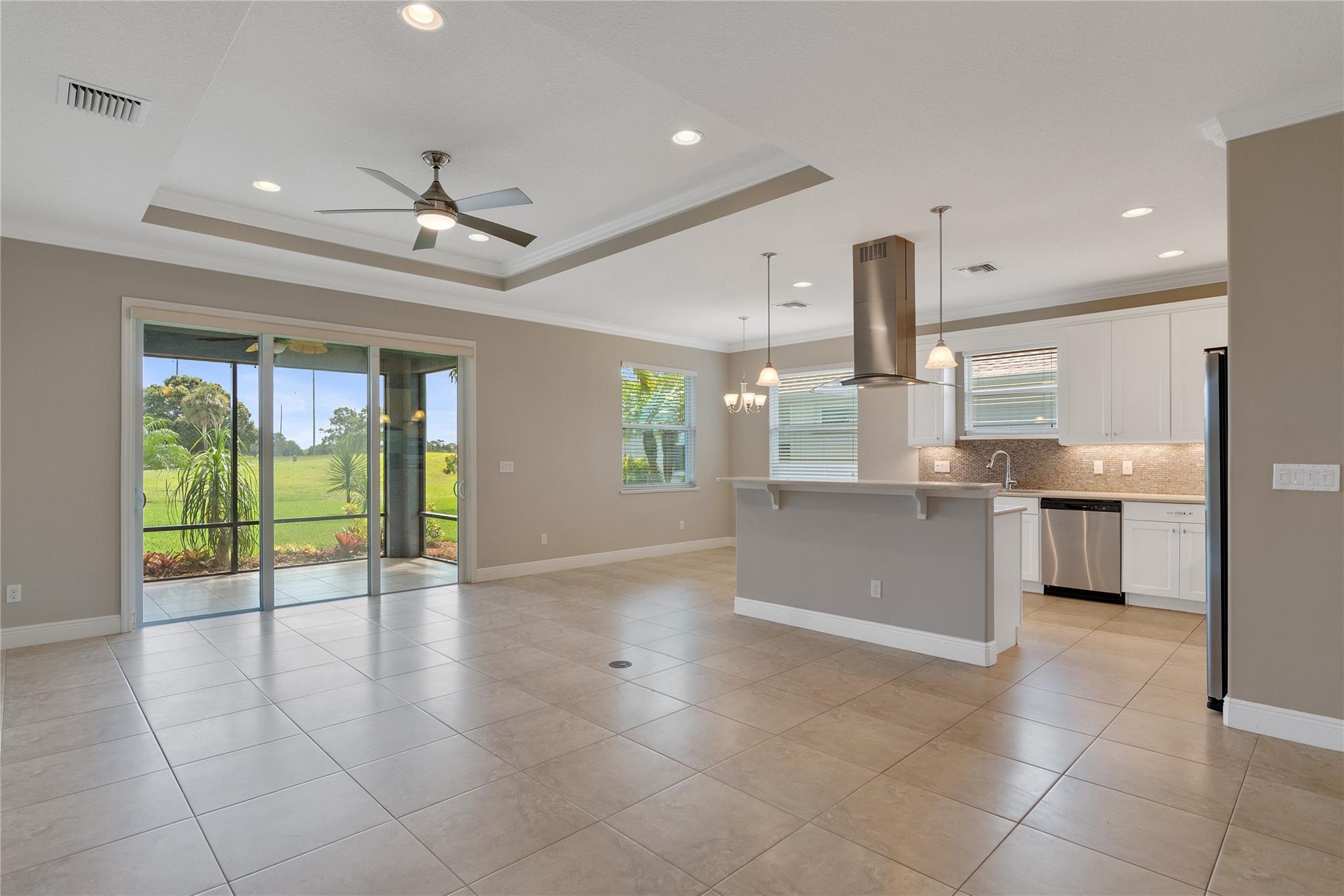 Enjoy scenic golf course views! This Passage Island home features a stunning kitchen perfect for entertaining, impact windows, a motorized screen door on the garage, access to a community clubhouse and pool amenities, and low HOA fees that help reduce living costs. Additionally, there’s plenty of space to build your own pool and create the ultimate Florida retreat.