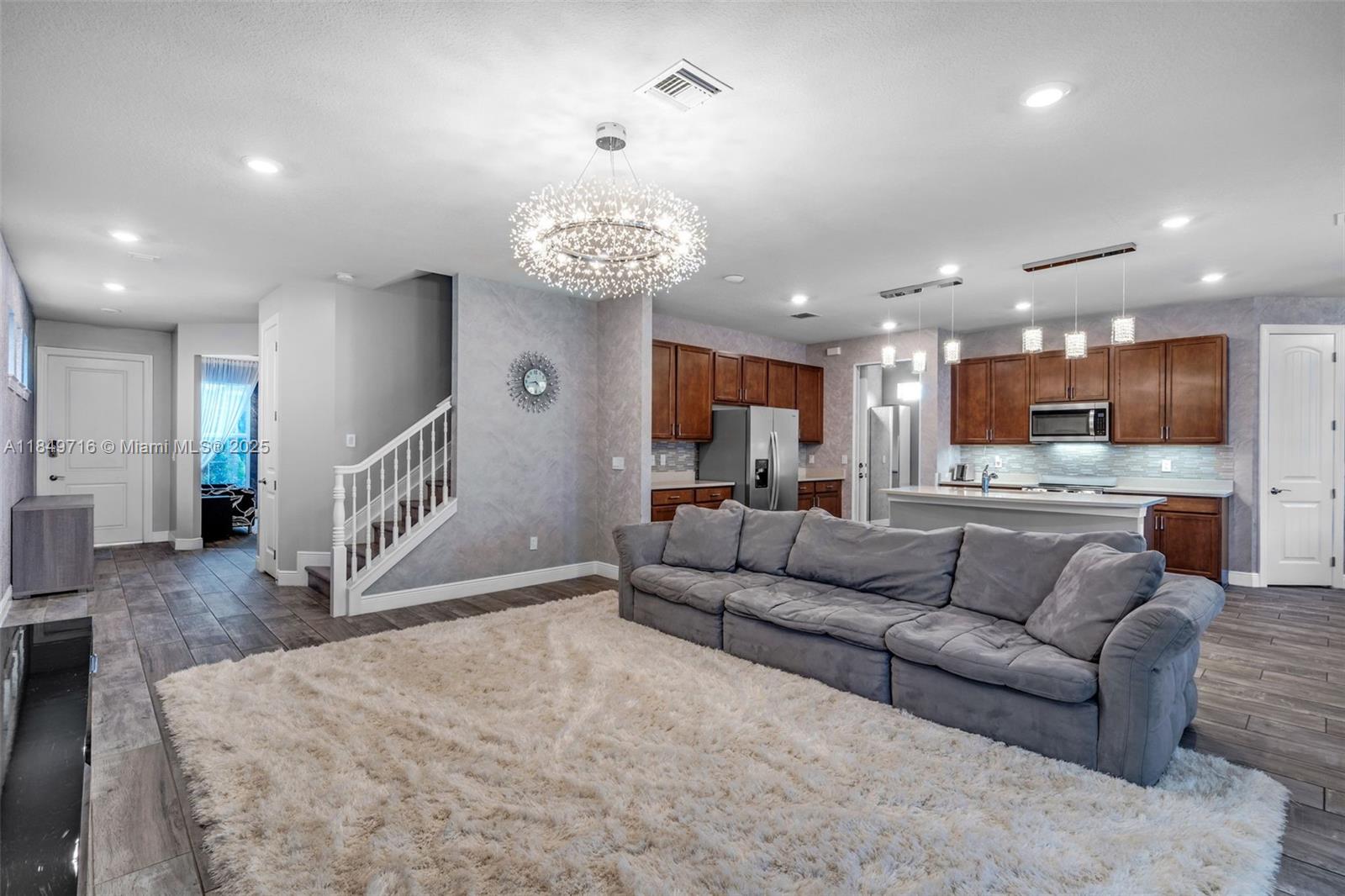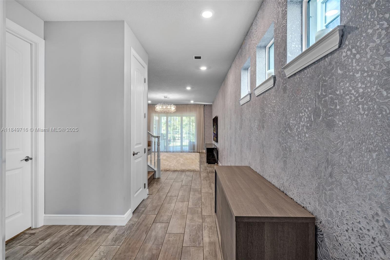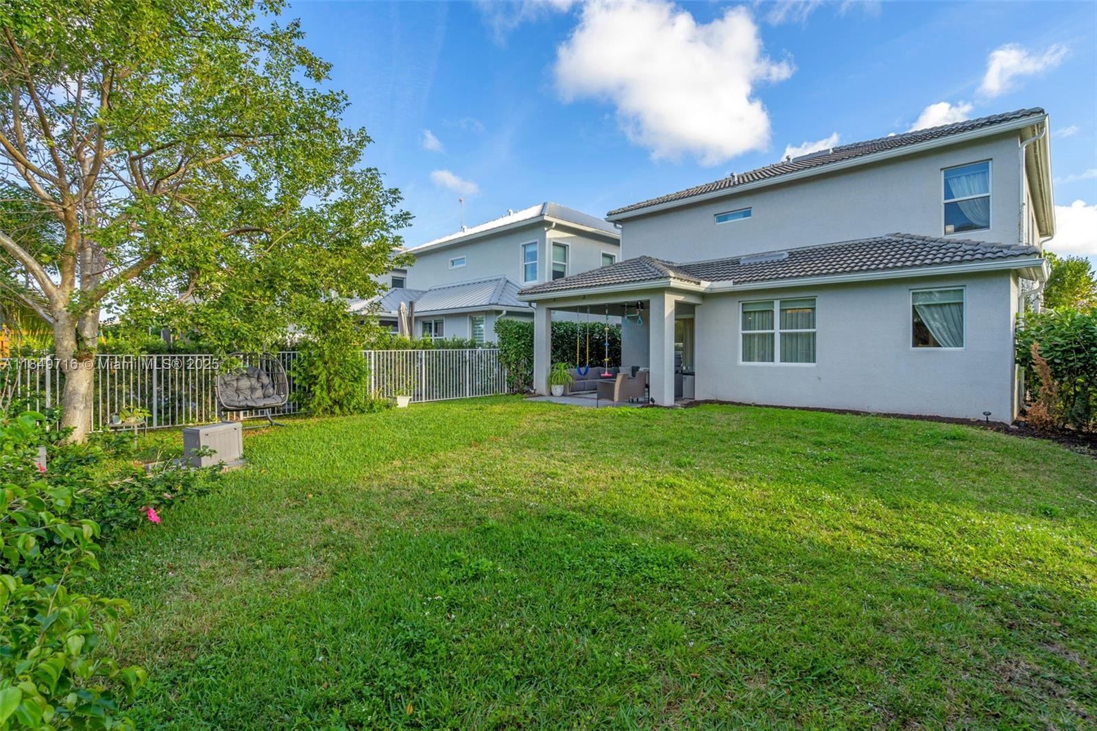 Best location in the community! Large corner lot 5 bedroom, 2.5bathroom 2story single family house built in 2020, with no neighbor on the left and lake views. Move-in ready, extended garage, open-concept layout, huge built-out pantry, 5th bedroom (den) on the ground floor. Upstairs four bedrooms each with built out walkin closets, a modern loft, upgraded flooring. The spacious backyard boasts a covered lanai, BBQ. Smart home features large smart TVs, electronic door locks, and smart lighting. HOA offers resort-style clubhouse, Olympic-sized pool, gym, tennis courts, scenic jogging trails. Rent includes all amenities, pool maintenance, landscaping. It is an investment opportunity, no flood zone, low HOA, new construction, close to beaches, major highways, between Miami and Fort Lauderdale.