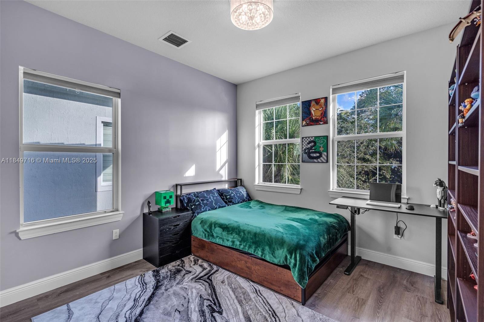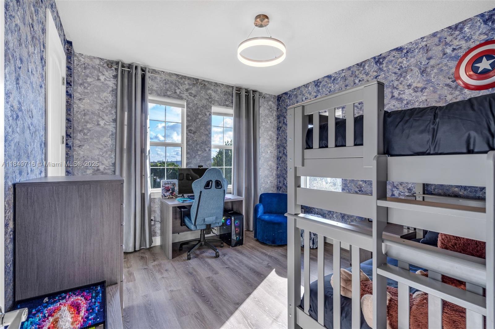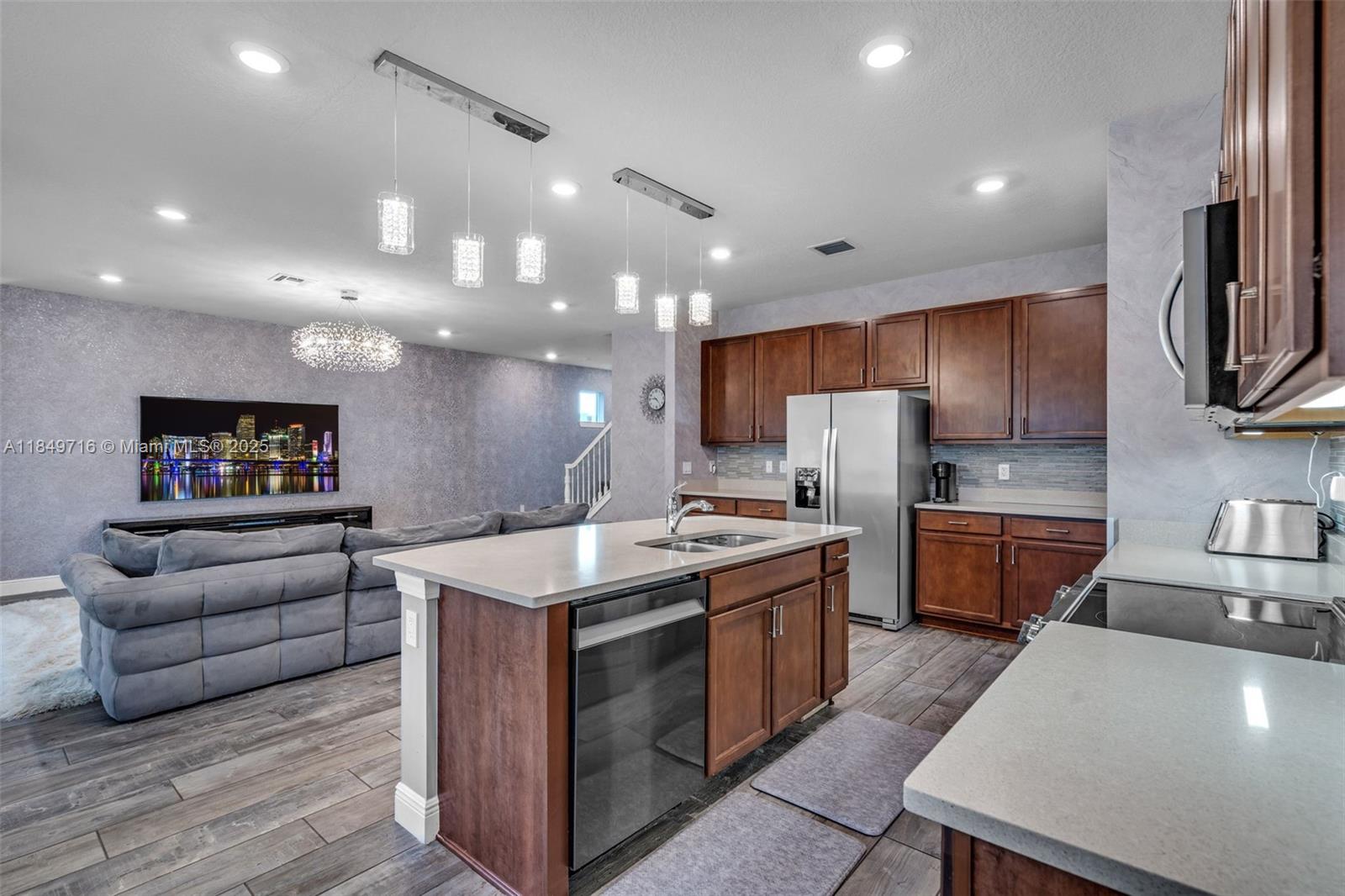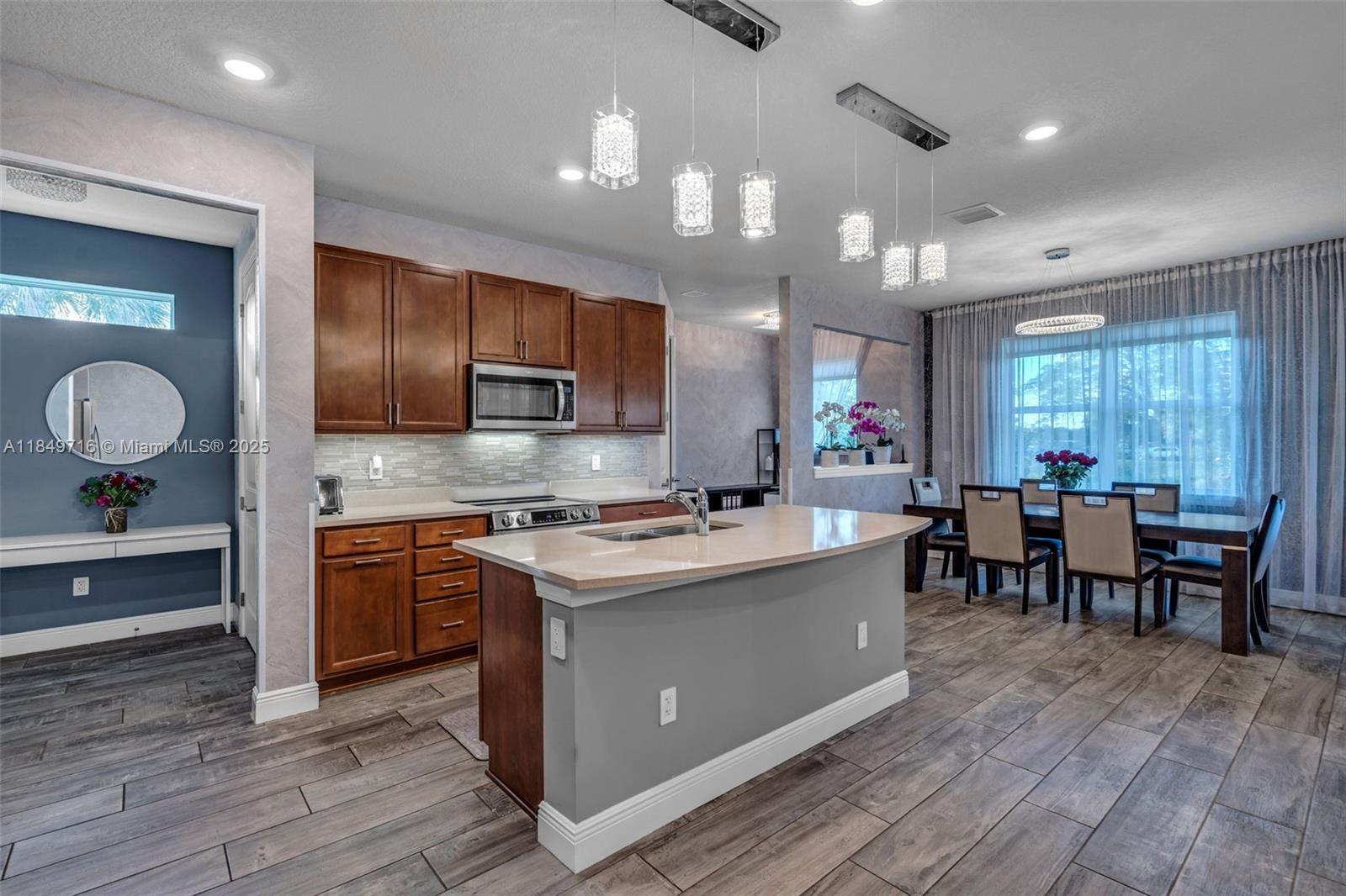 Best location in the community! Large corner lot 5 bedroom, 2.5bathroom 2story single family house built in 2020, with no neighbor on the left and lake views. Move-in ready, extended garage, open-concept layout, huge built-out pantry, 5th bedroom (den) on the ground floor. Upstairs four bedrooms each with built out walkin closets, a modern loft, upgraded flooring. The spacious backyard boasts a covered lanai, BBQ. Smart home features large smart TVs, electronic door locks, and smart lighting. HOA offers resort-style clubhouse, Olympic-sized pool, gym, tennis courts, scenic jogging trails. Rent includes all amenities, pool maintenance, landscaping. It is an investment opportunity, no flood zone, low HOA, new construction, close to beaches, major highways, between Miami and Fort Lauderdale.